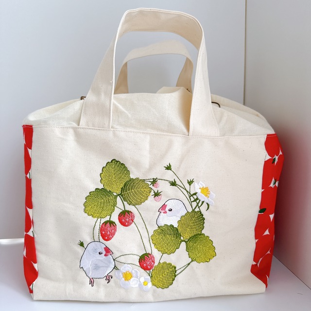 ご覧頂き有難うございます(*^_^*) サンコーのウィズキャリーMサイズがゆったりと入るキャリーバックです。 本体の帆布部分は1枚布を使用。似たサイズでタイプの異なるキャリーをお使いの方も底に縫い目がなく平らになりましたので安定感を損なわず入れていただけます。 通院の際に診察券やお薬をさっと入れるポケットはサイドと同じ布を使用してかわいさがUP☆冬場はカイロを入れてお使いいただけます。 (温度管理にくれぐれもご注意ください) 開口部の布は裏布と同じシーチングを使用しました。布が柔らかいので巾着が絞りやすく、小鳥さんの出し入れも安心で統一感も抜群です♪ 軽い仕上がりですので普段のお買い物やお出かけにもお使いいただけます☆ サイズ Mサイズ(ウィズキャリー水色サイズ) 幅約33㎝×奥行き22㎝×高さ24㎝ 持ち手約40㎝