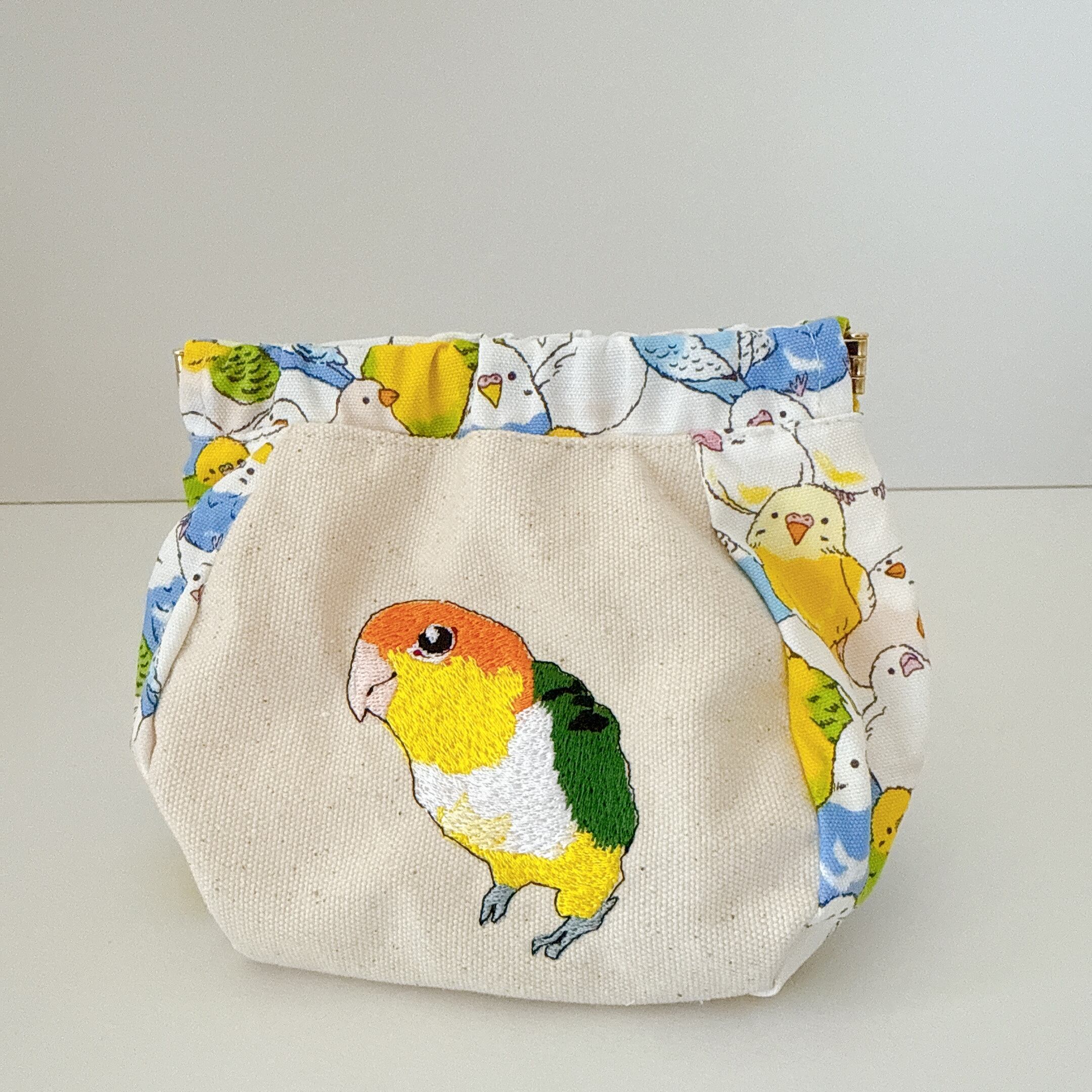 14cmぷっくりバネポーチ・サザナミ・シロハラ・ルリコシ・ボタン
