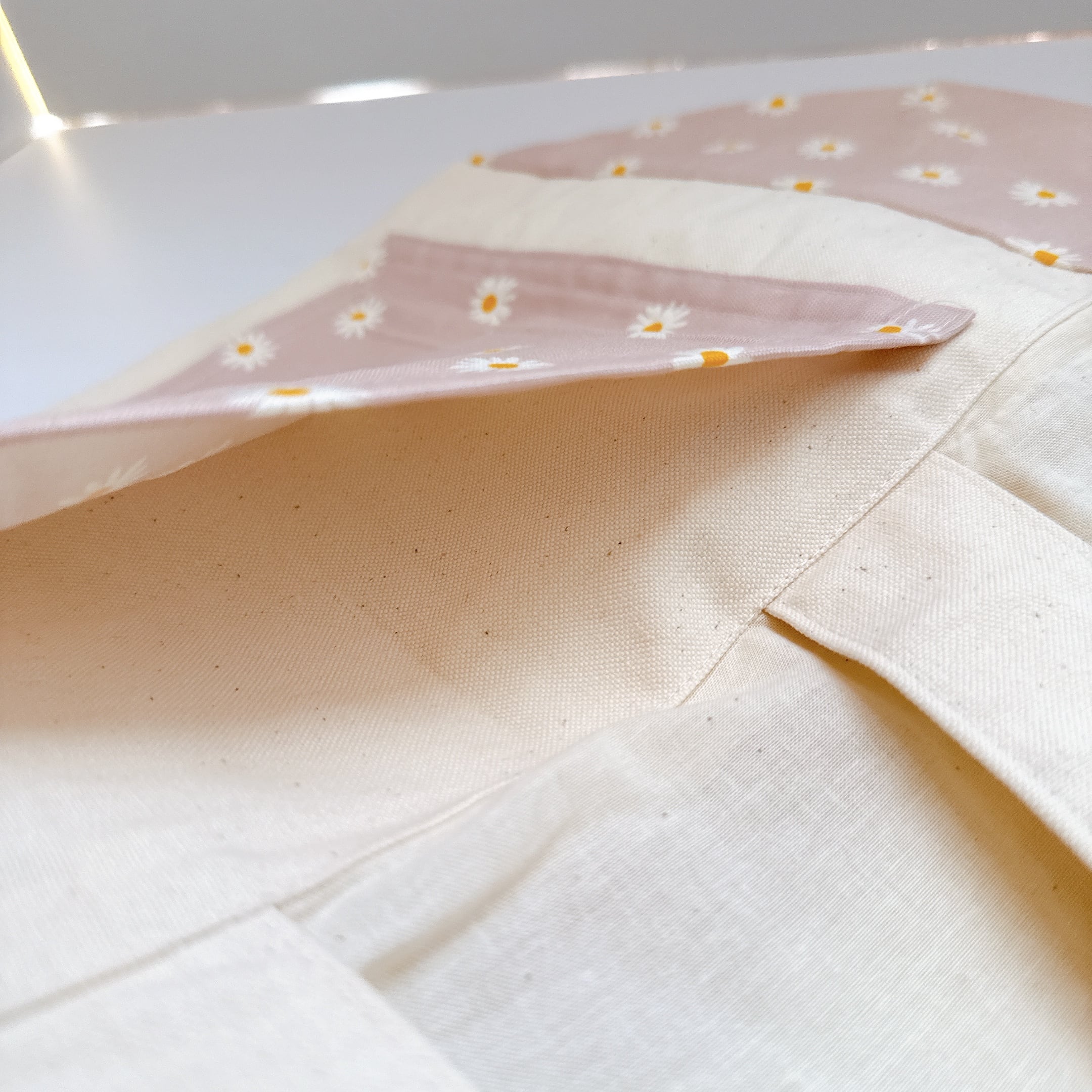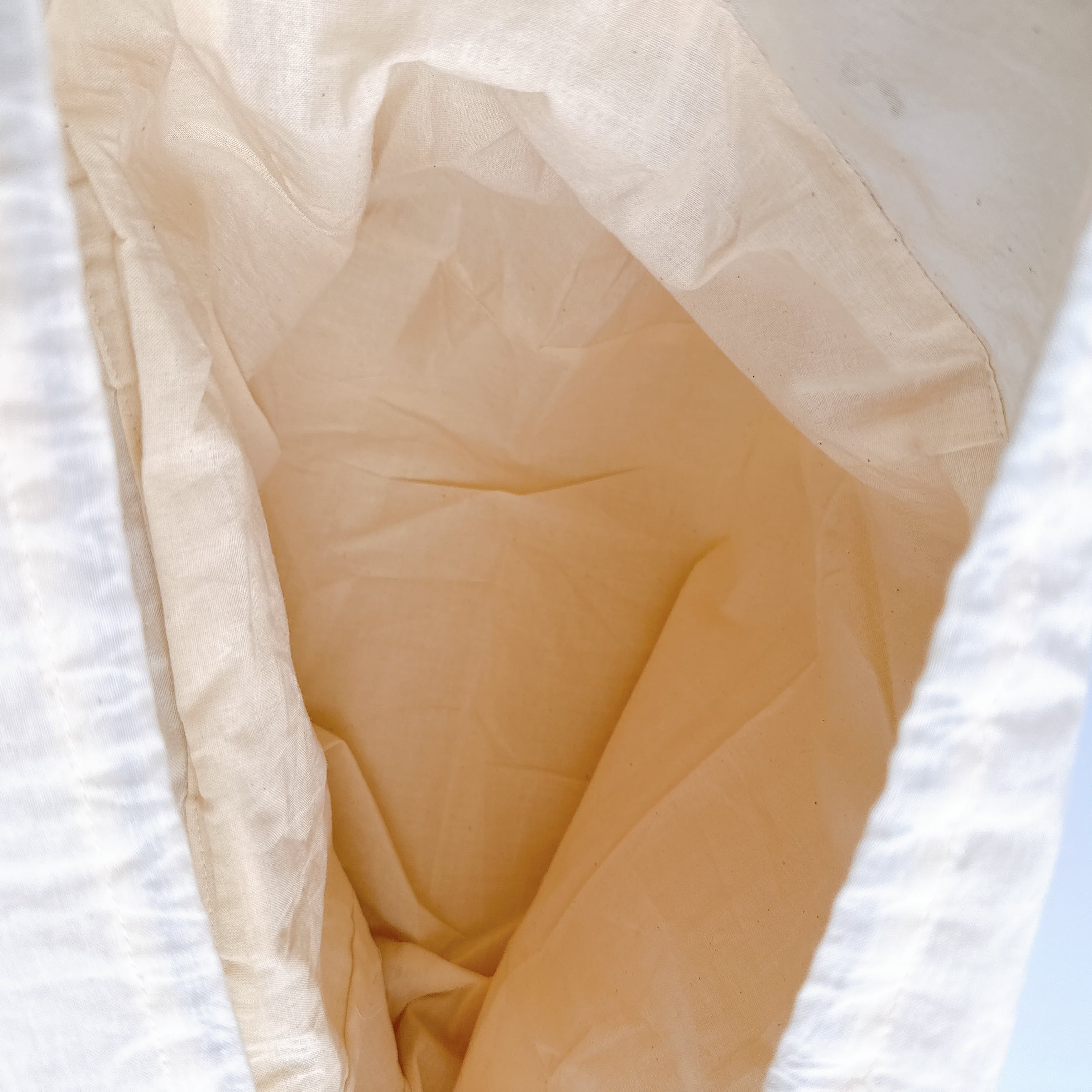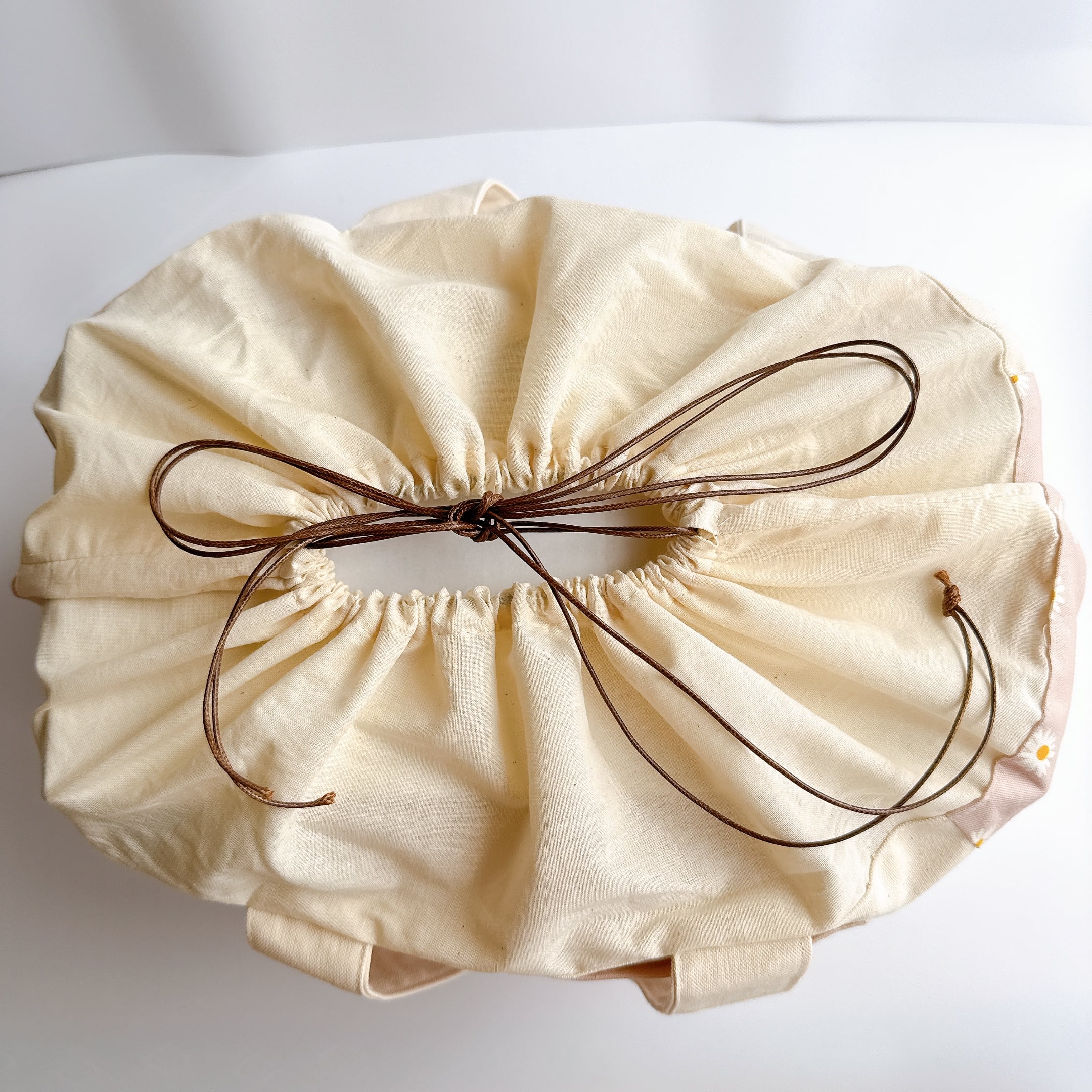開口部の布は裏布と同じシーチングを使用しました。布が柔らかいので巾着が絞りやすく、小鳥さんの出し入れも安心で統一感も抜群です♪