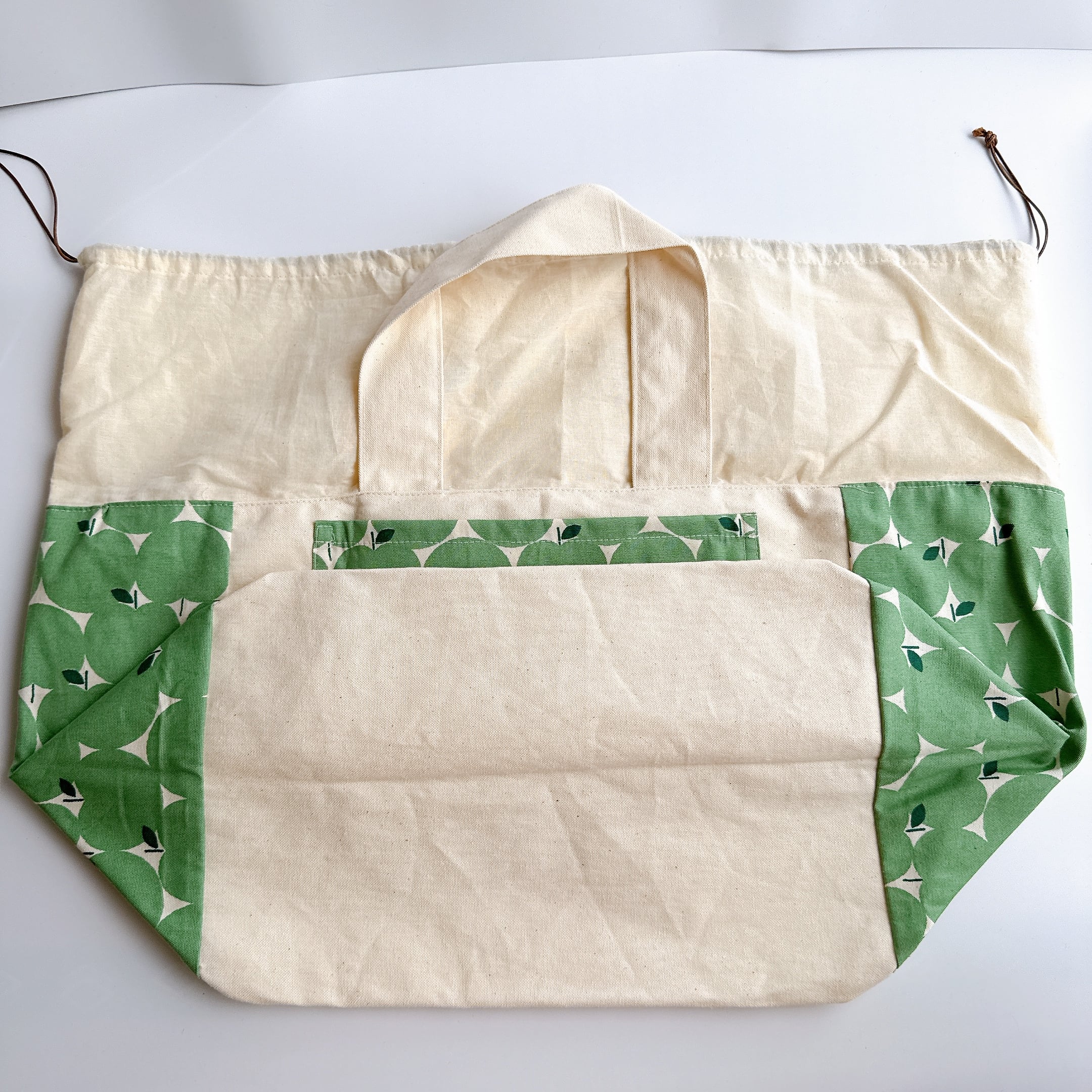 開口部の布は裏布と同じシーチングを使用しました。布が柔らかいので巾着が絞りやすく、小鳥さんの出し入れも安心で統一感も抜群です♪