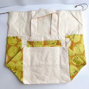 開口部の布は裏布と同じシーチングを使用しました。布が柔らかいので巾着が絞りやすく、小鳥さんの出し入れも安心で統一感も抜群です♪