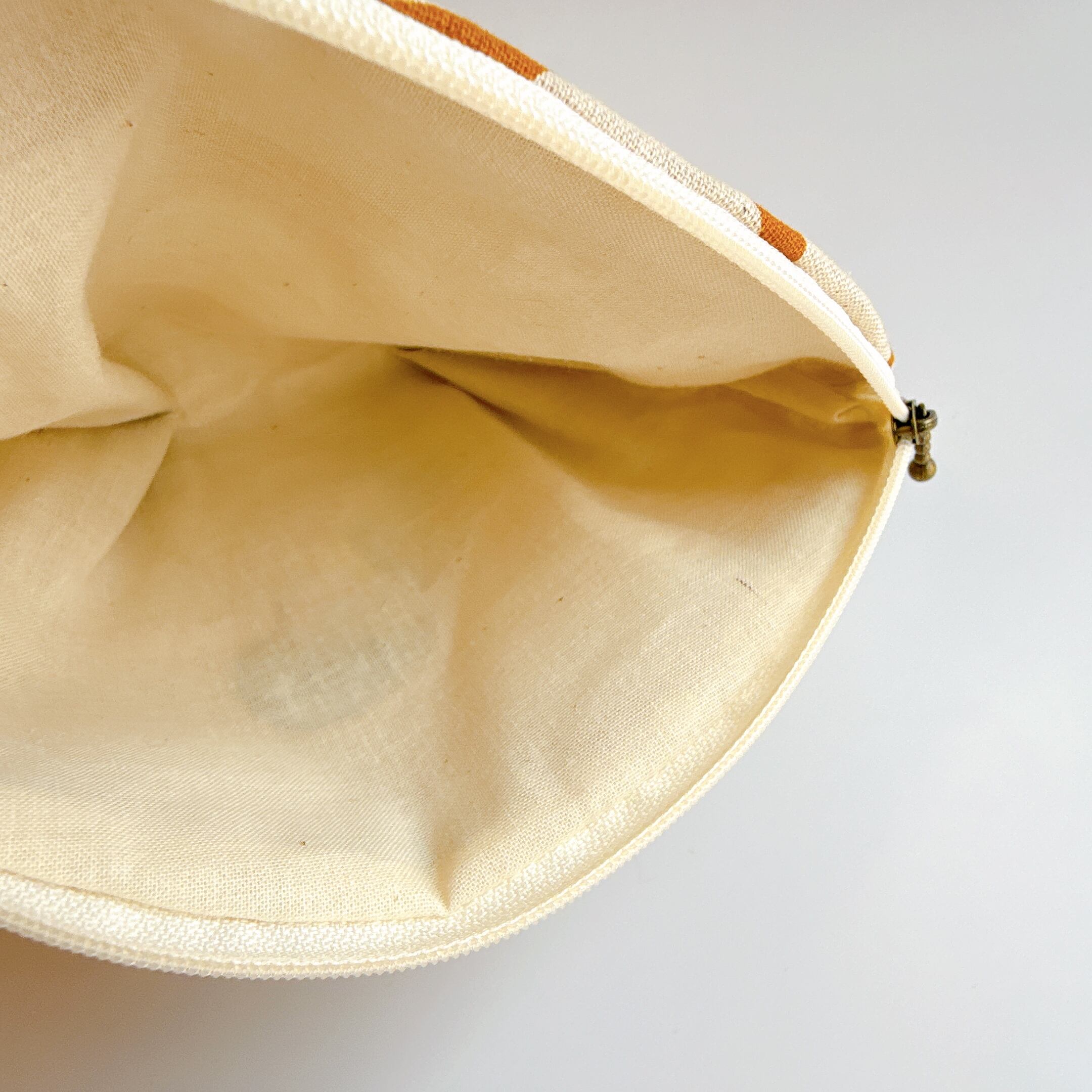 通帳やコスメ、小物整理に便利なシェルポーチです。