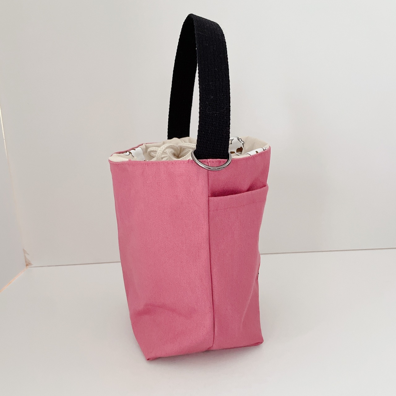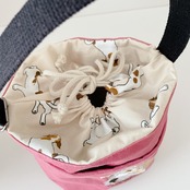 開口部は巾着です。巾着分ゆったりと使用できますので、500mlのペットボトルも中に入れてお散歩できます♩