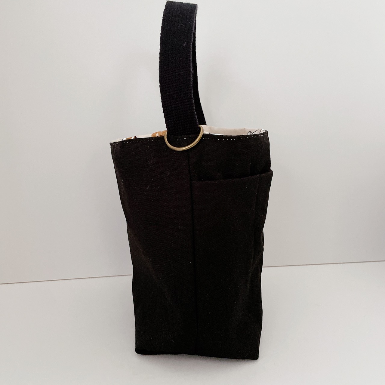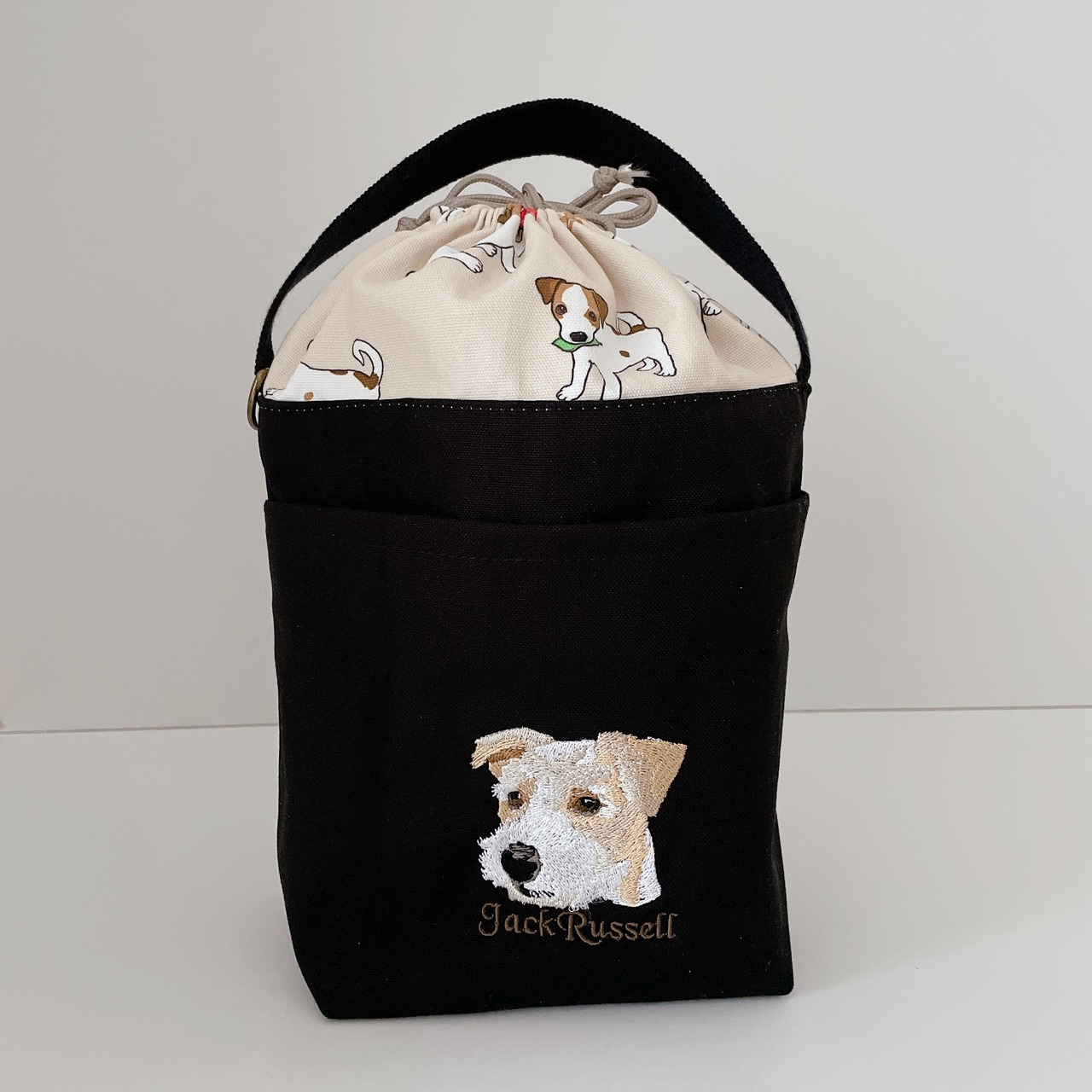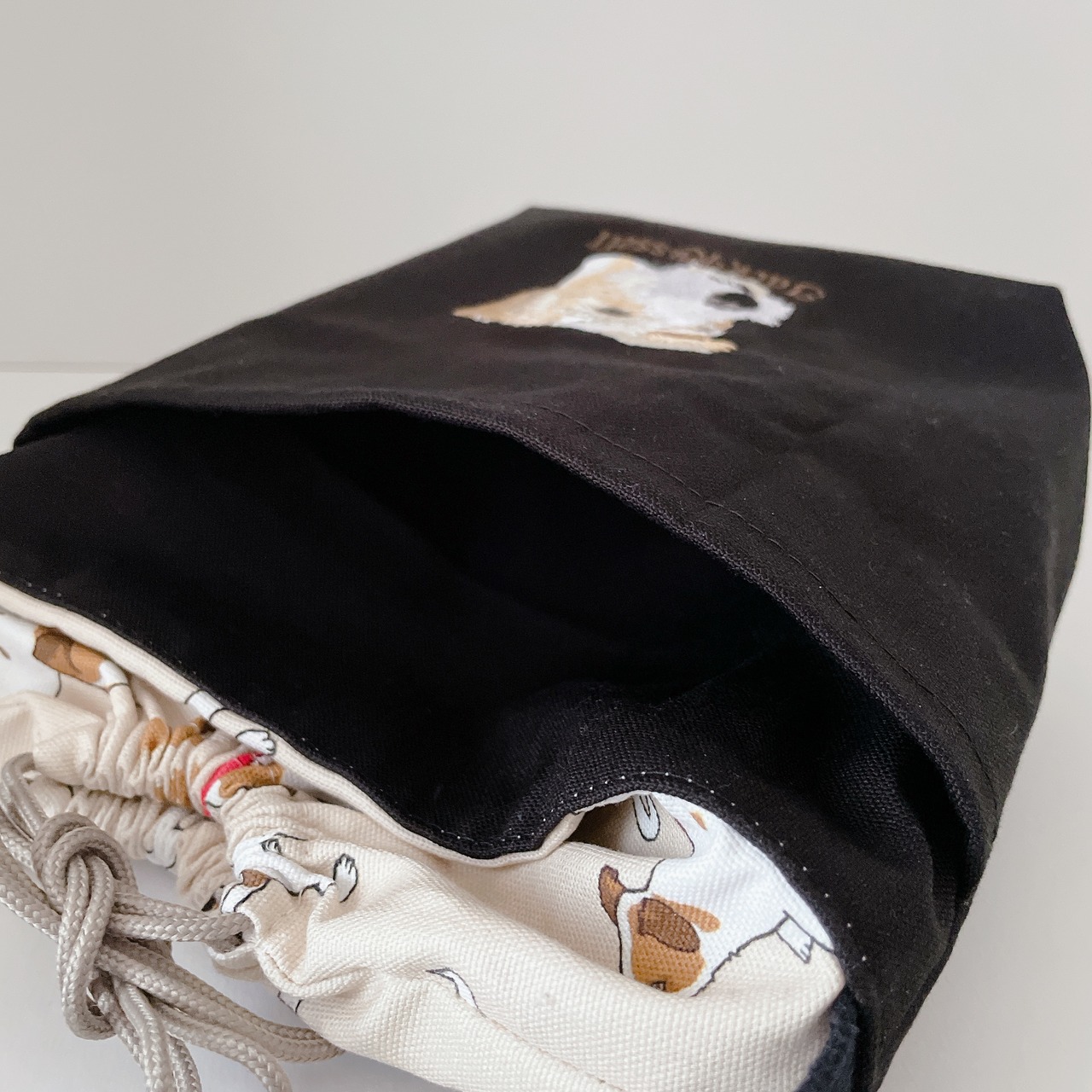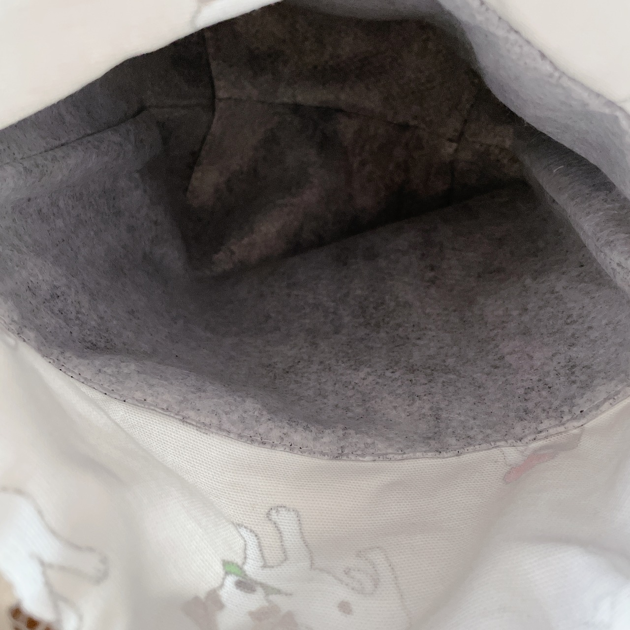 開口部は巾着です。巾着分ゆったりと使用できますので、500mlのペットボトルも中に入れてお散歩できます♩
