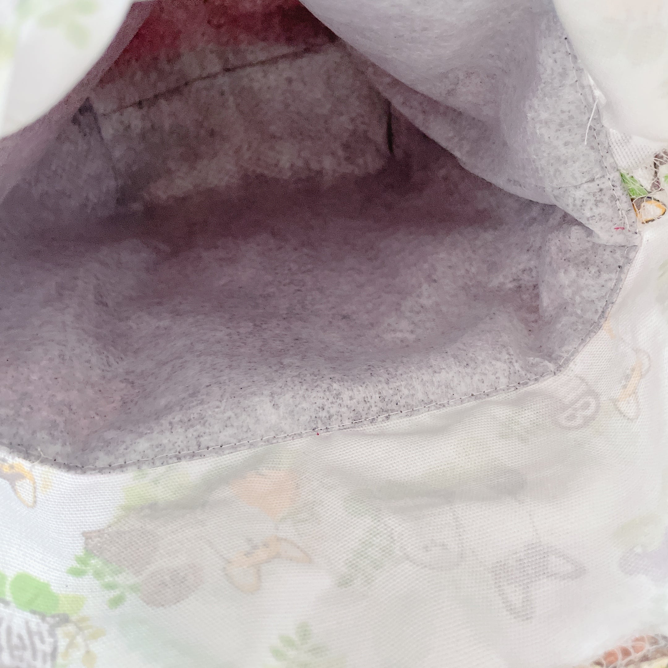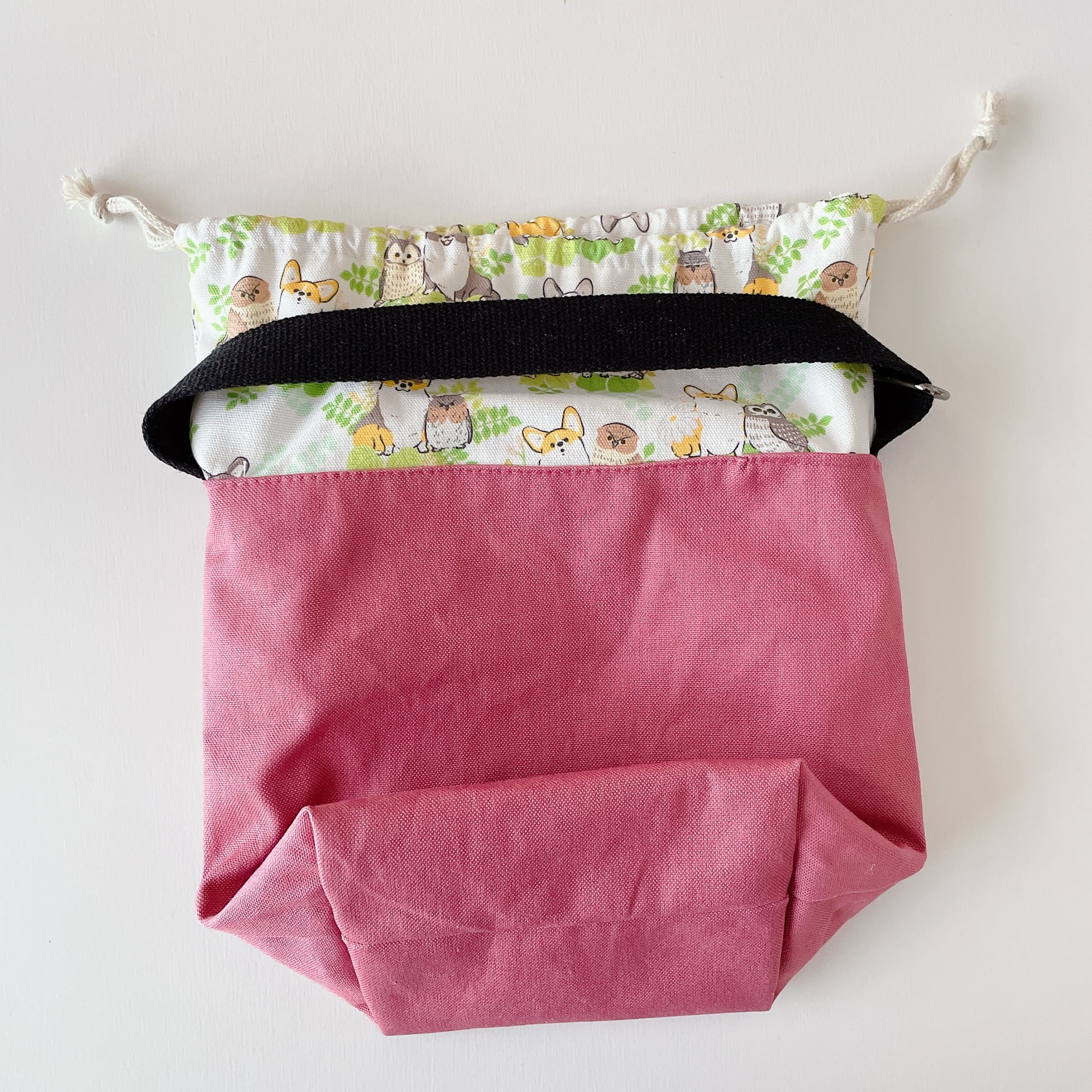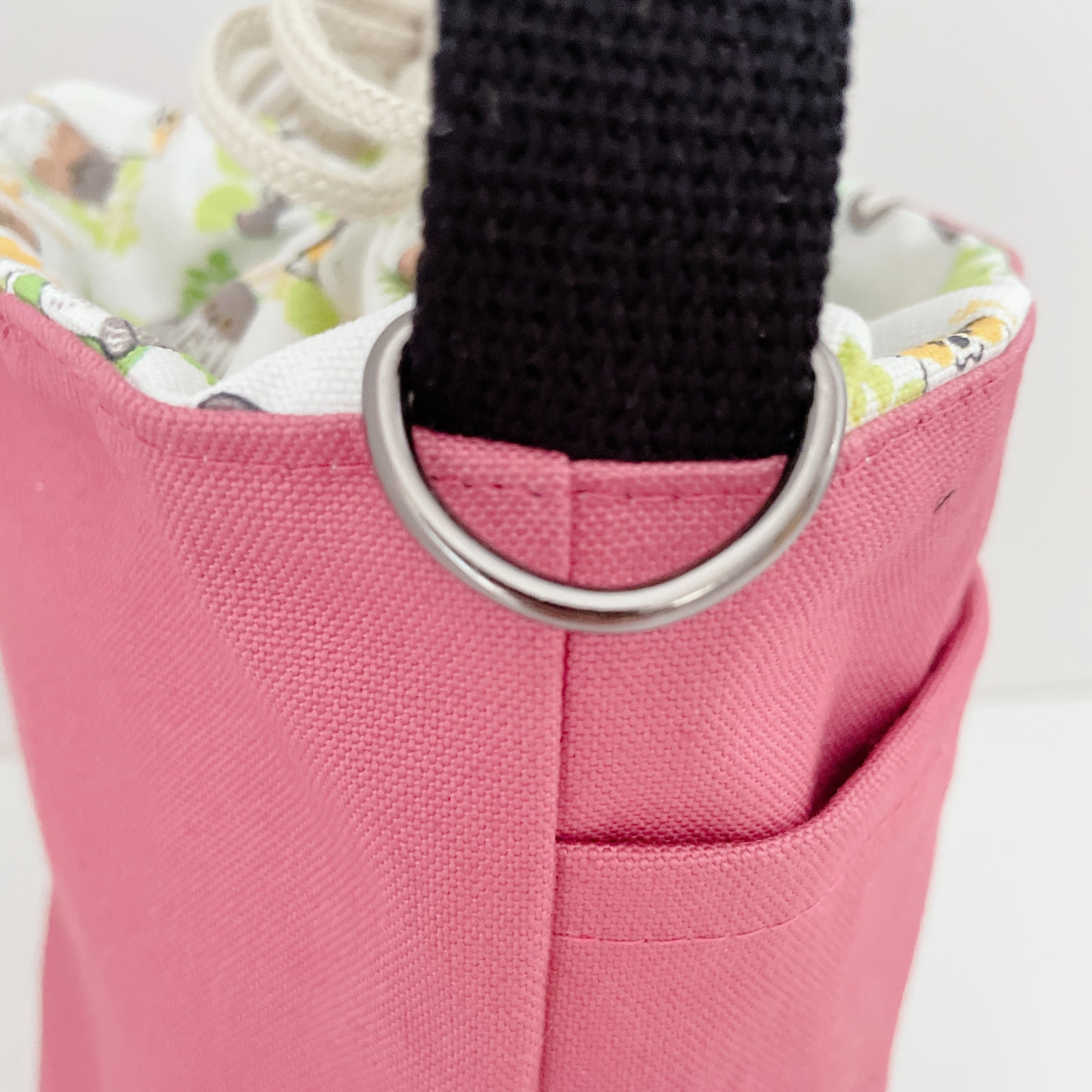 開口部は巾着です。巾着分ゆったりと使用できますので、500mlのペットボトルも中に入れてお散歩できます♩