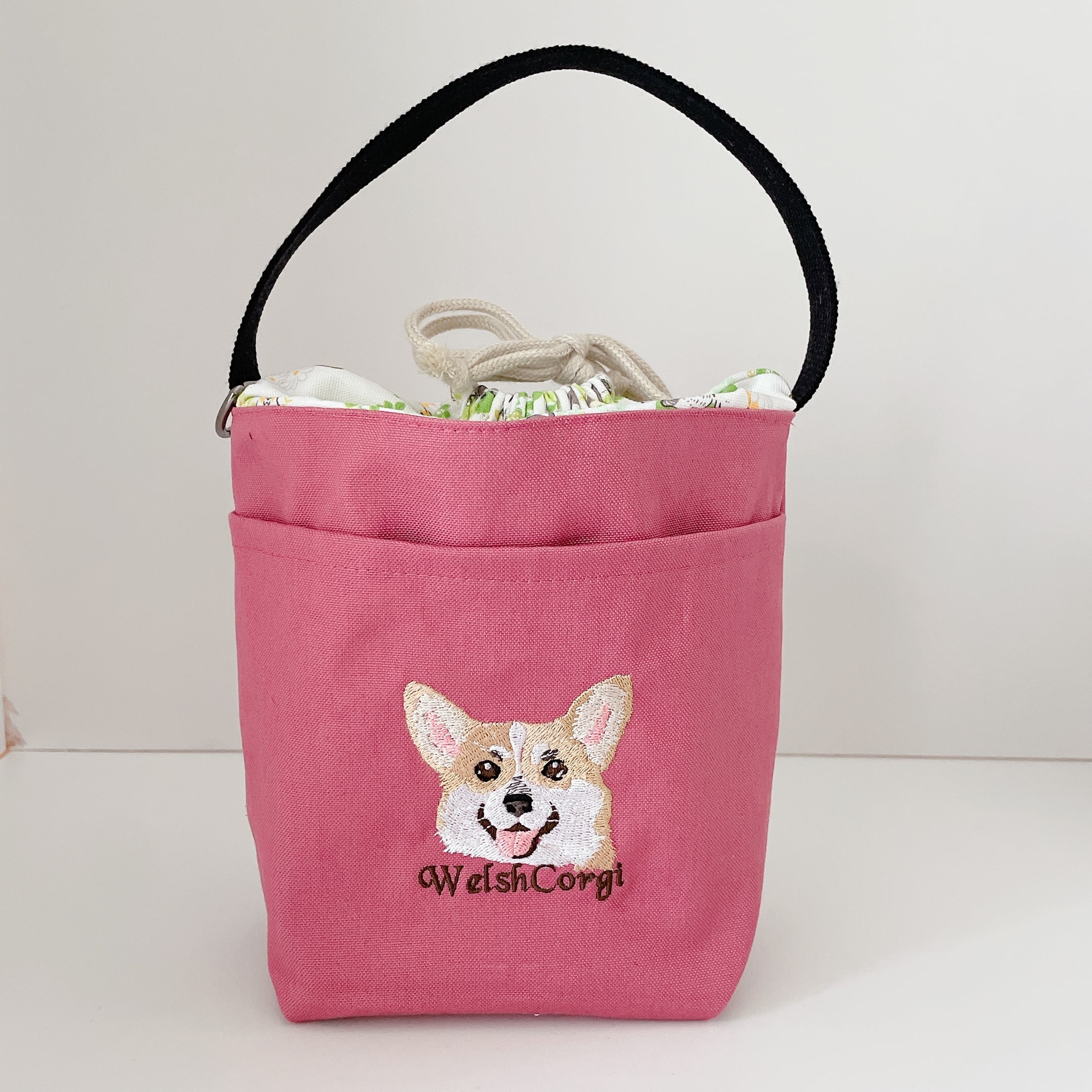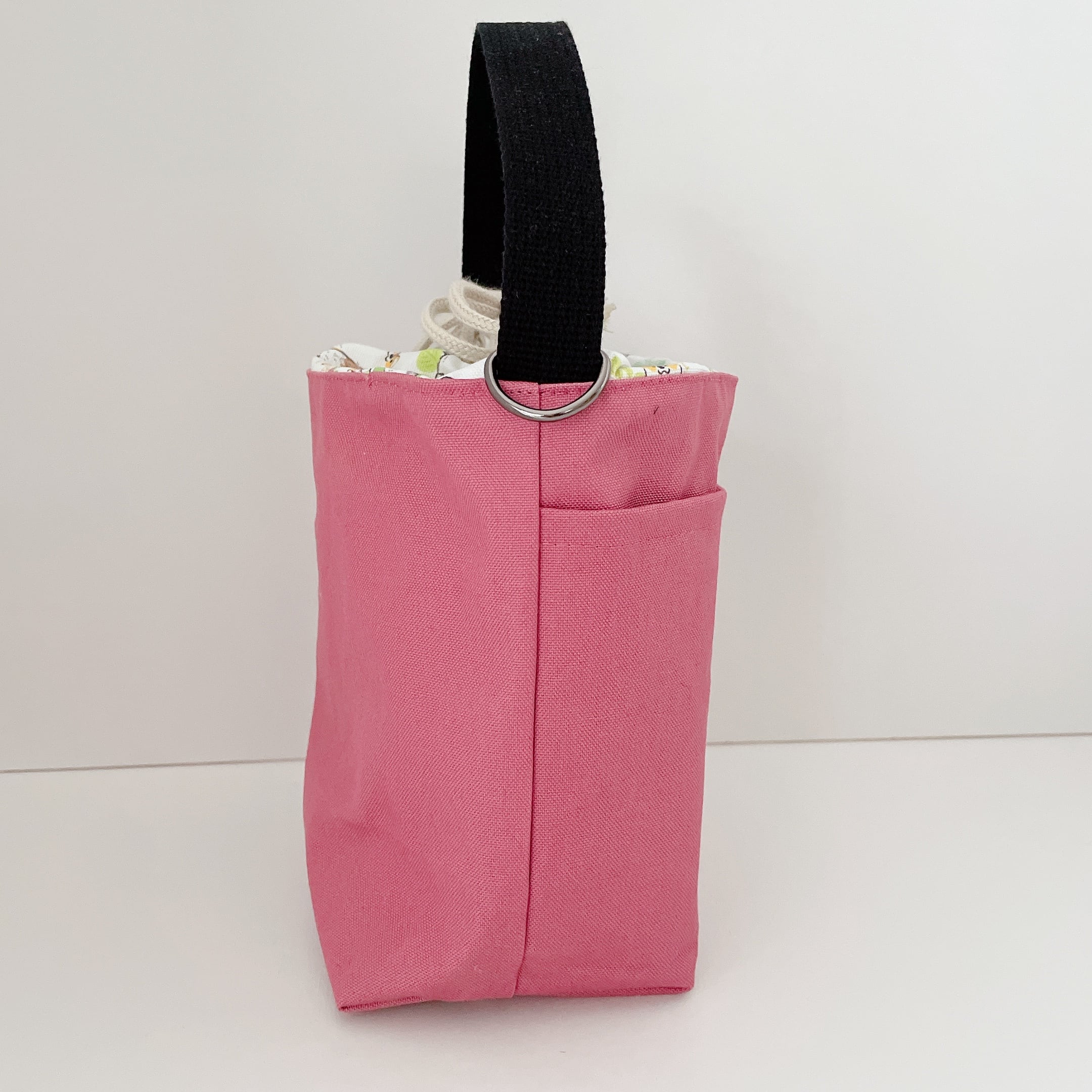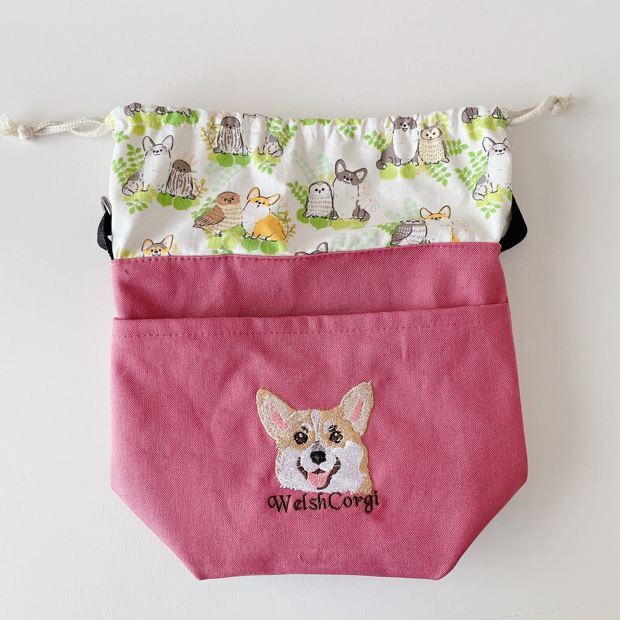 開口部は巾着です。巾着分ゆったりと使用できますので、500mlのペットボトルも中に入れてお散歩できます♩