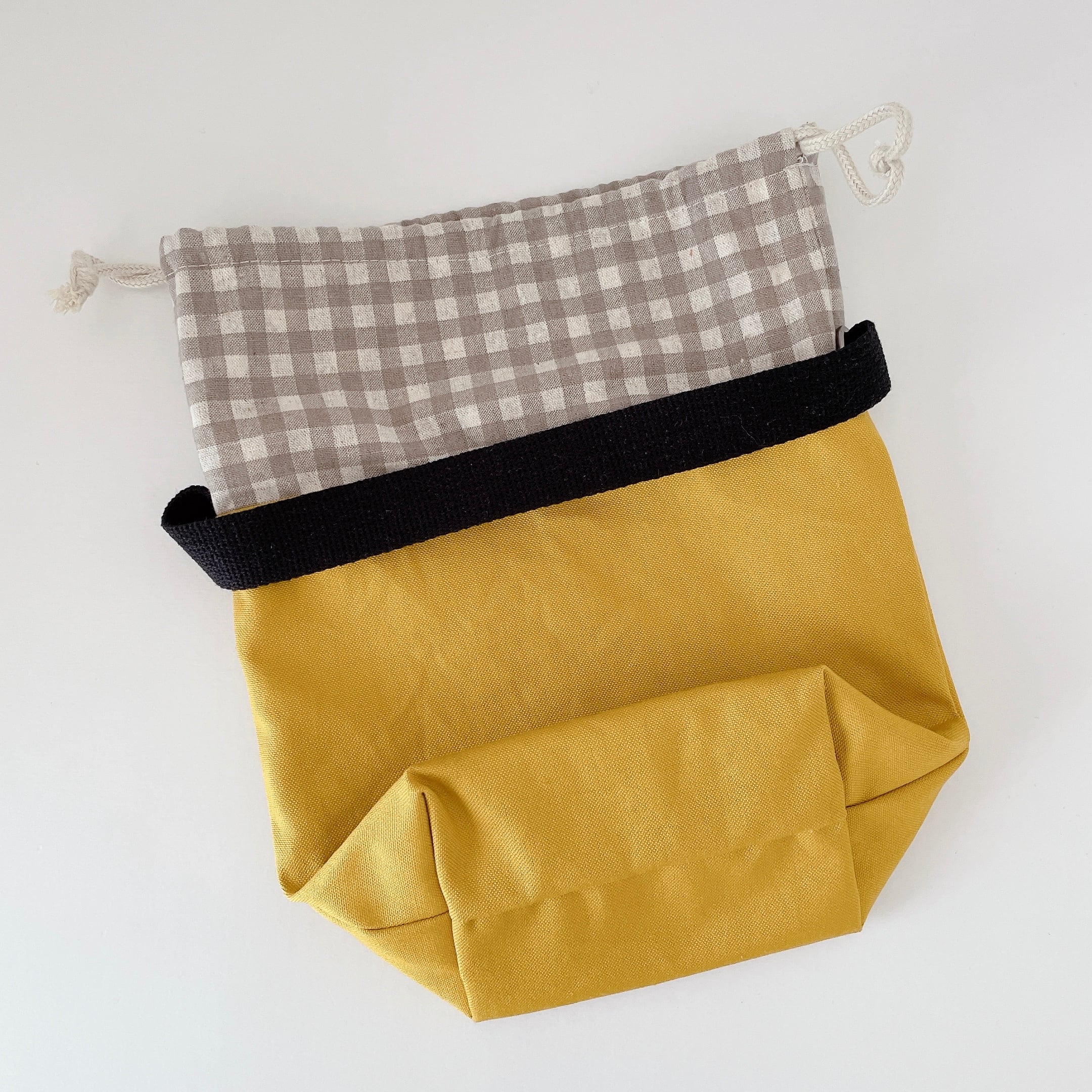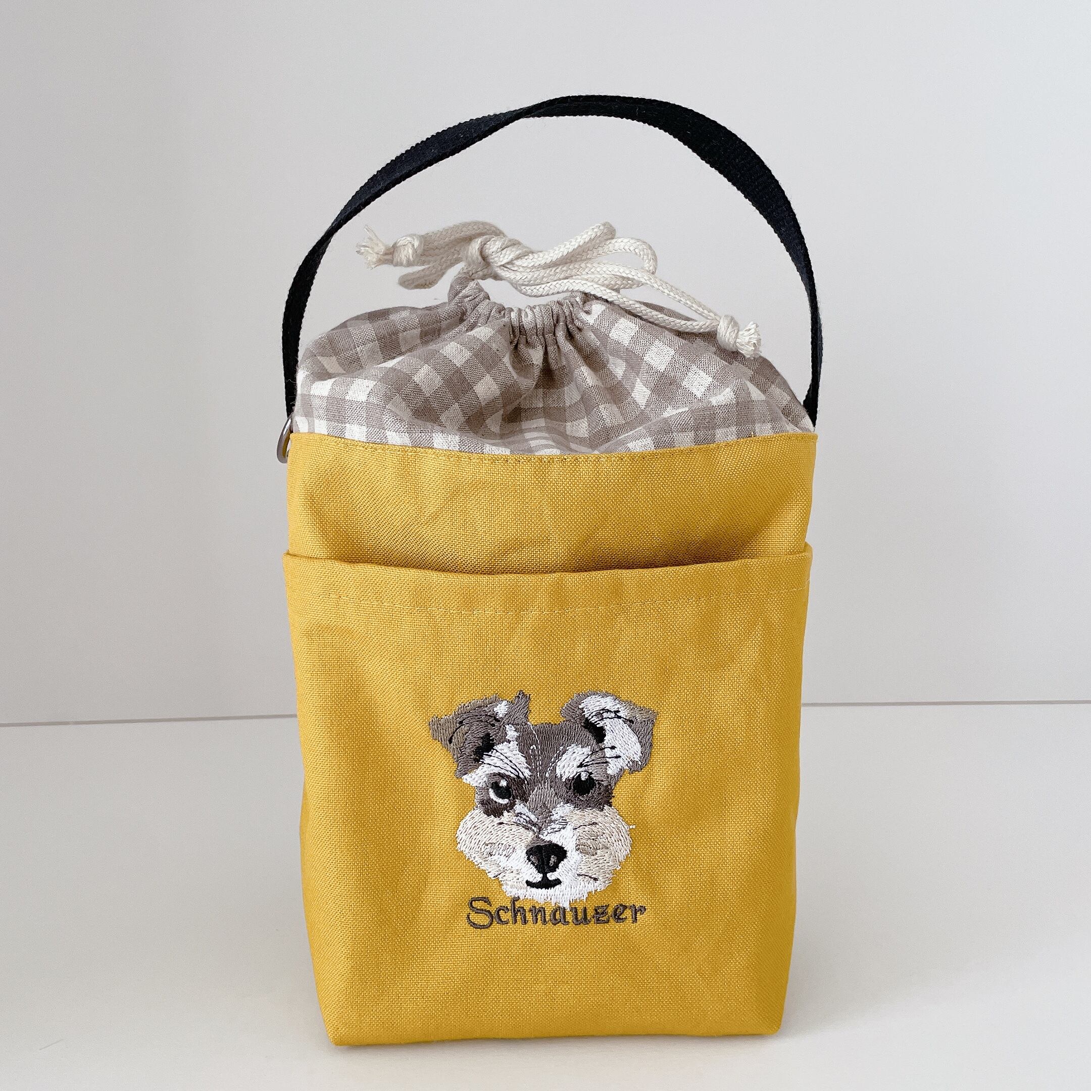 開口部は巾着です。巾着分ゆったりと使用できますので、500mlのペットボトルも中に入れてお散歩できます♩