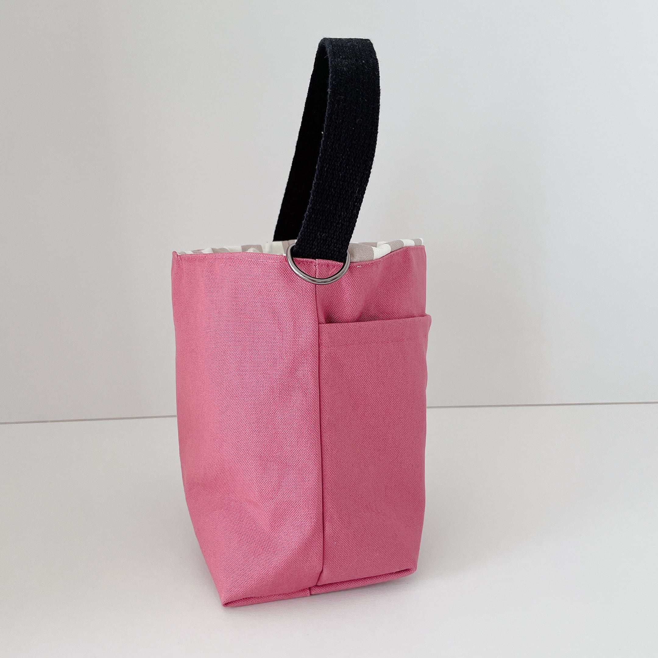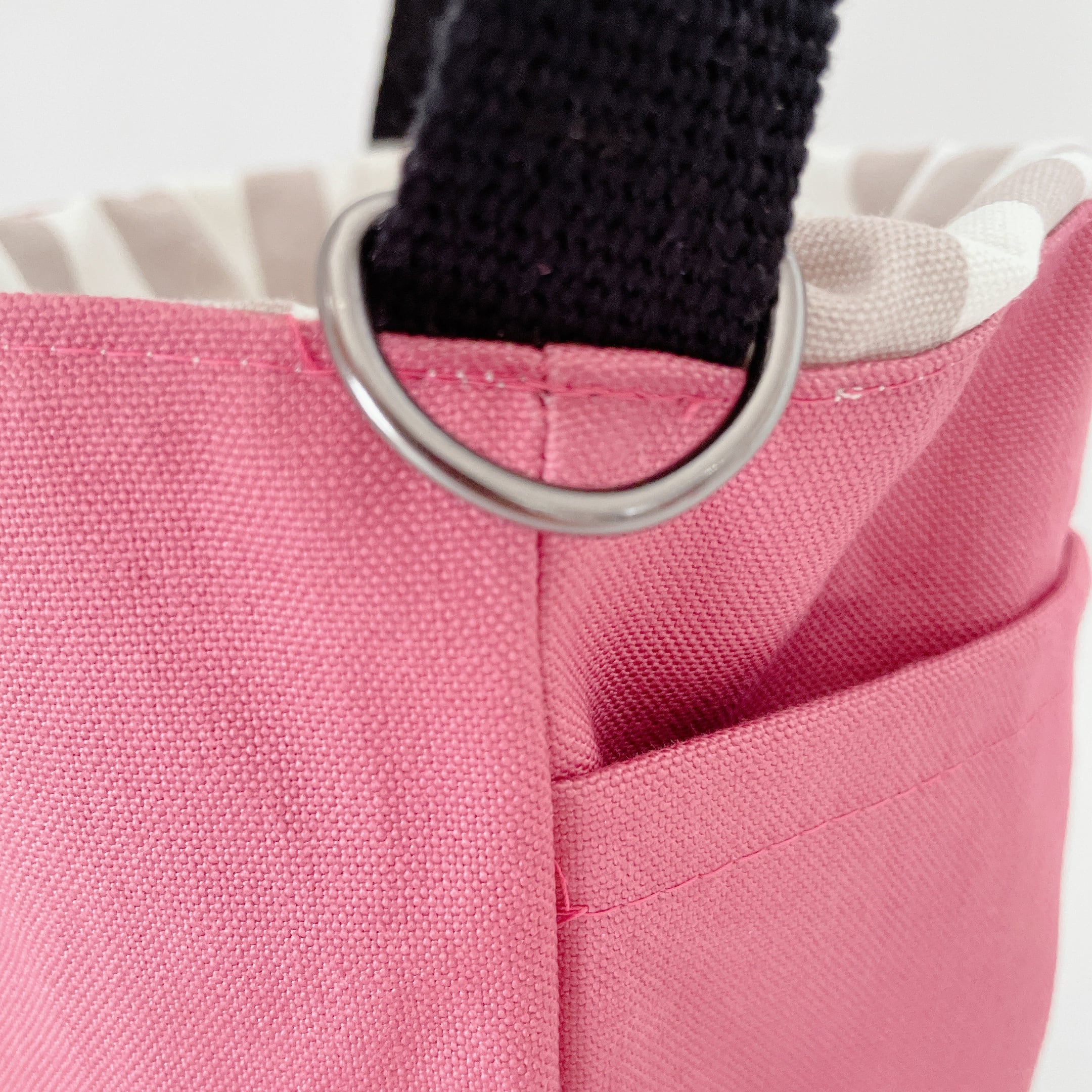 持ち手の横にはDカンが付いています。おやつケースや給水皿を持ち歩くのに便利です!