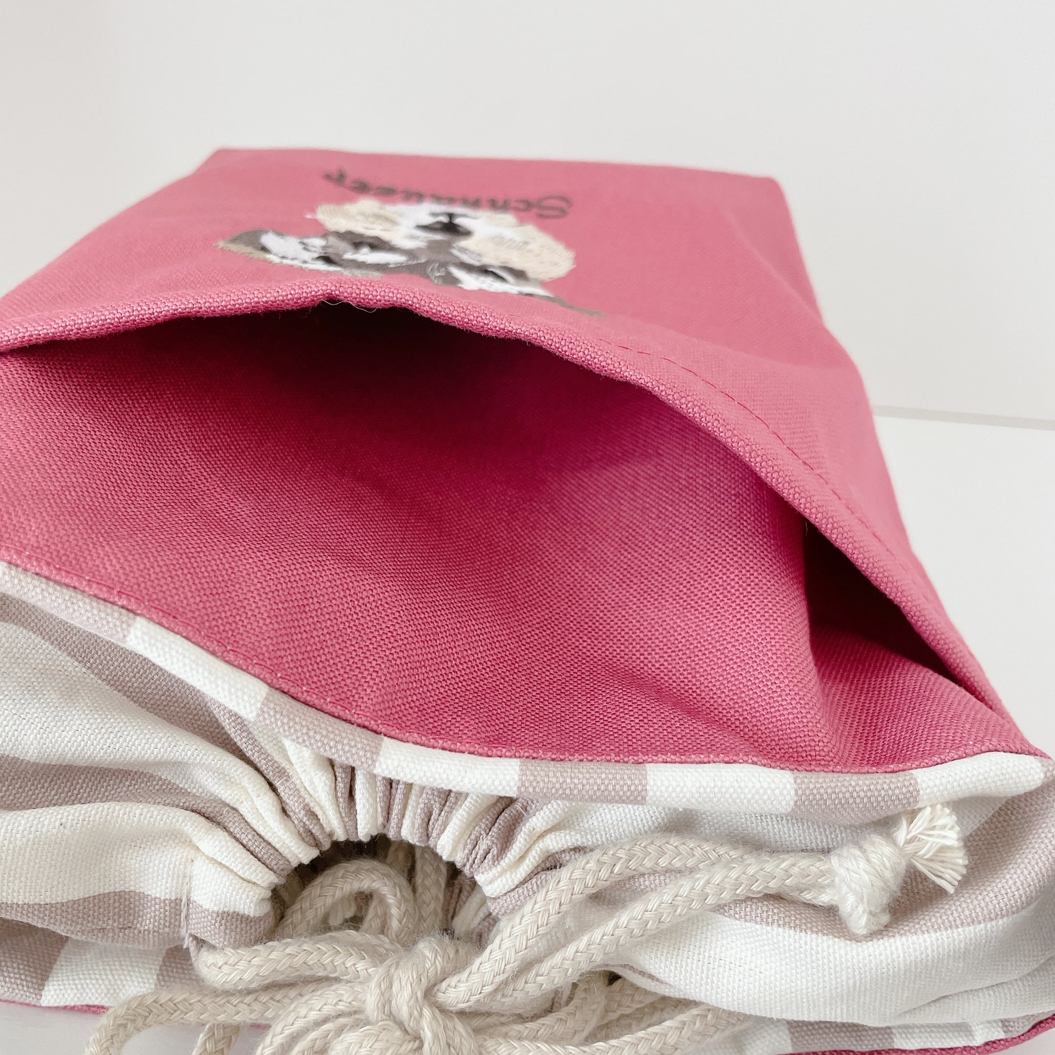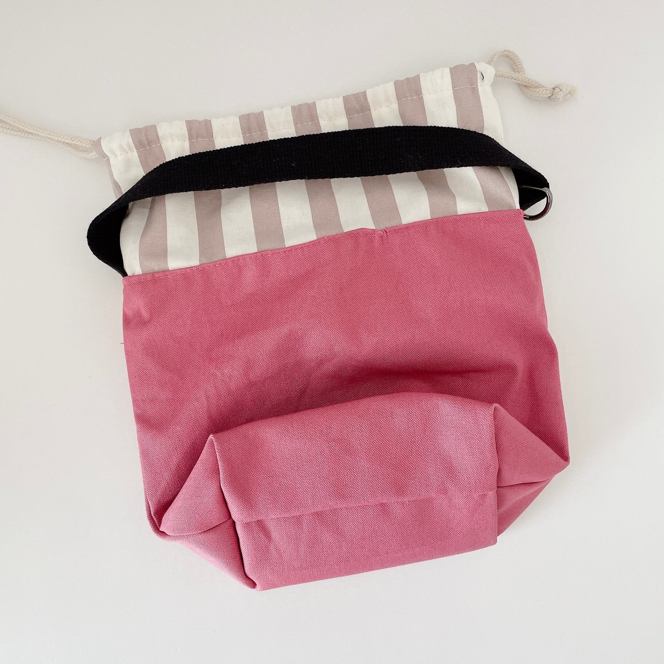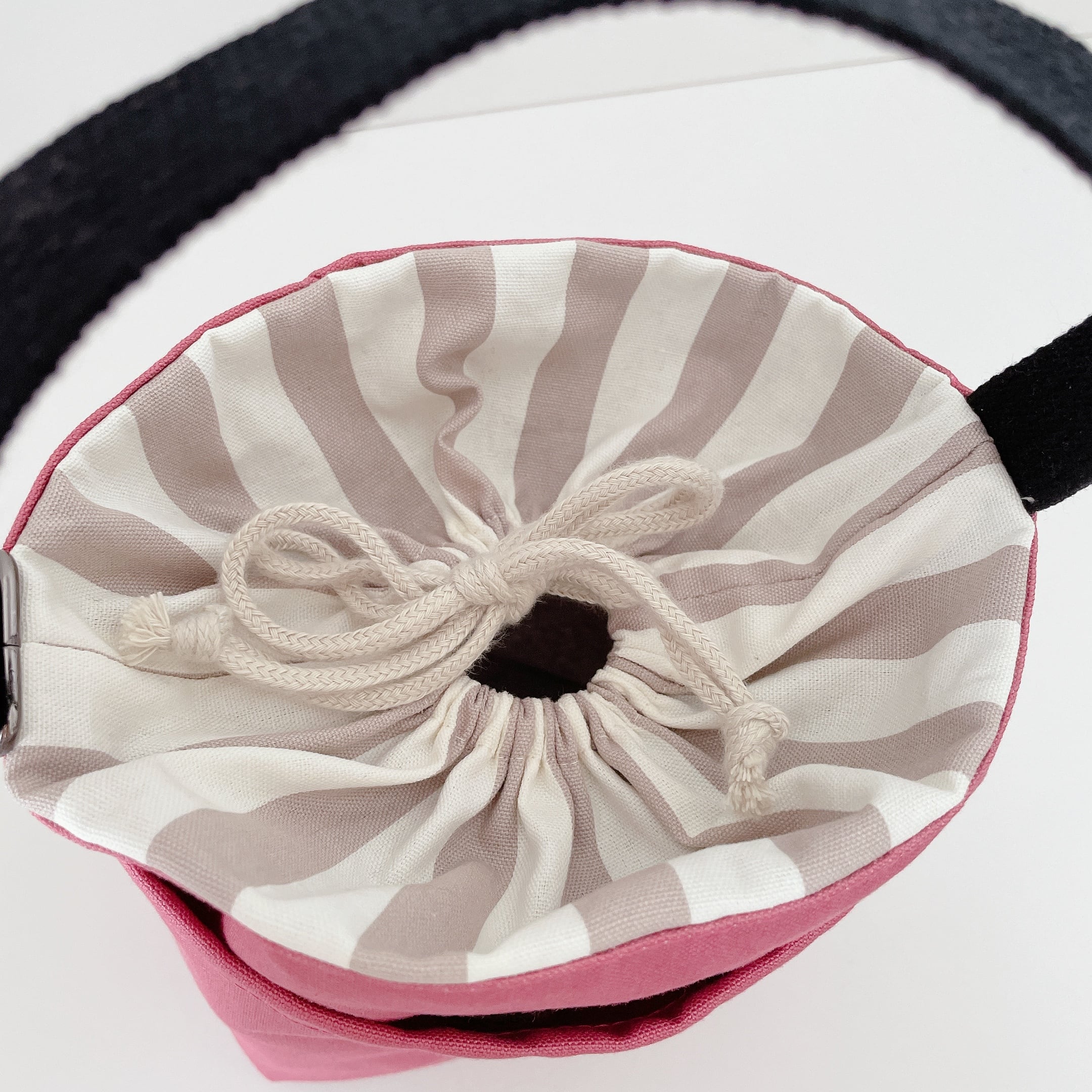 開口部は巾着です。巾着分ゆったりと使用できますので、500mlのペットボトルも中に入れてお散歩できます♩