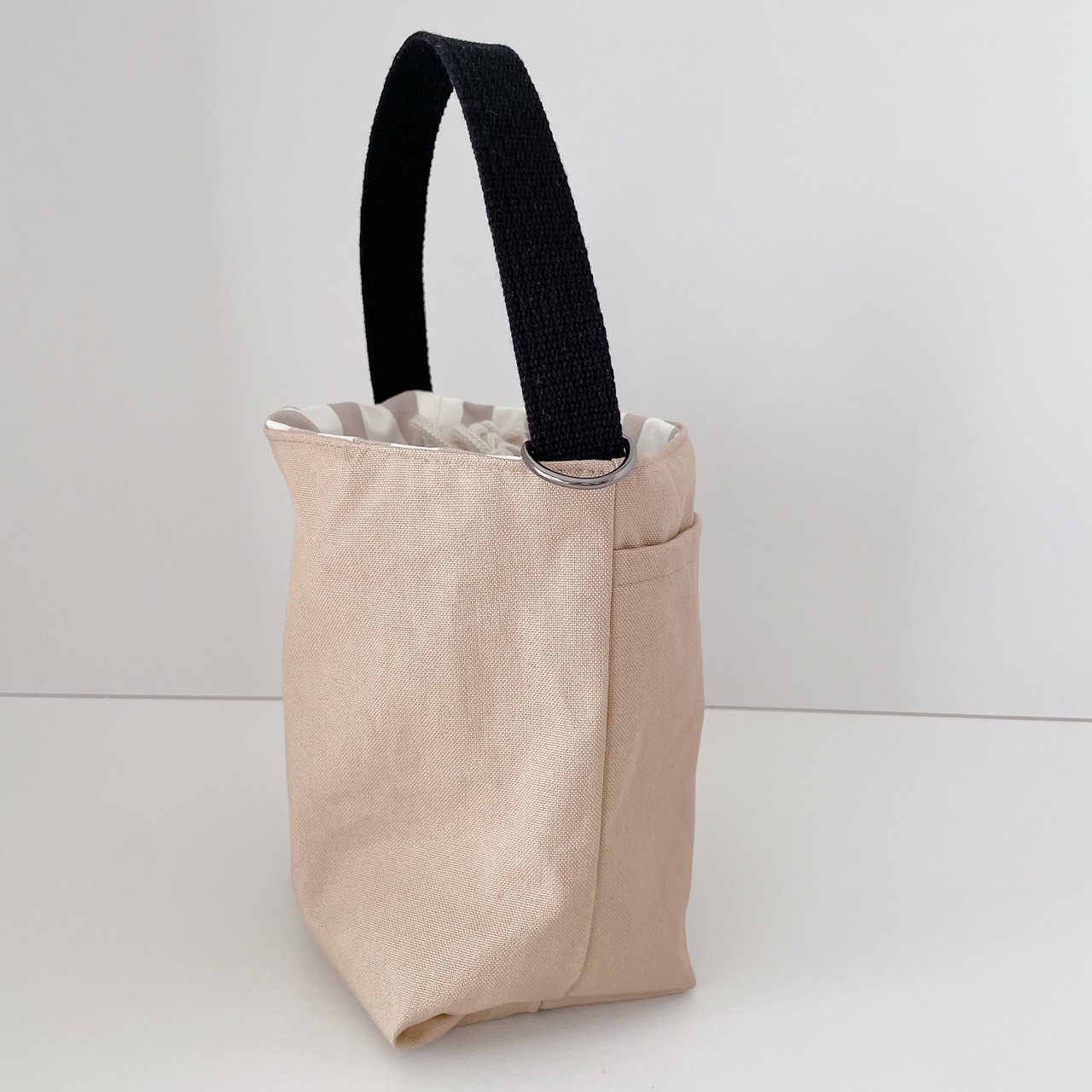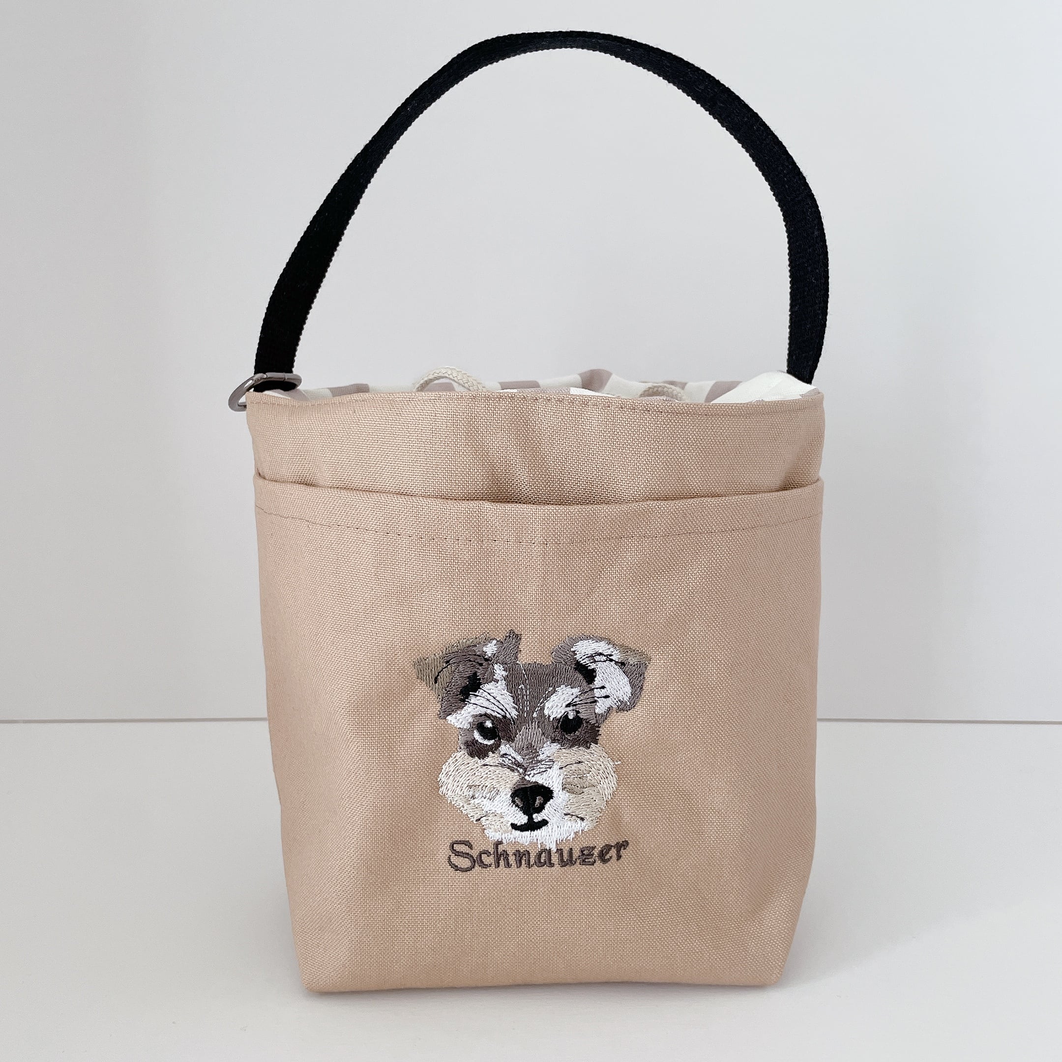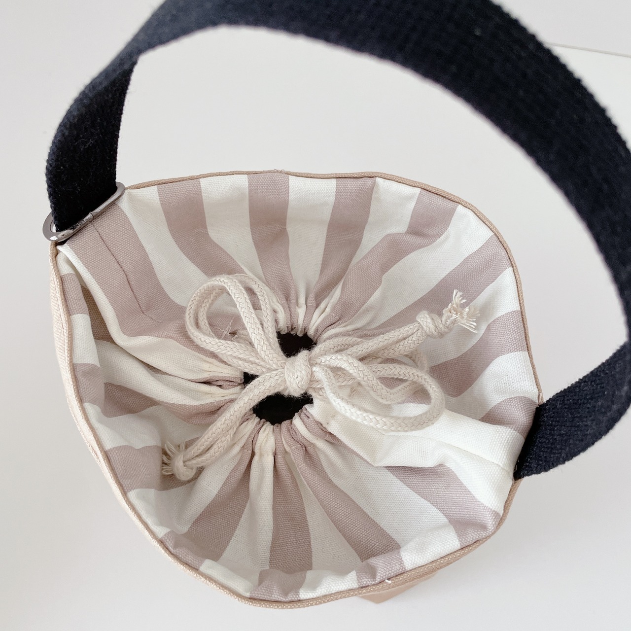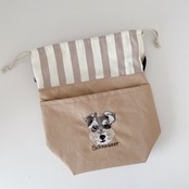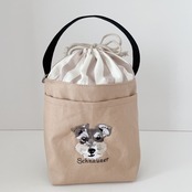 開口部は巾着です。巾着分ゆったりと使用できますので、500mlのペットボトルも中に入れてお散歩できます♩
