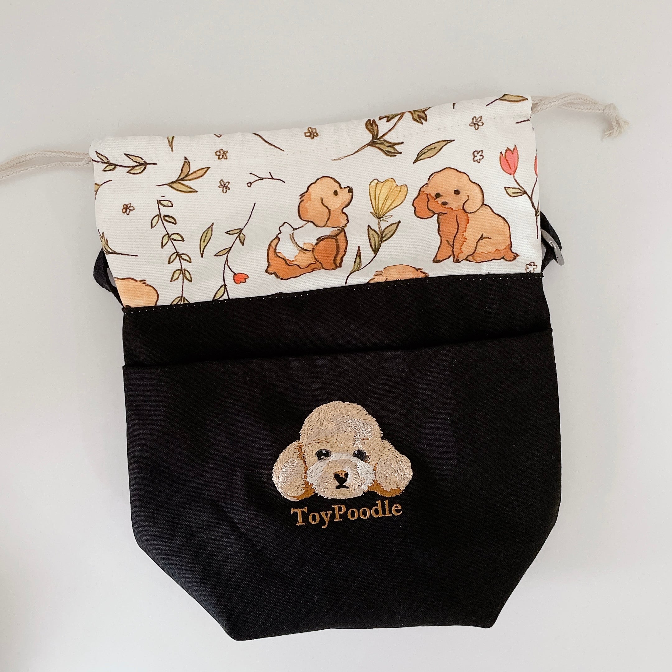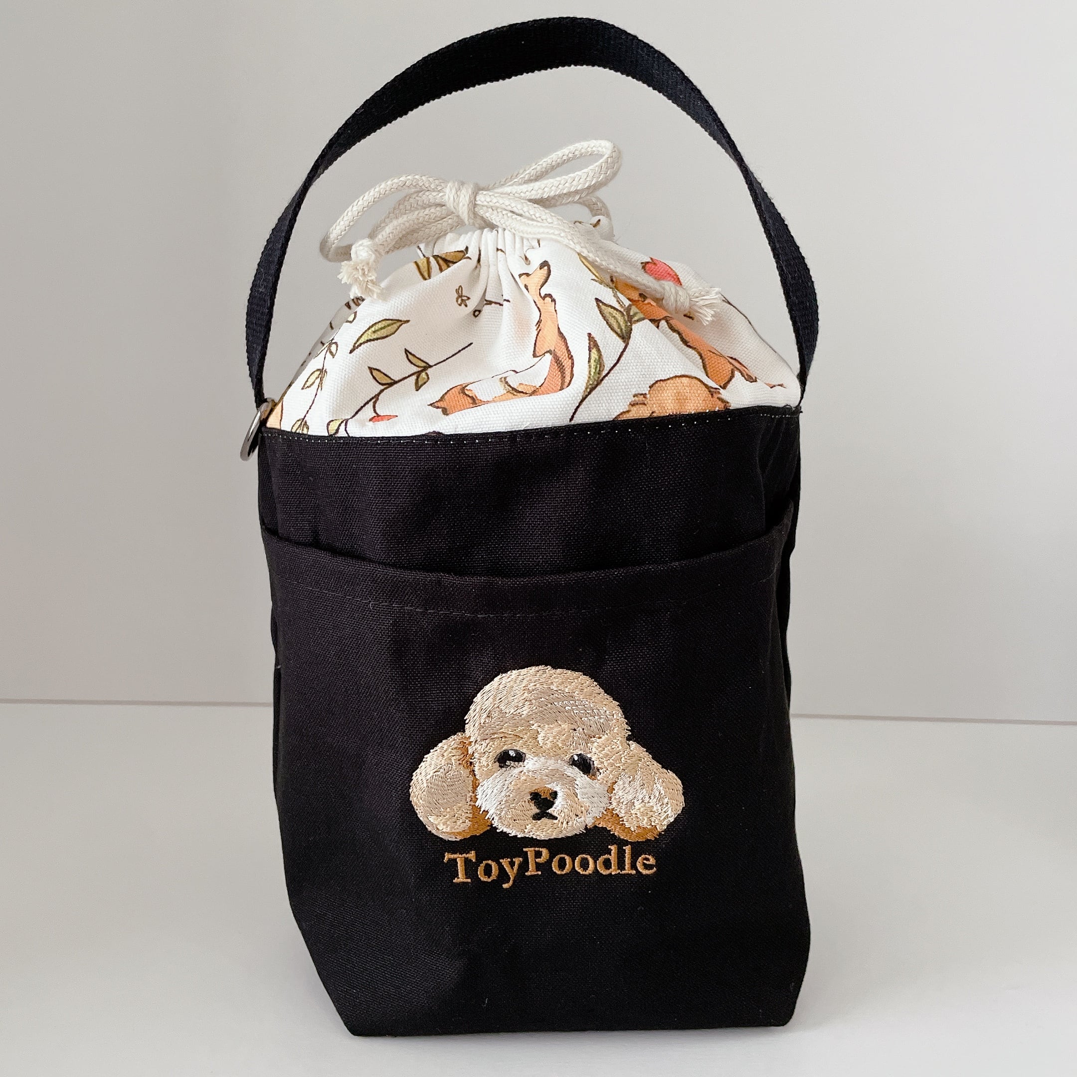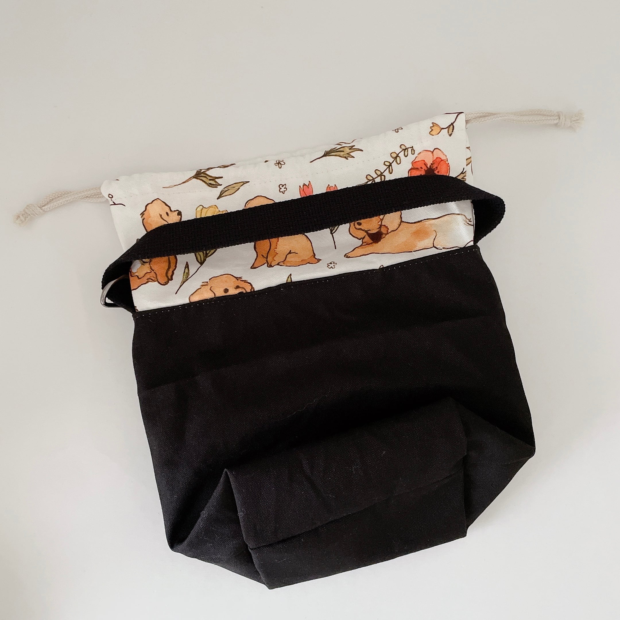 開口部は巾着です。巾着分ゆったりと使用できますので、500mlのペットボトルも中に入れてお散歩できます♩