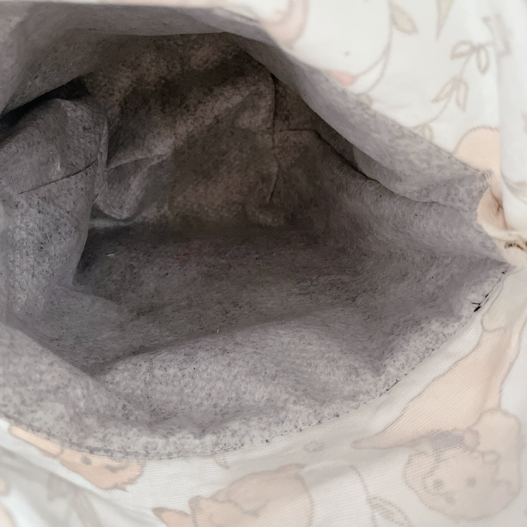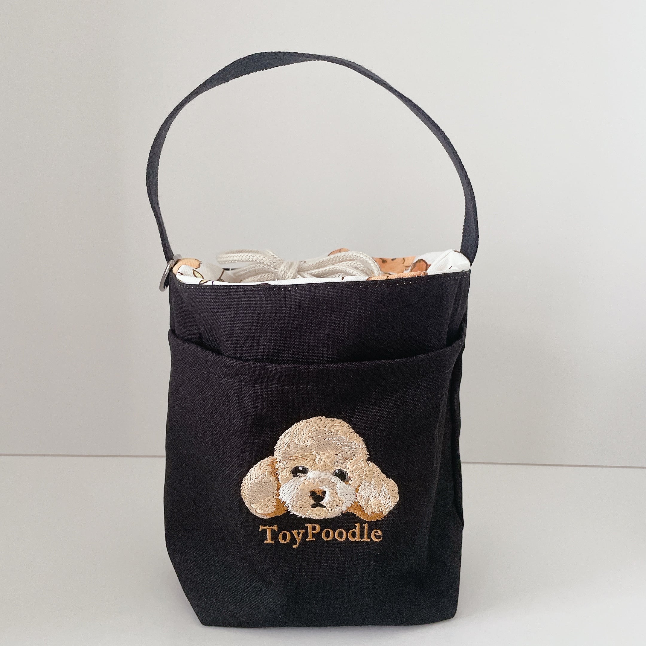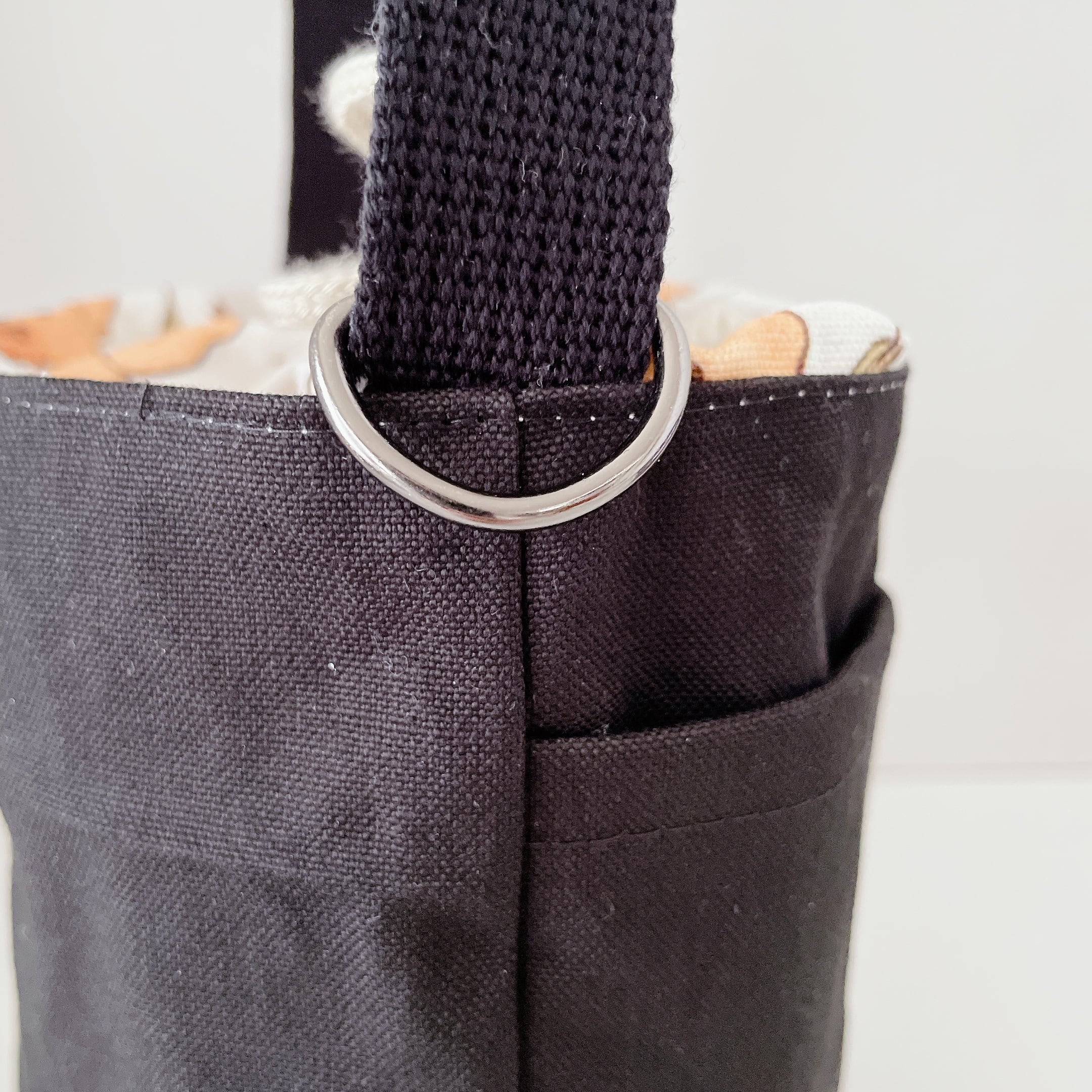 開口部は巾着です。巾着分ゆったりと使用できますので、500mlのペットボトルも中に入れてお散歩できます♩