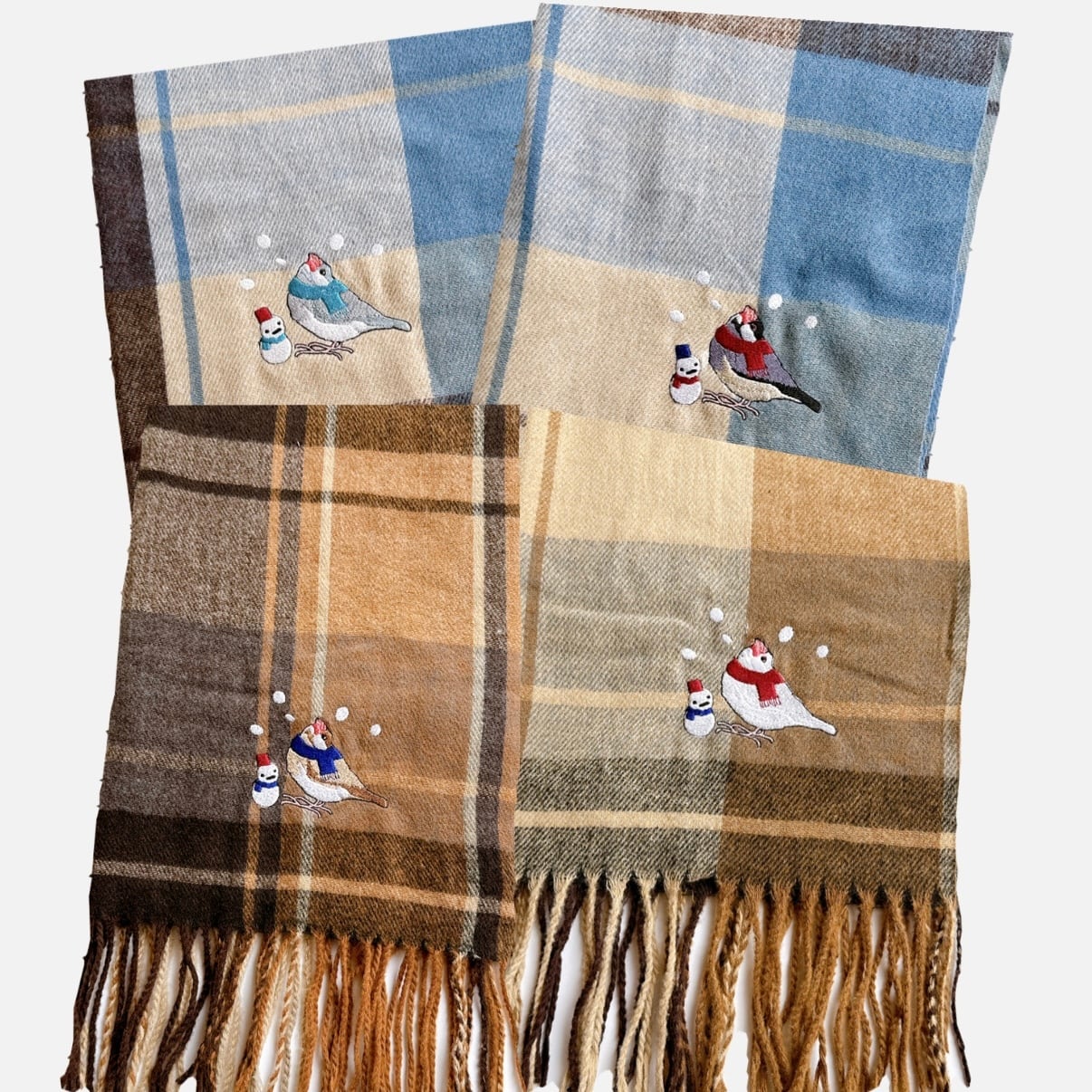 贈り物としても喜ばれること間違いなしの可愛いマフラーです。文鳥好きな方へのプレゼントや、自分へのご褒美にもぴったりです♪