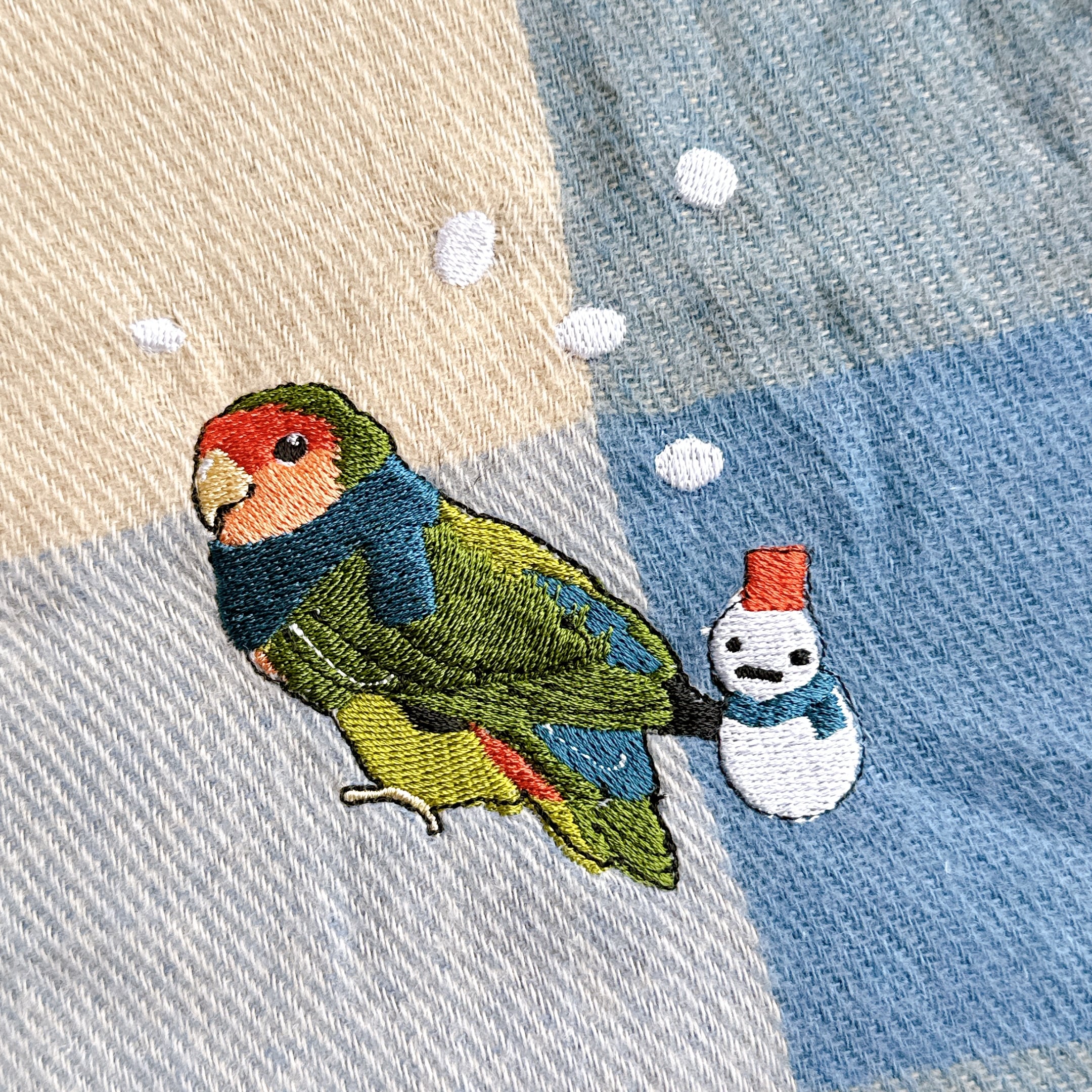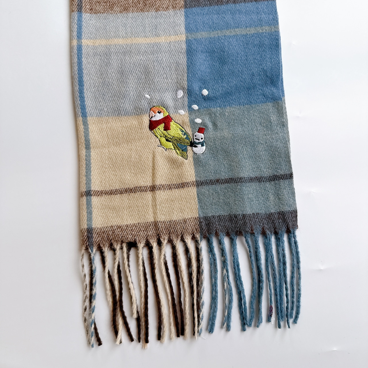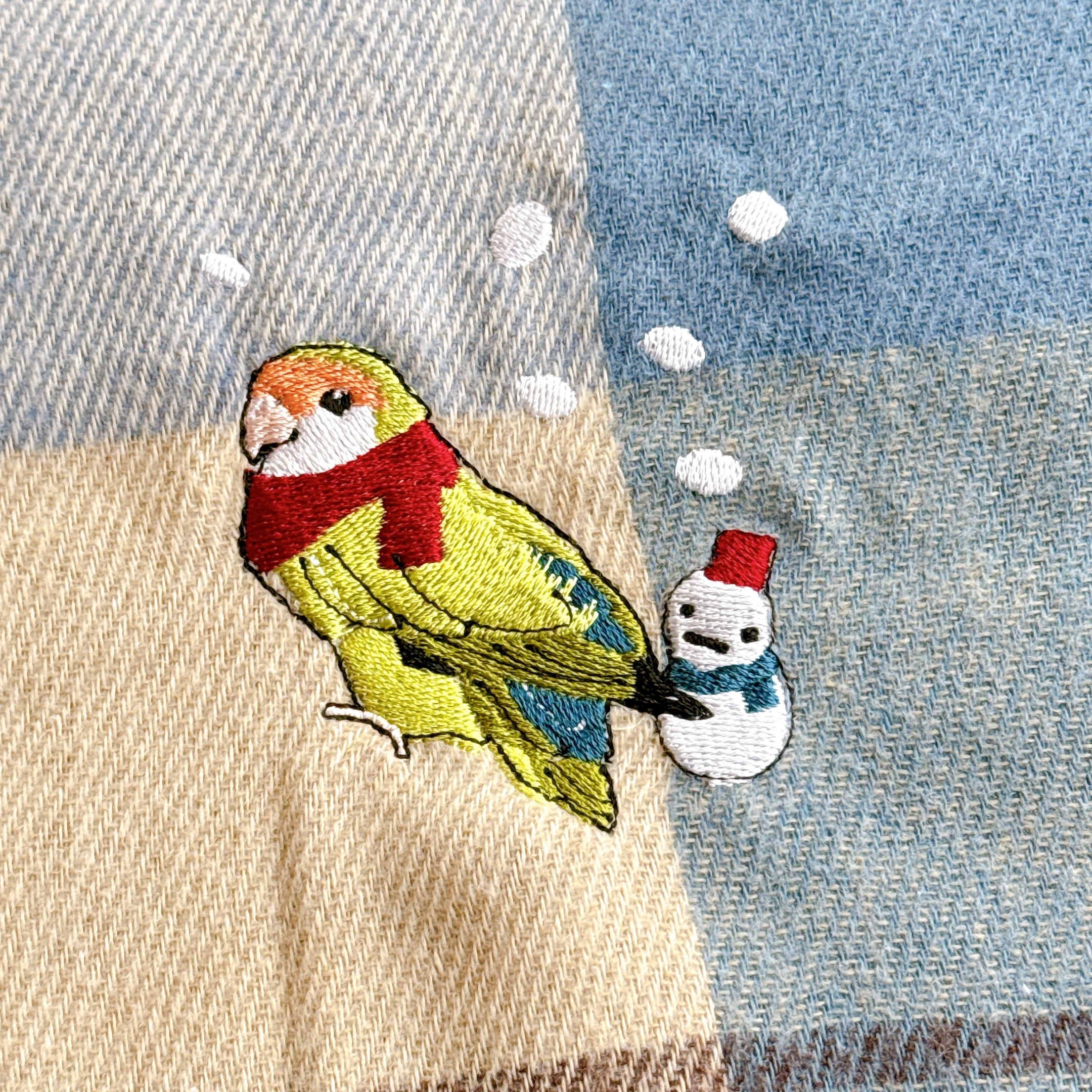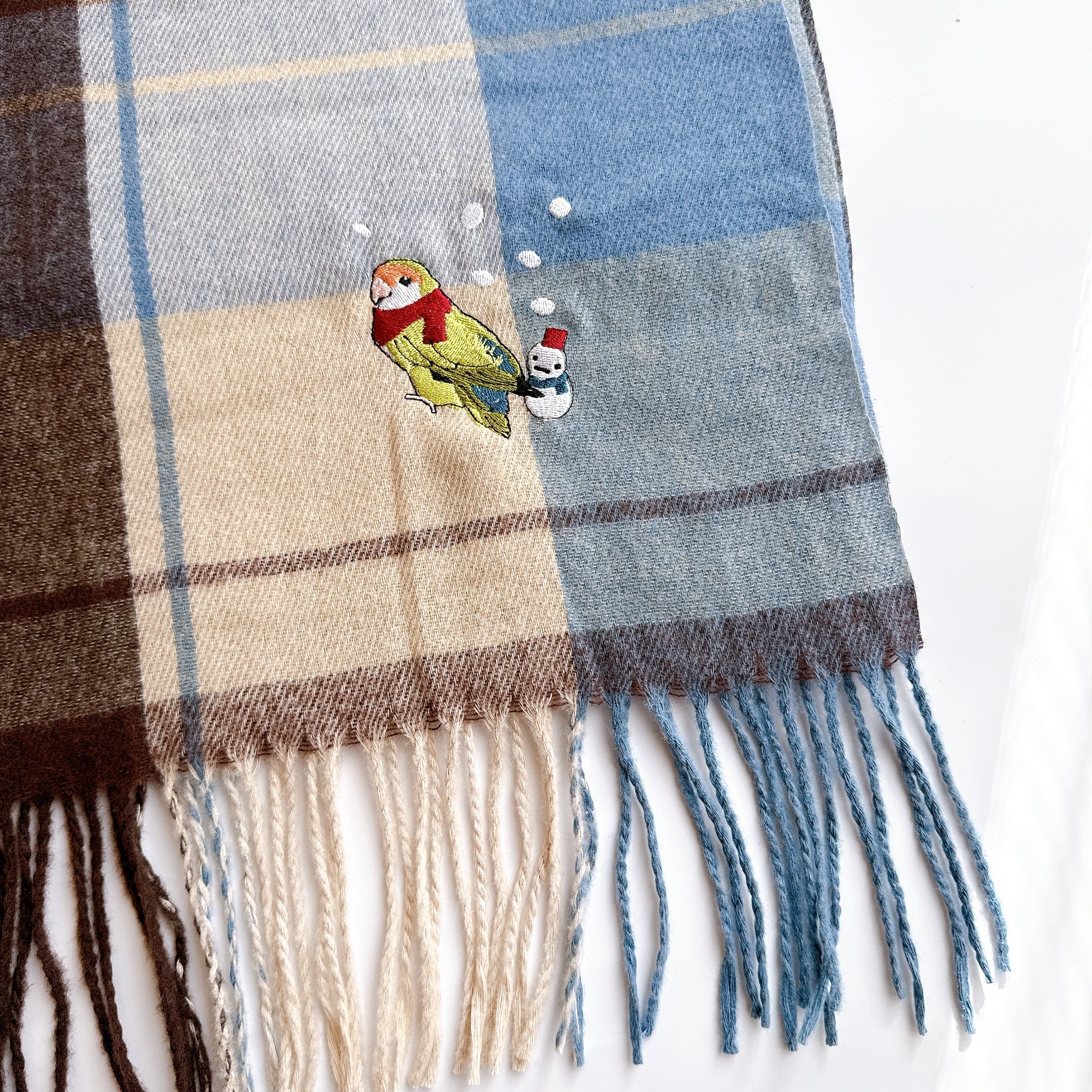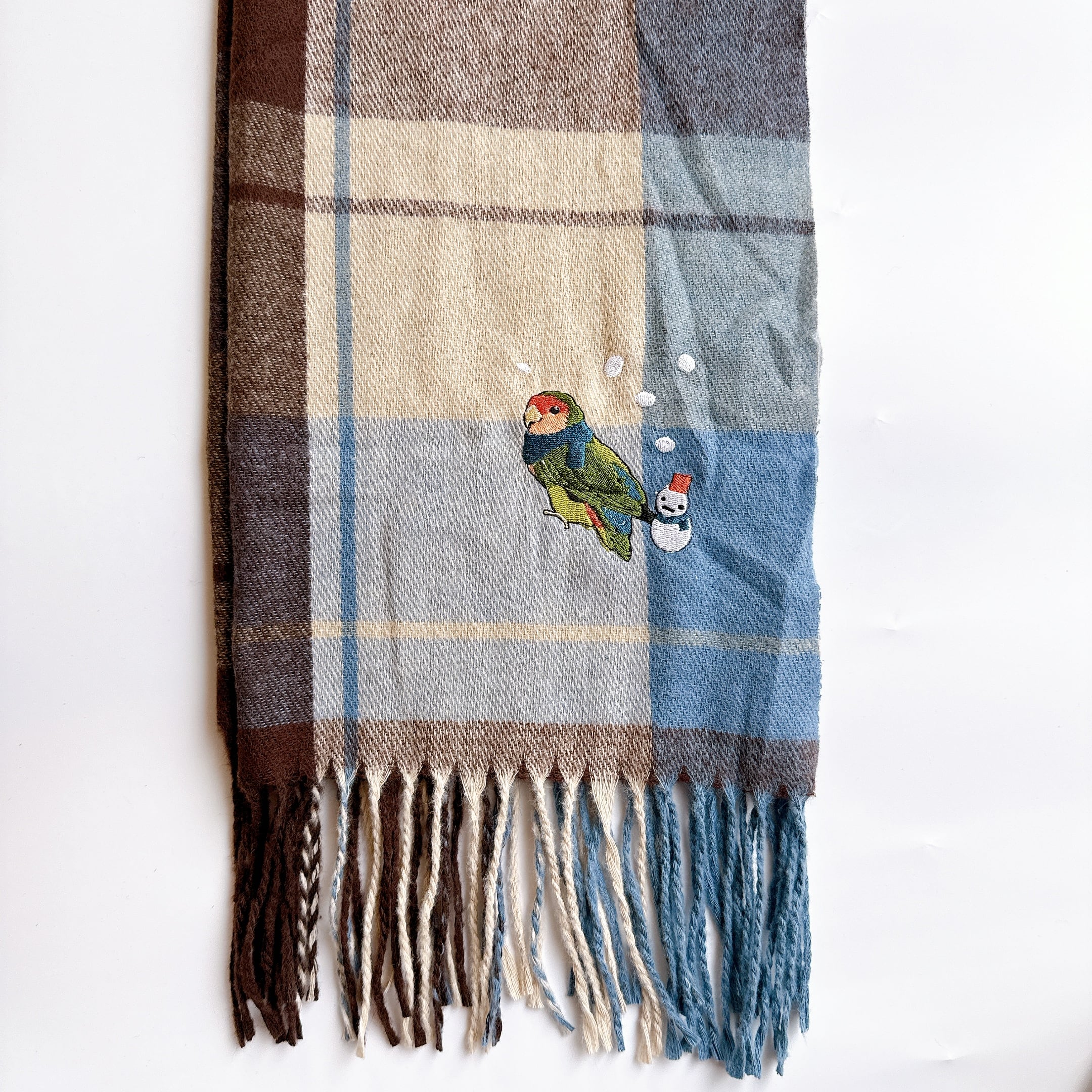 贈り物としても喜ばれること間違いなしの可愛いマフラーです。コザクラインコ好きな方へのプレゼントや、自分へのご褒美にもぴったりです♪