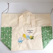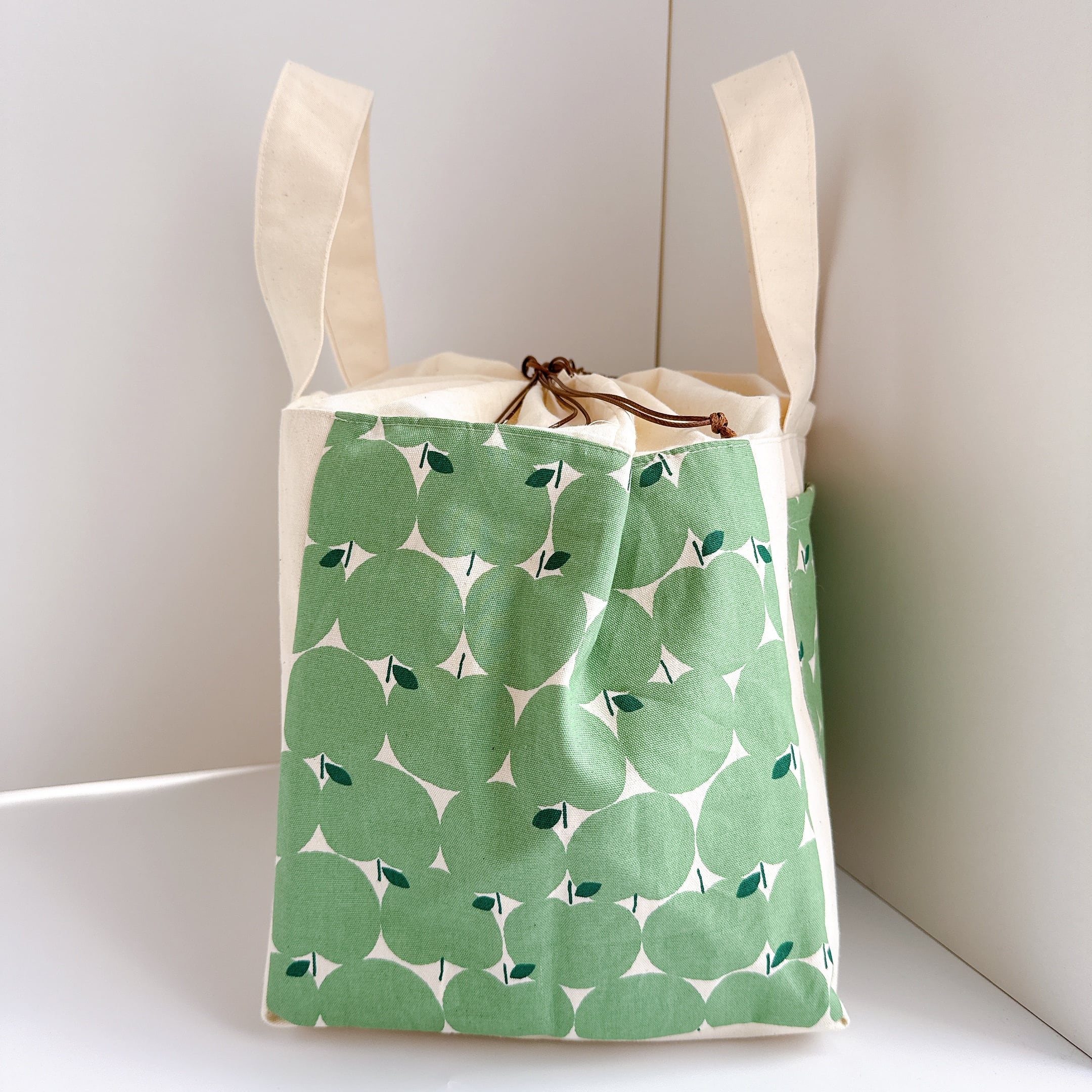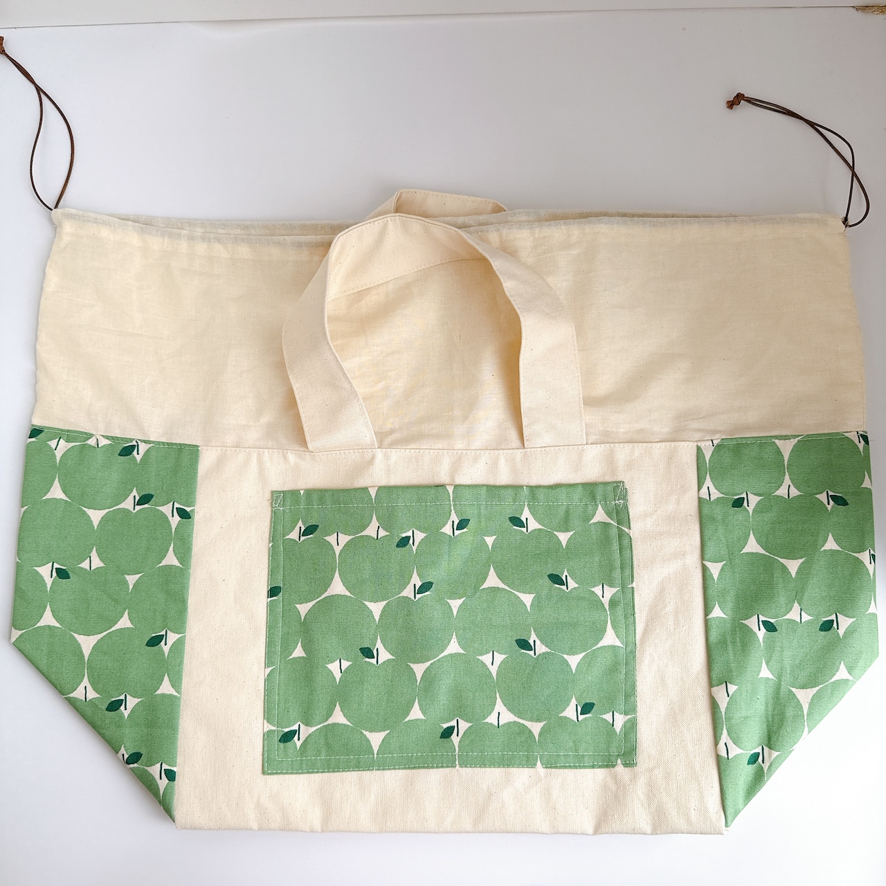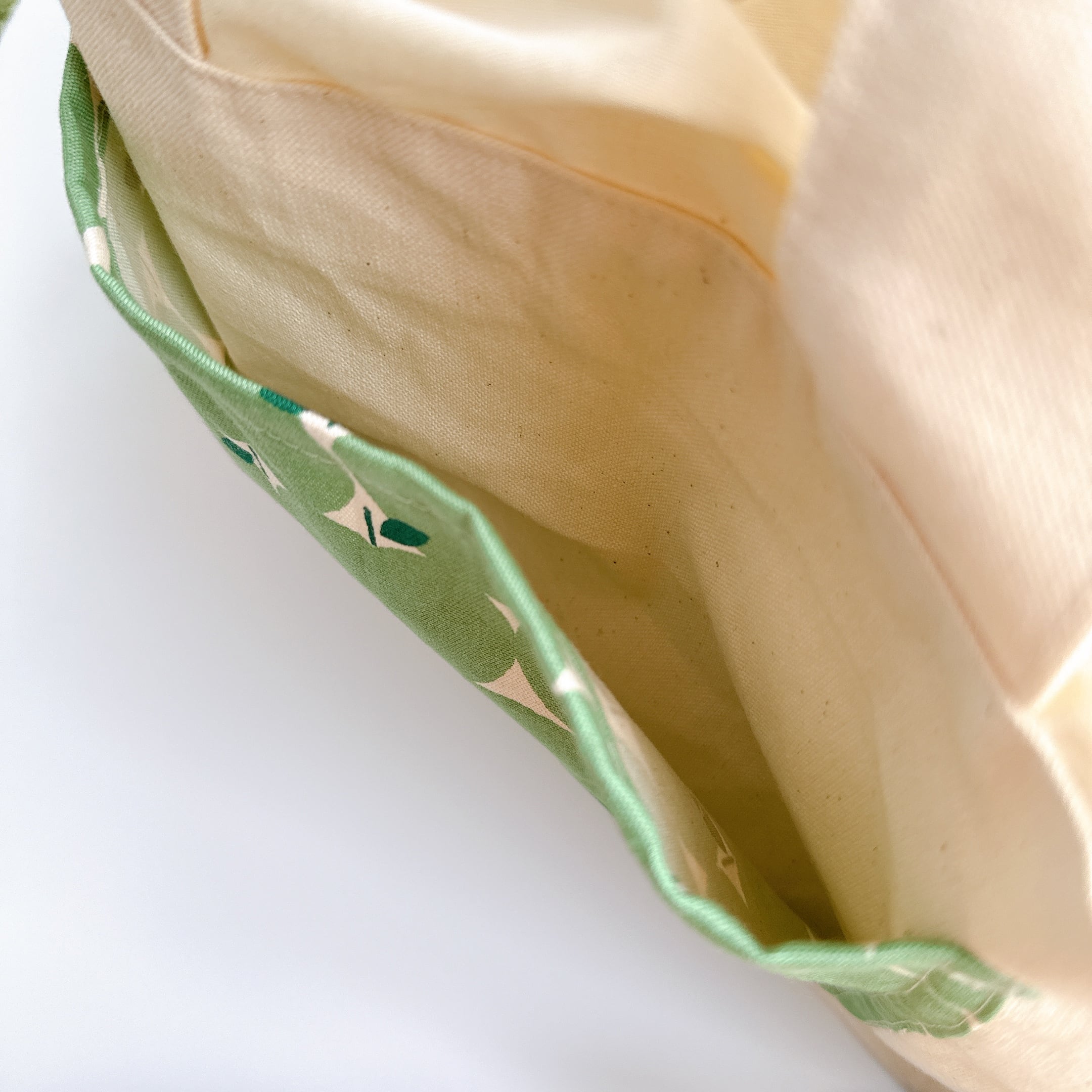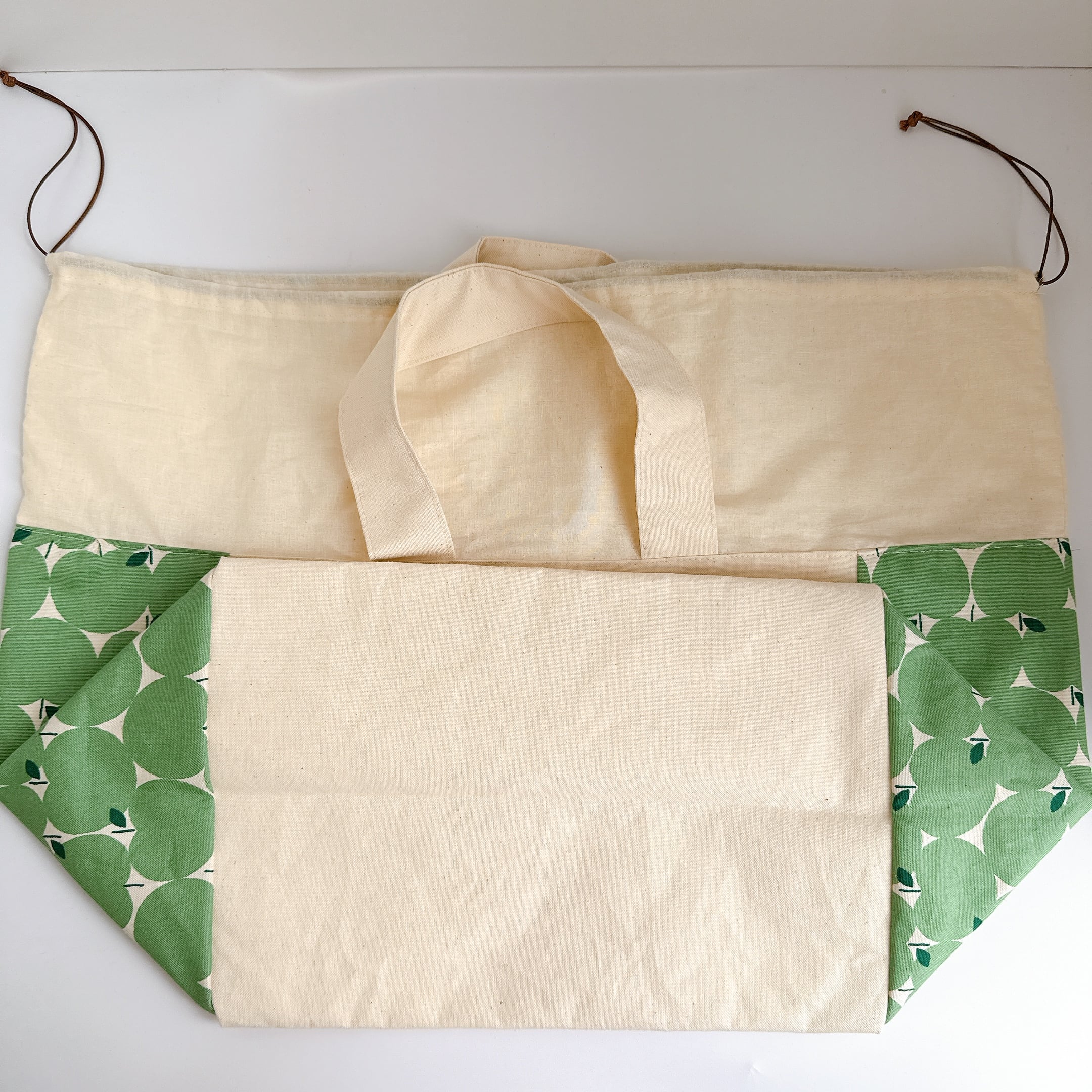 開口部の布は裏布と同じシーチングを使用しました。布が柔らかいので巾着が絞りやすく、小鳥さんの出し入れも安心で統一感も抜群です♪
