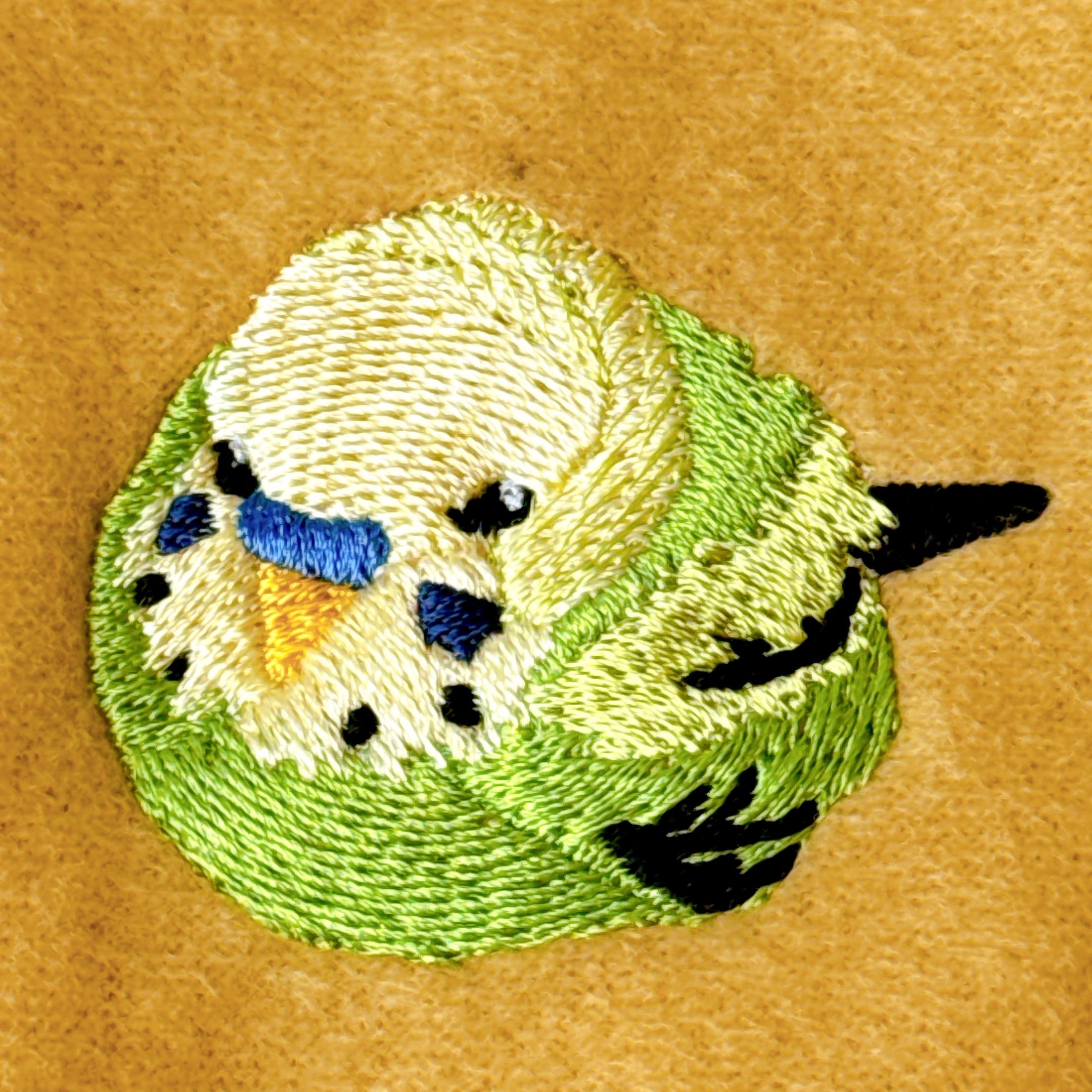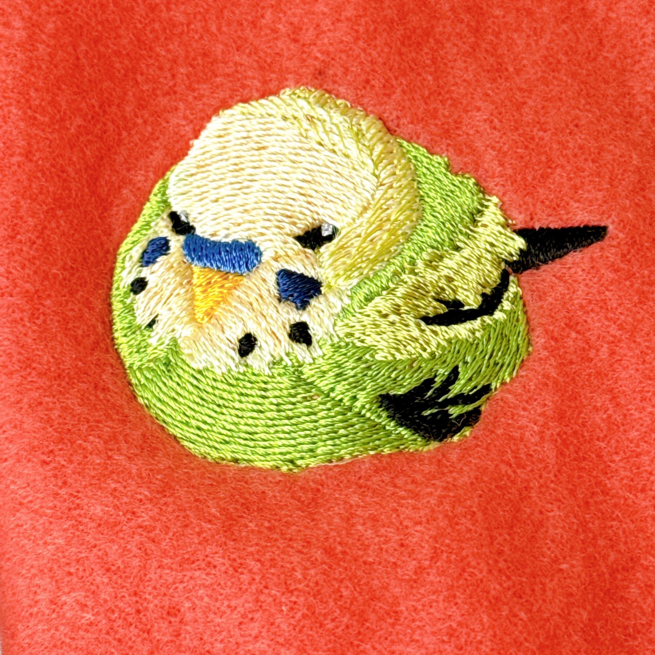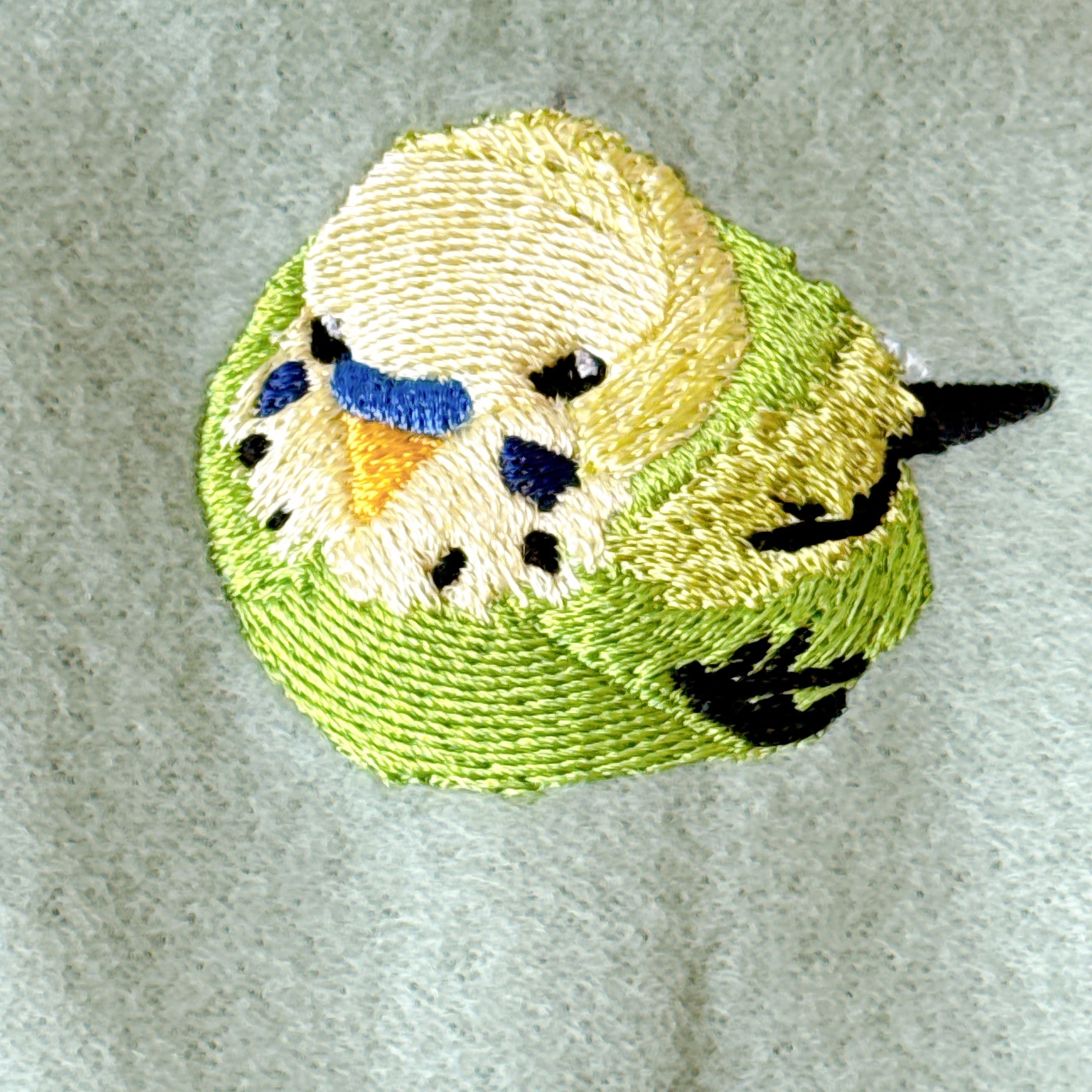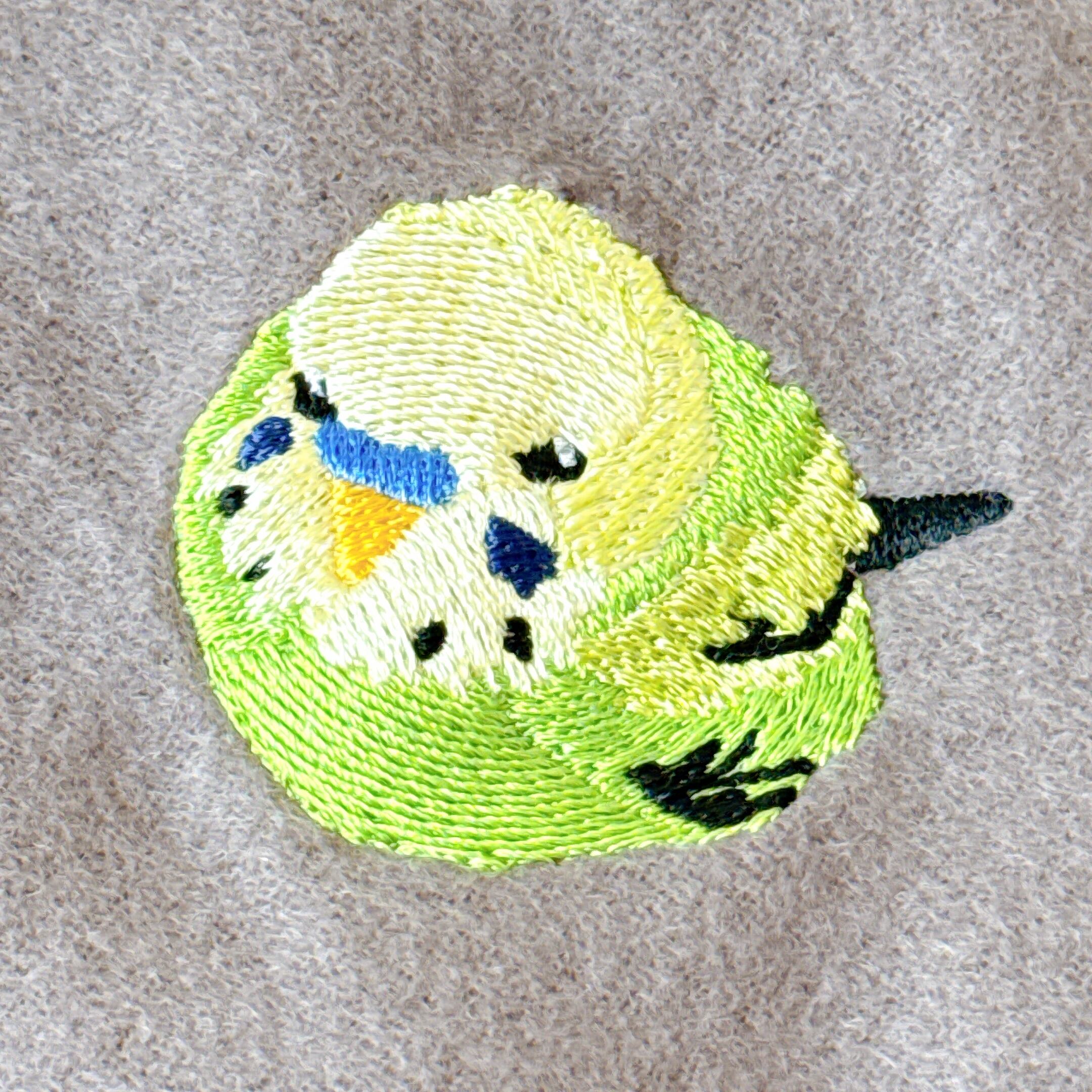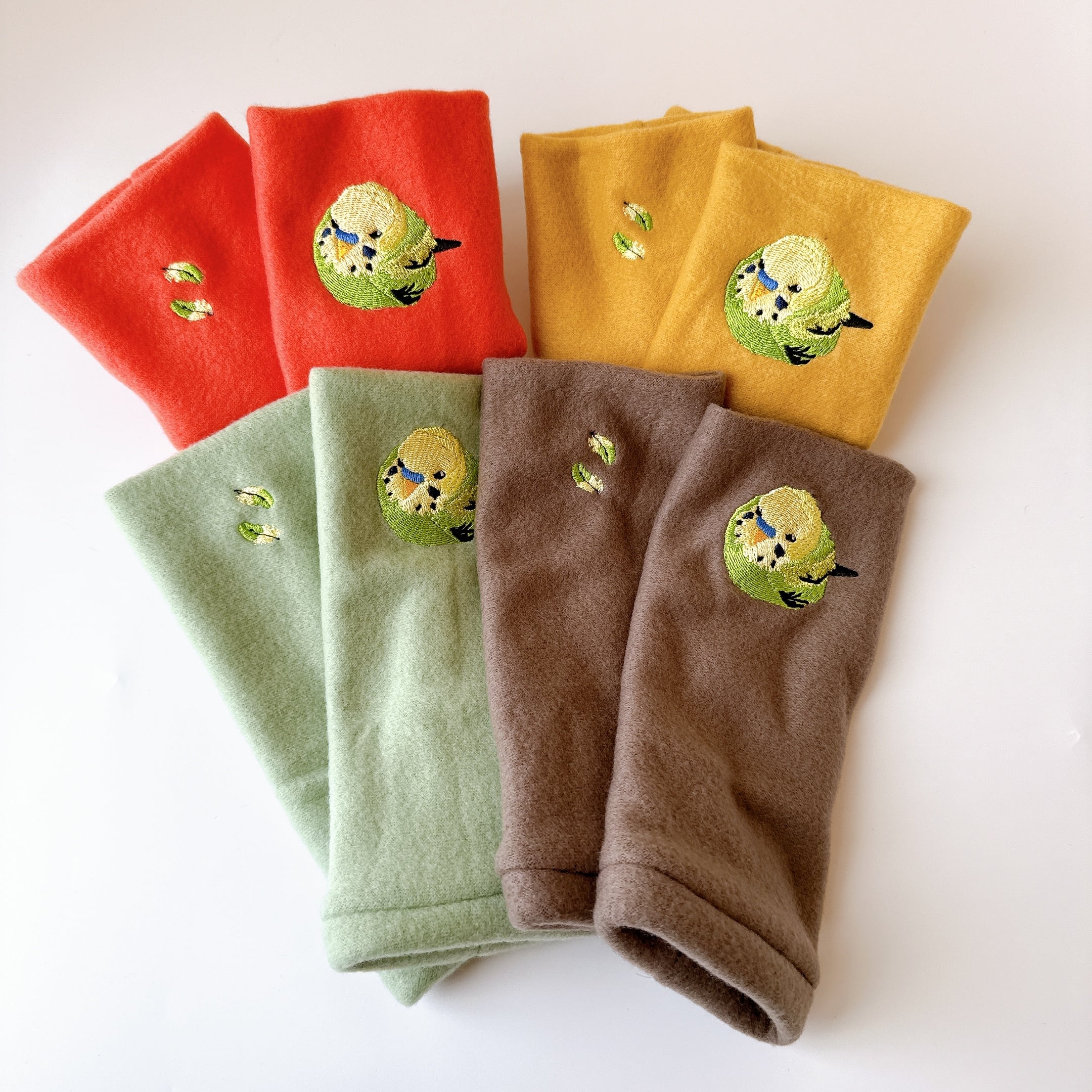 手の甲に座っているセキセイインコさんと目が合うようなデザインになっているハンド&リストウォーマーです^ ^