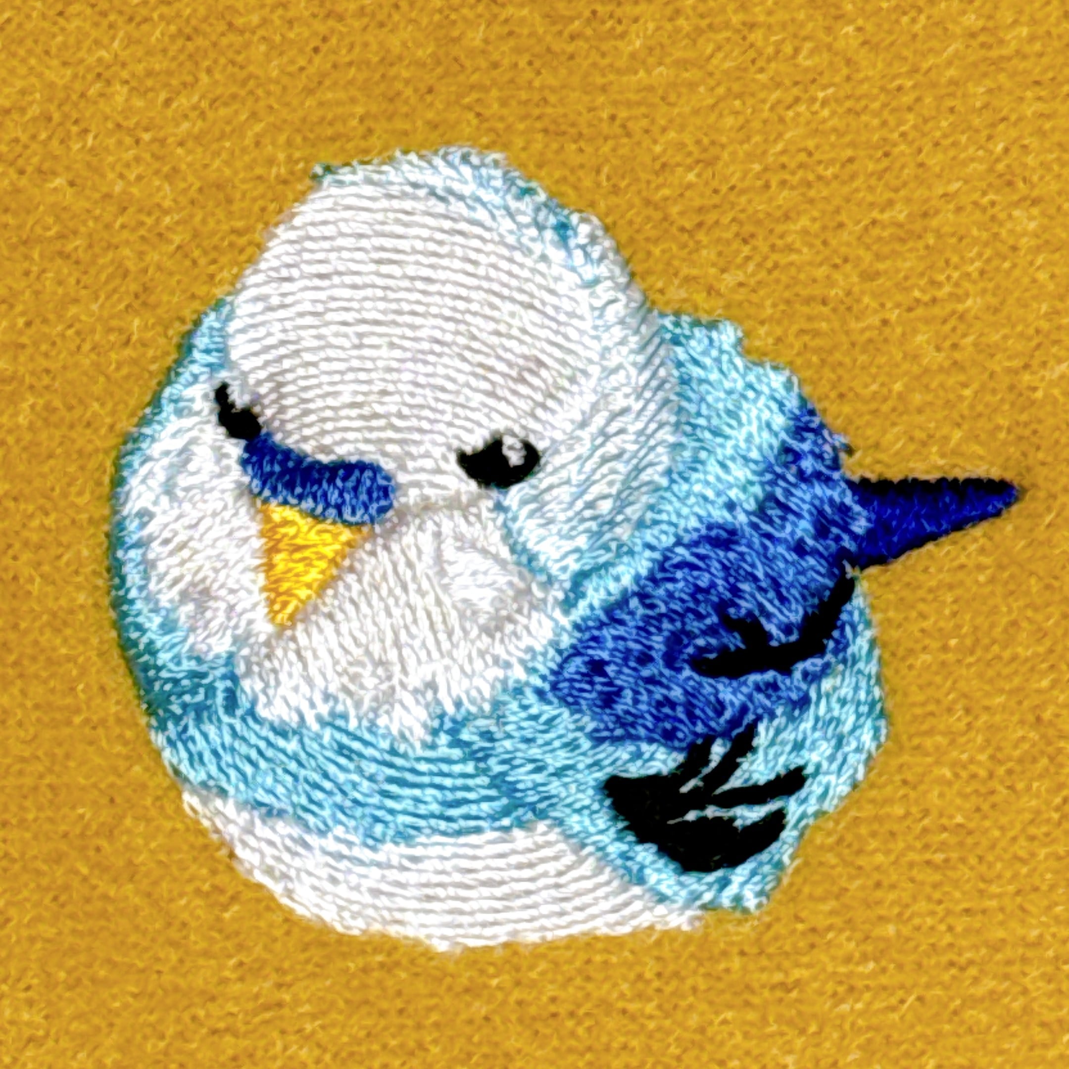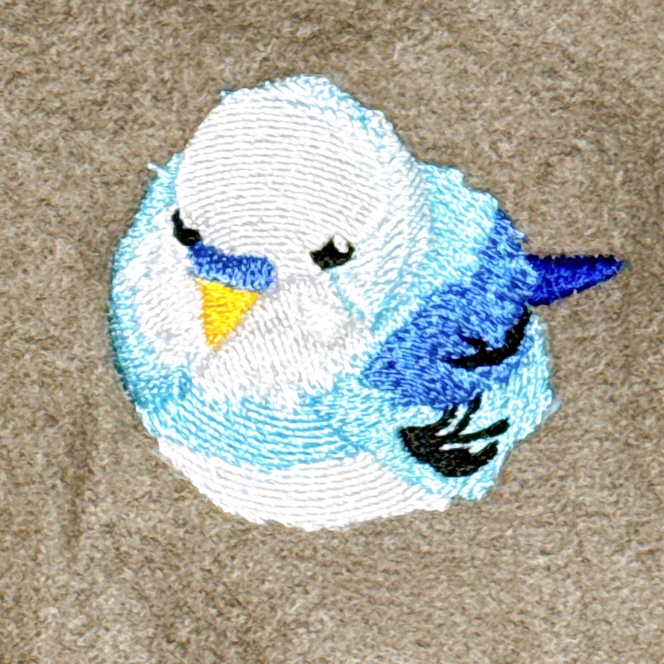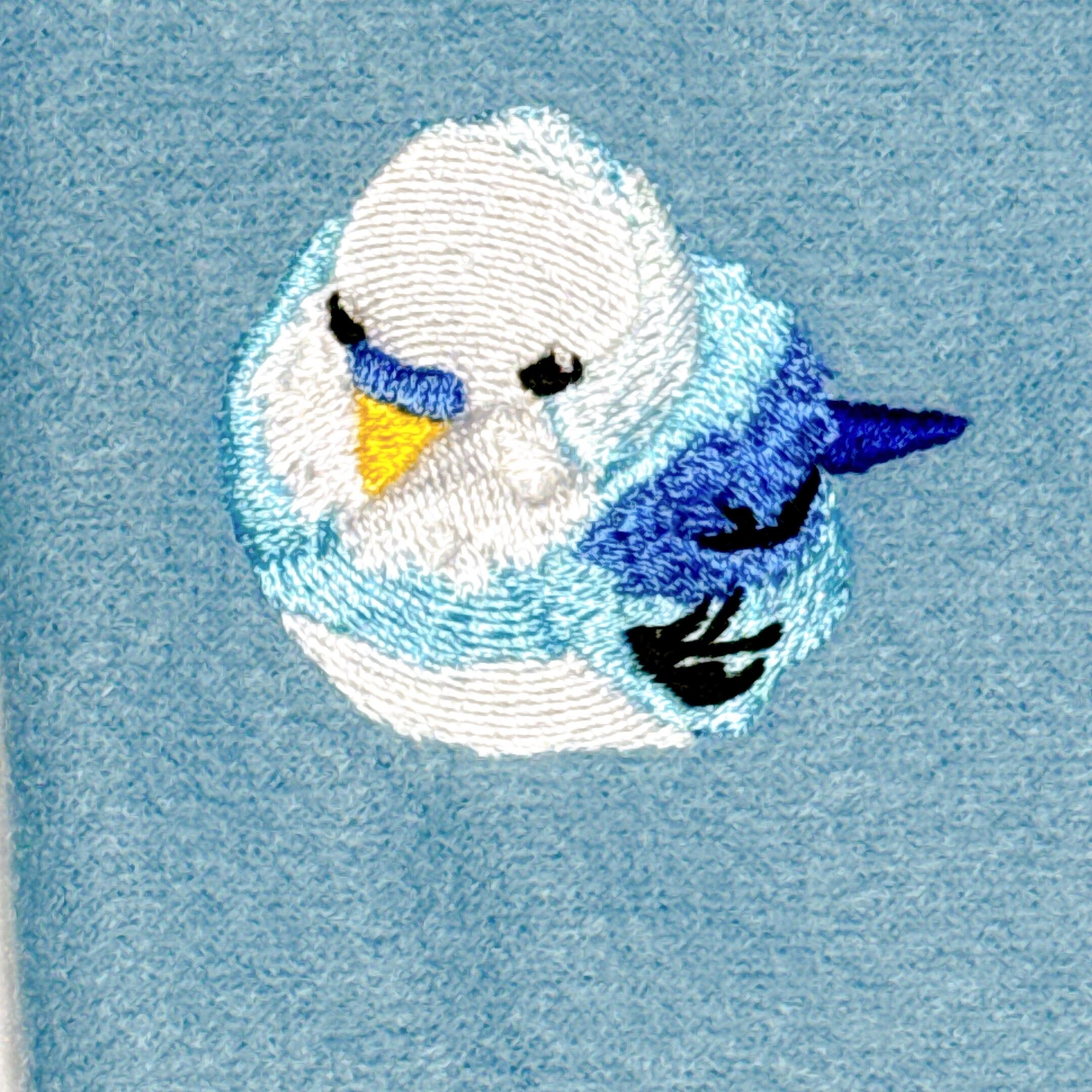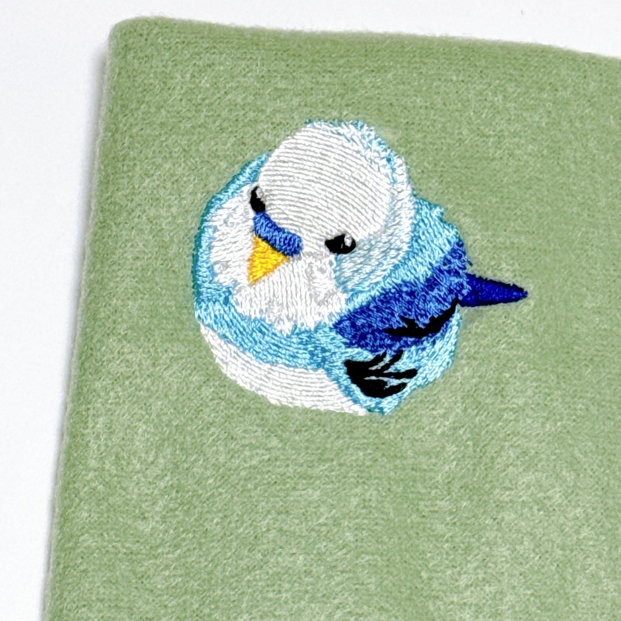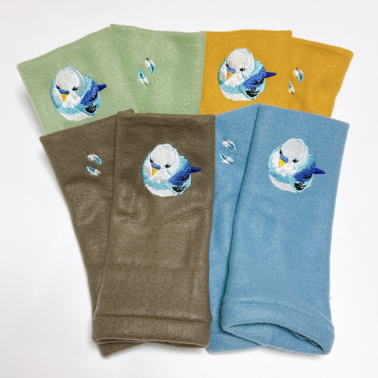 手の甲に座っているセキセイインコさんと目が合うようなデザインになっているハンド&リストウォーマーです^ ^