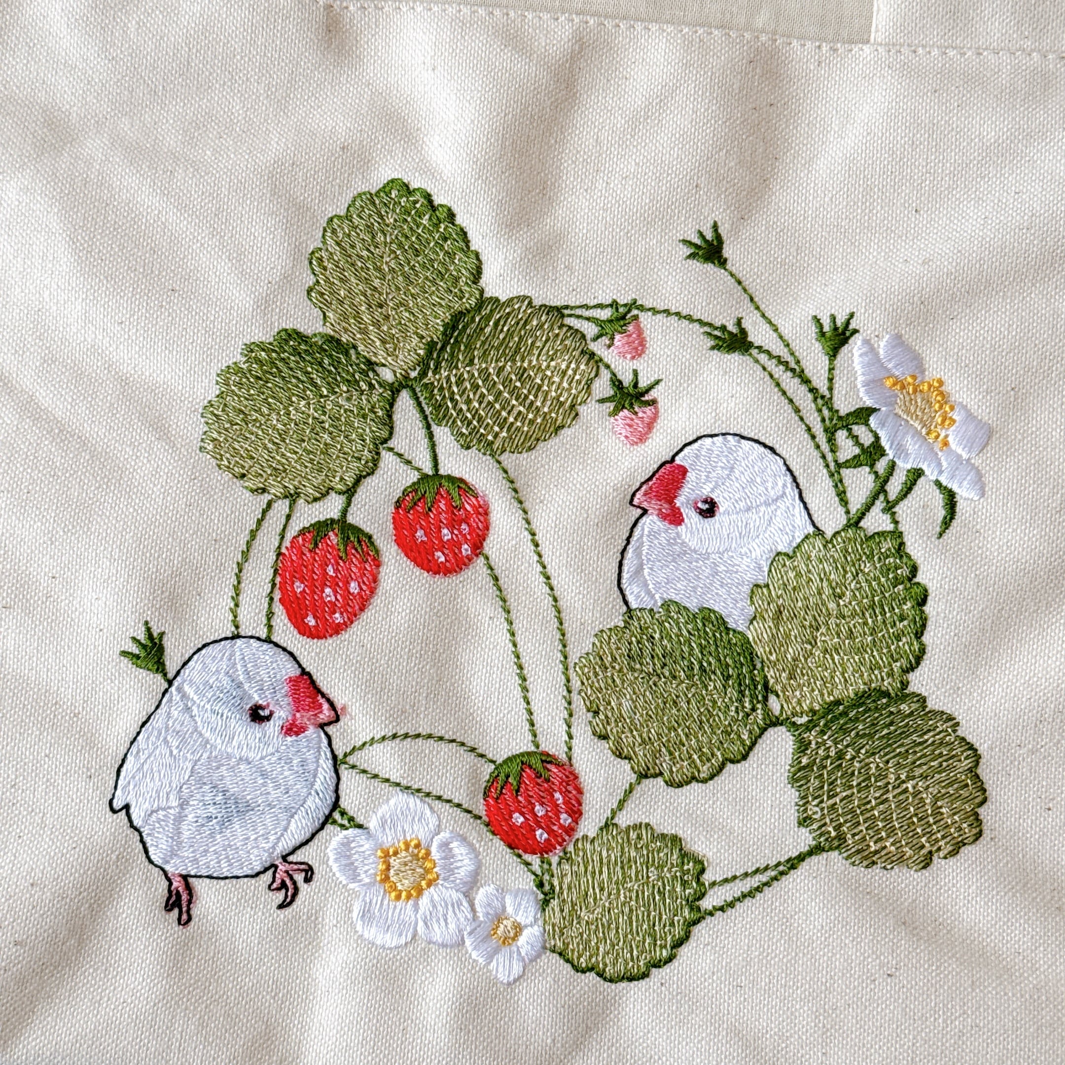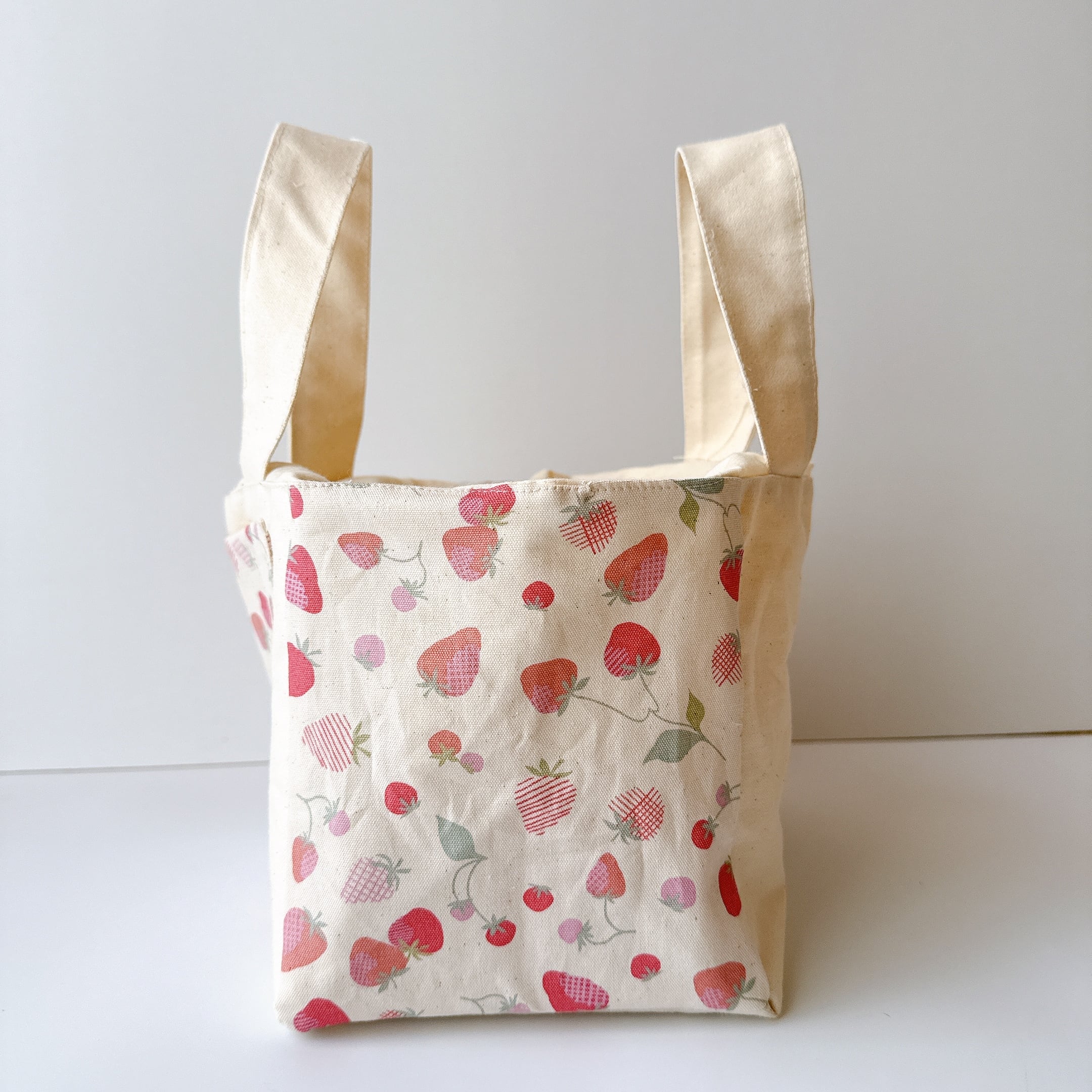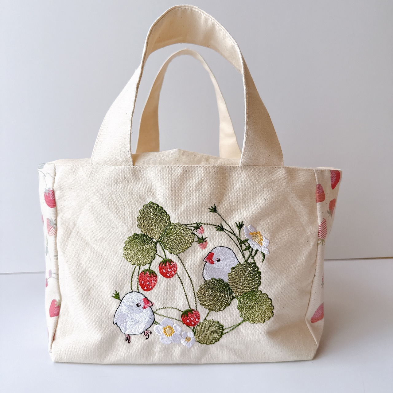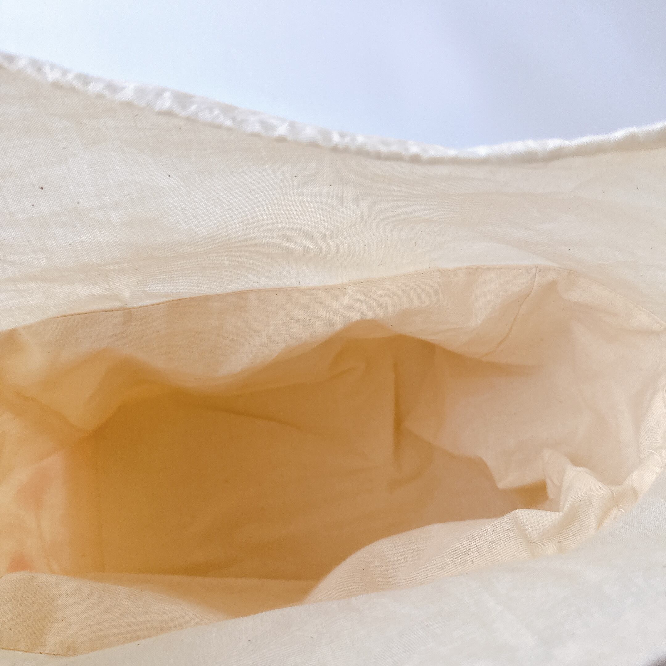 開口部の布は裏布と同じシーチングを使用しました。布が柔らかいので巾着が絞りやすく、小鳥さんの出し入れも安心で統一感も抜群です♪