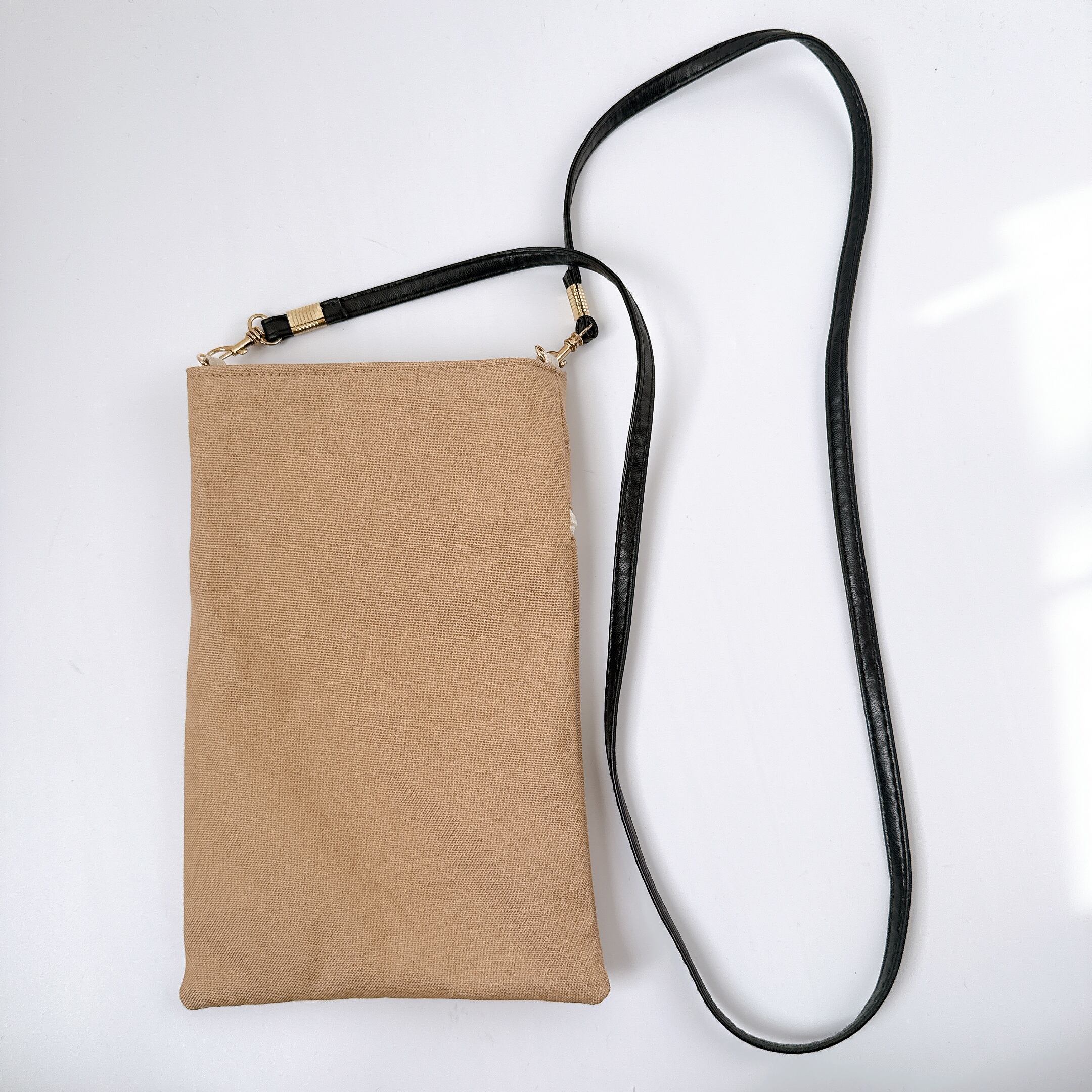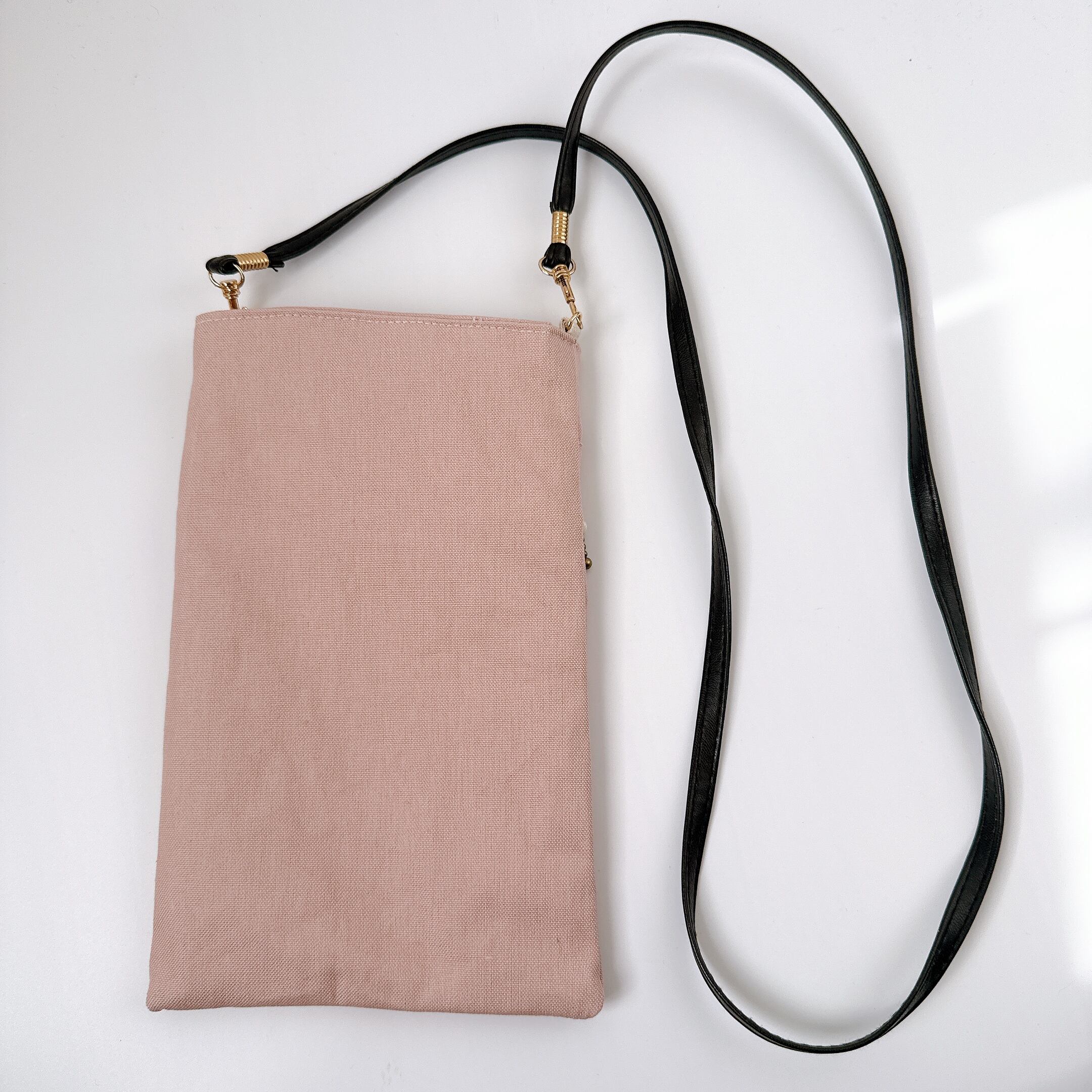 すっきり見えるように縦長のポシェットです。