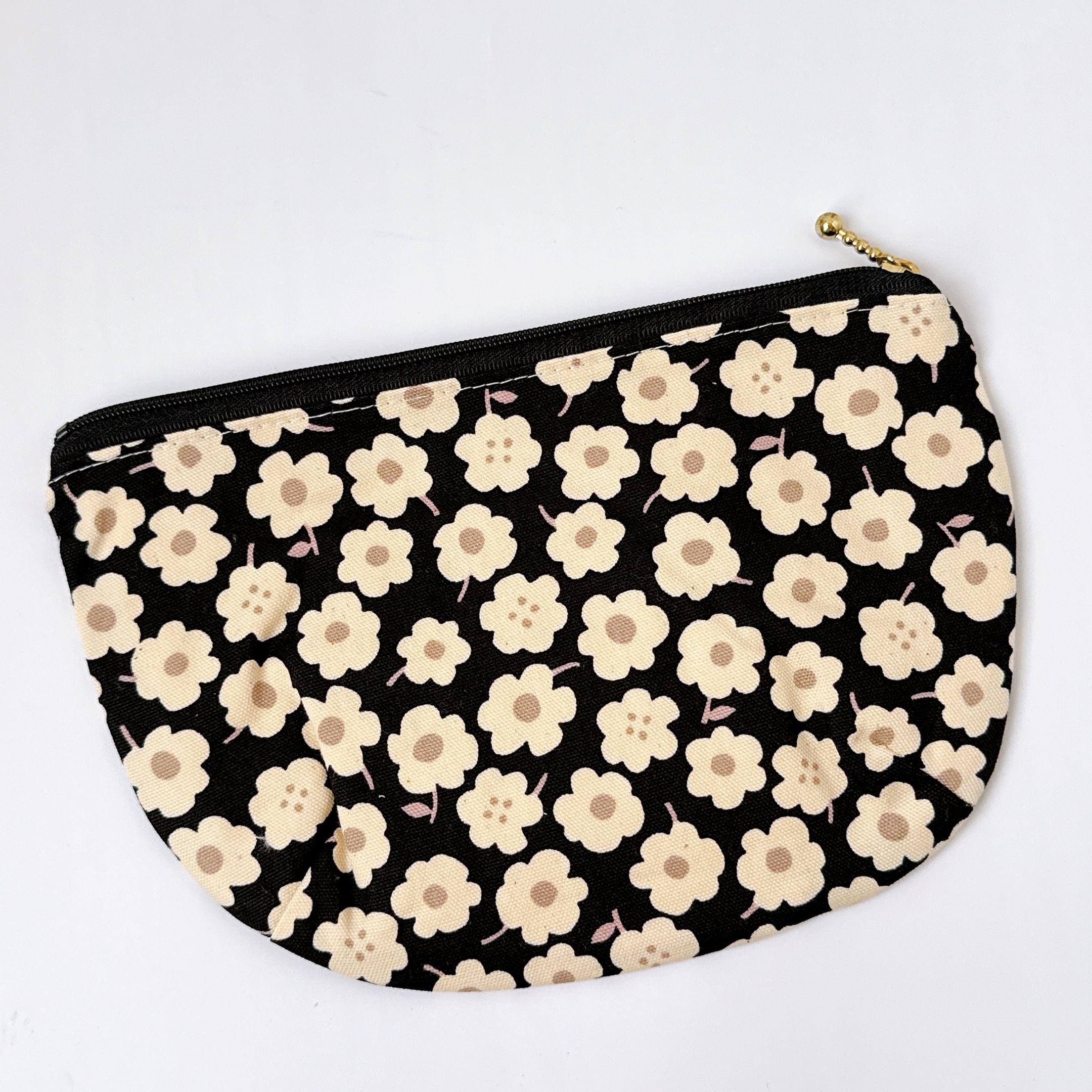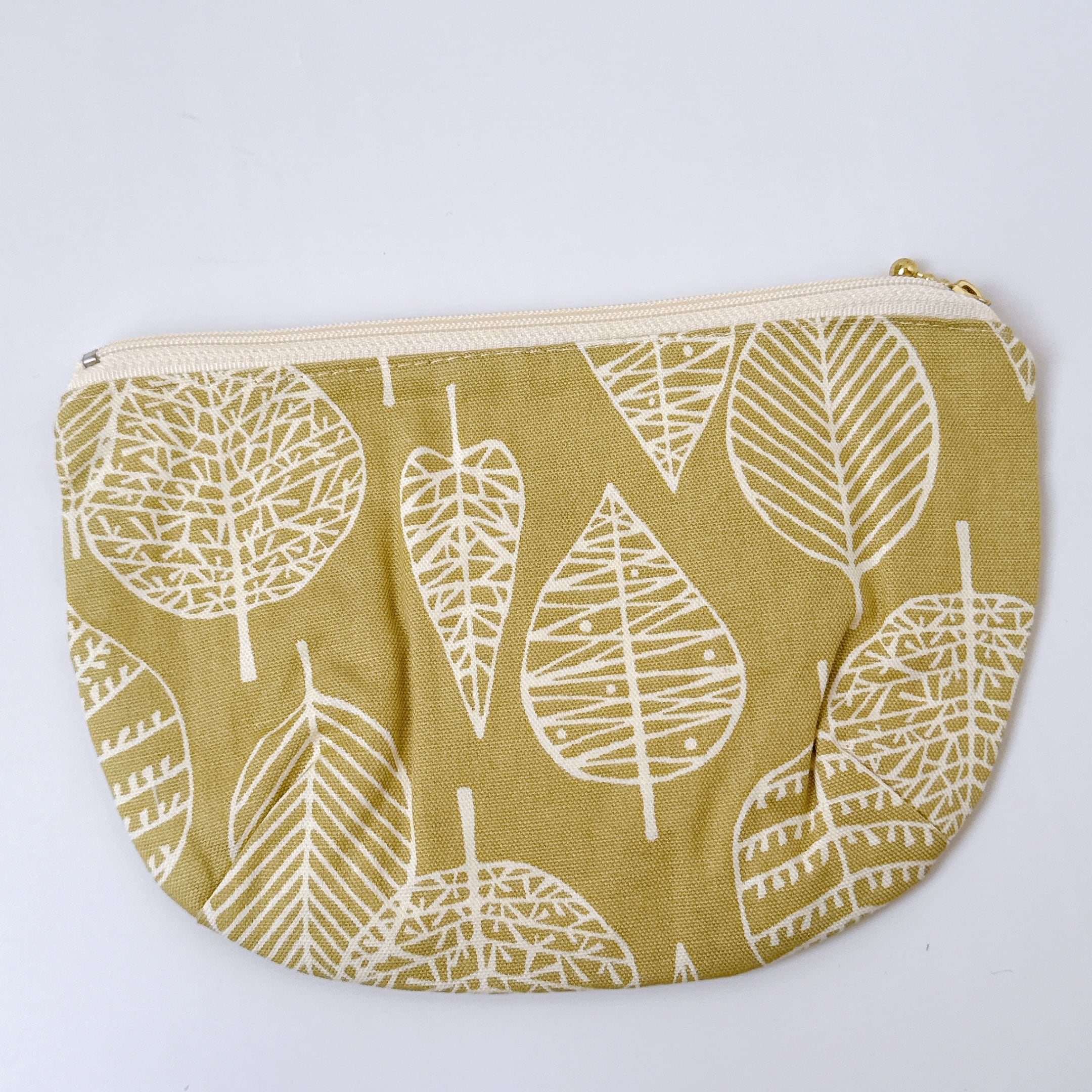 通帳がゆったりと入るポーチです。開口部は20㎝ファスナーを使用して底にはタックをとっていますので中身が確認しやすく、お化粧品を入れるのにもおススメです♪