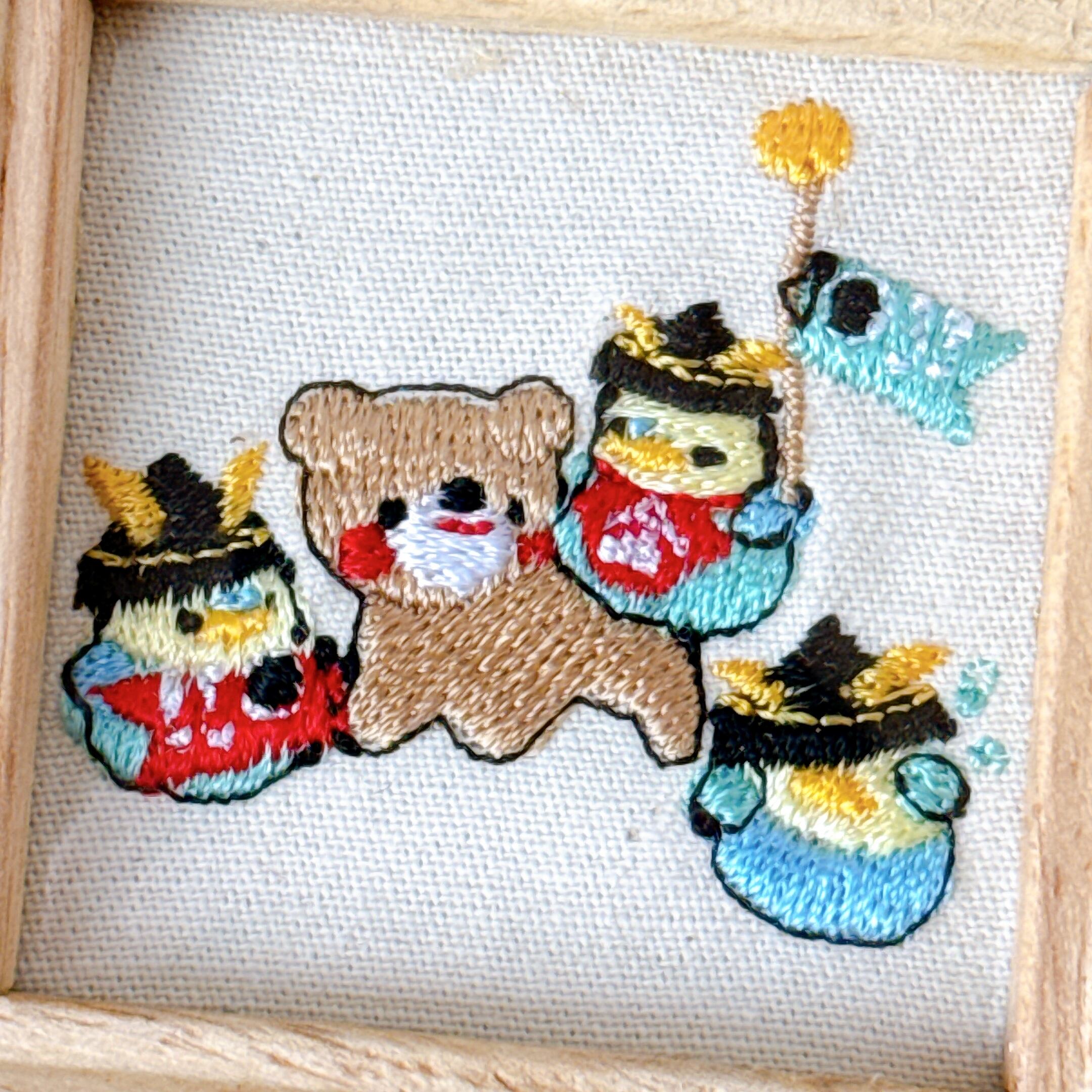 兜を被ったセキセイさん達の子供の日ミニ額です。
