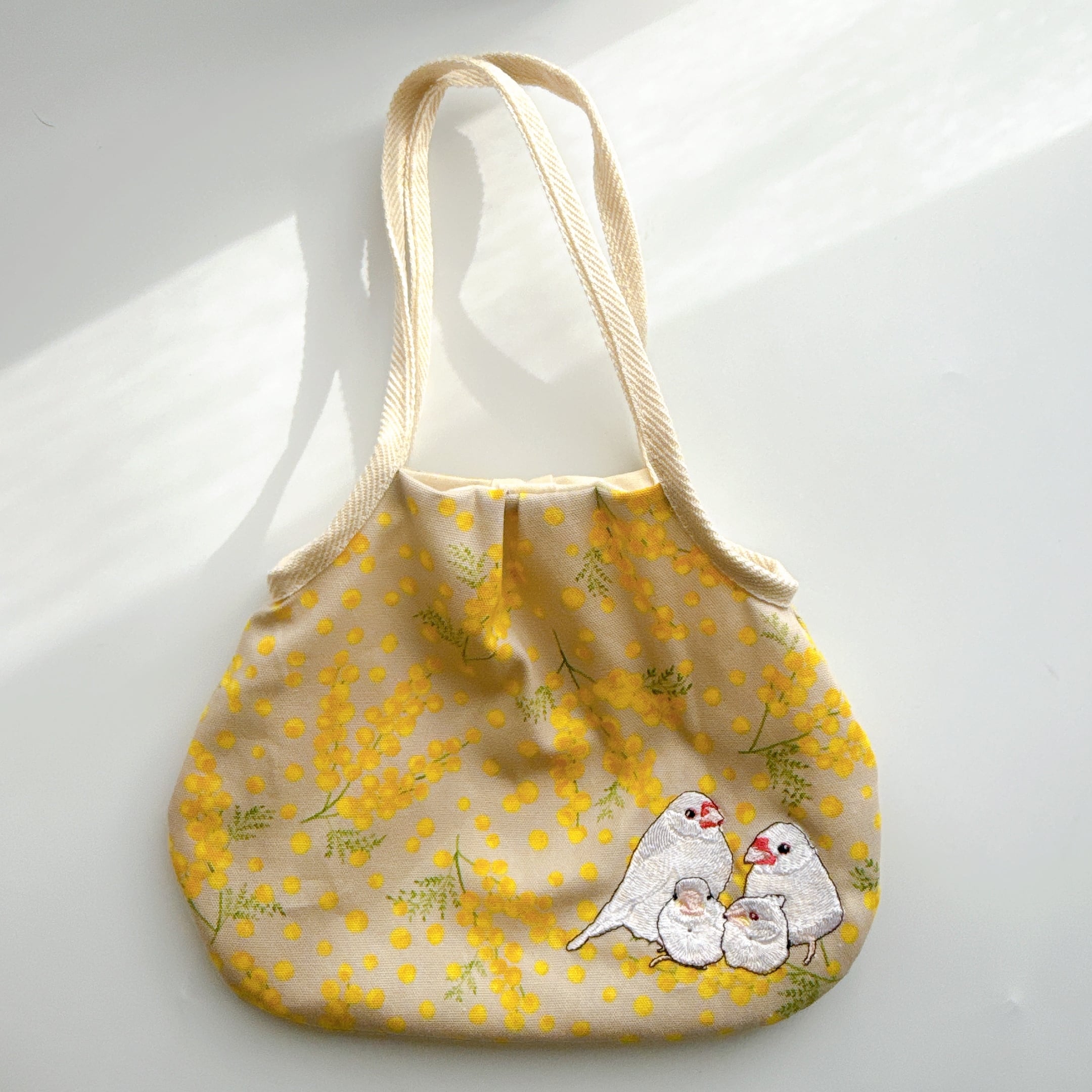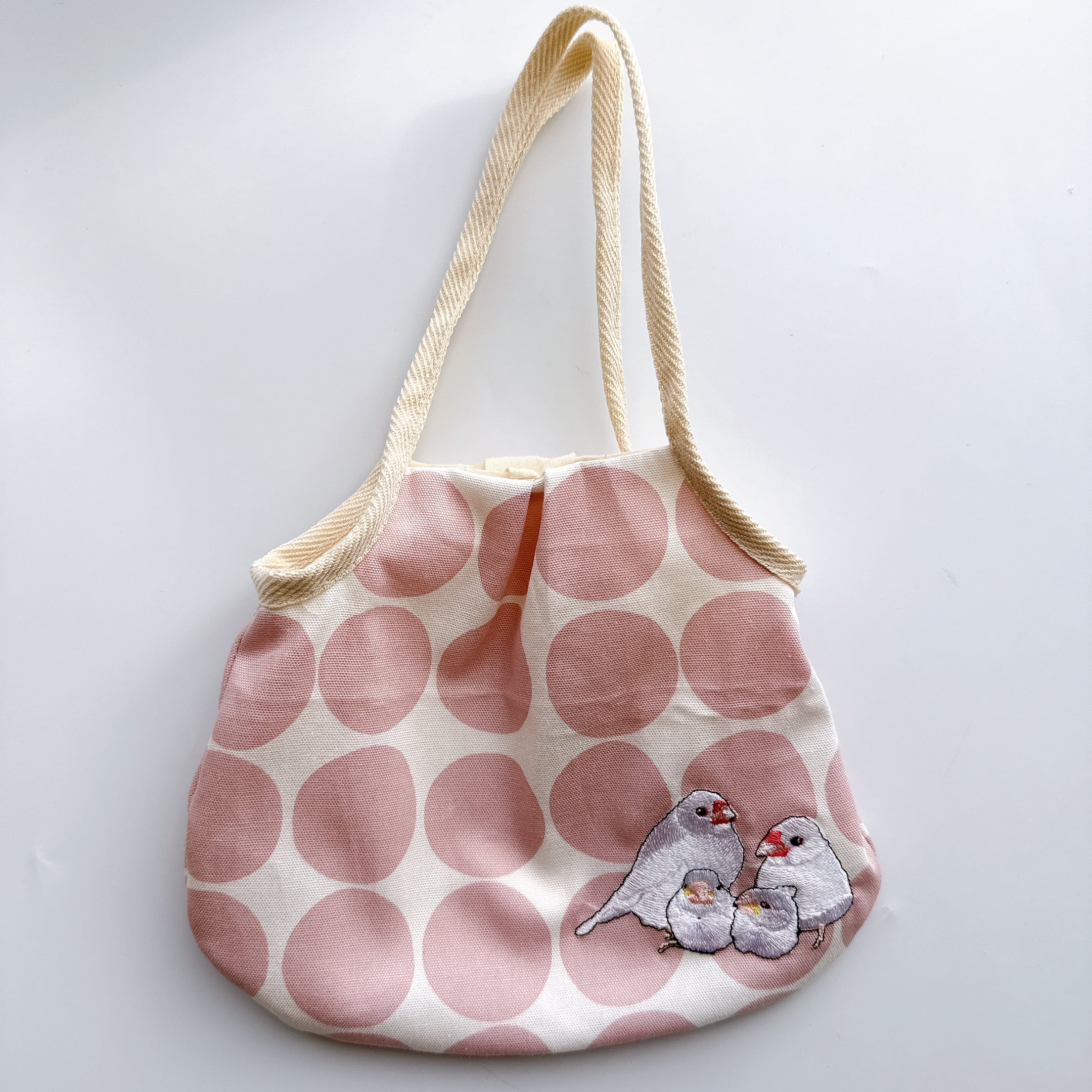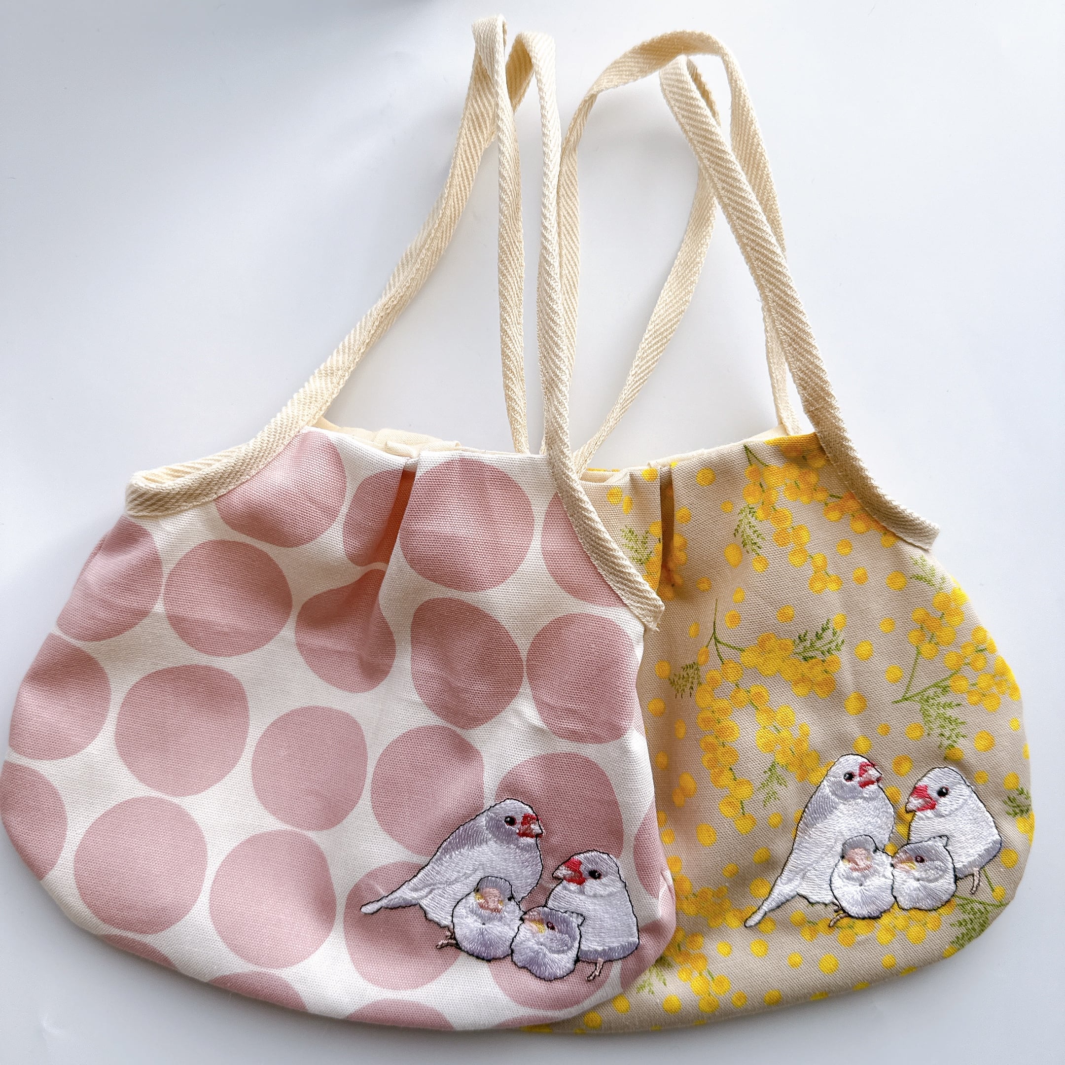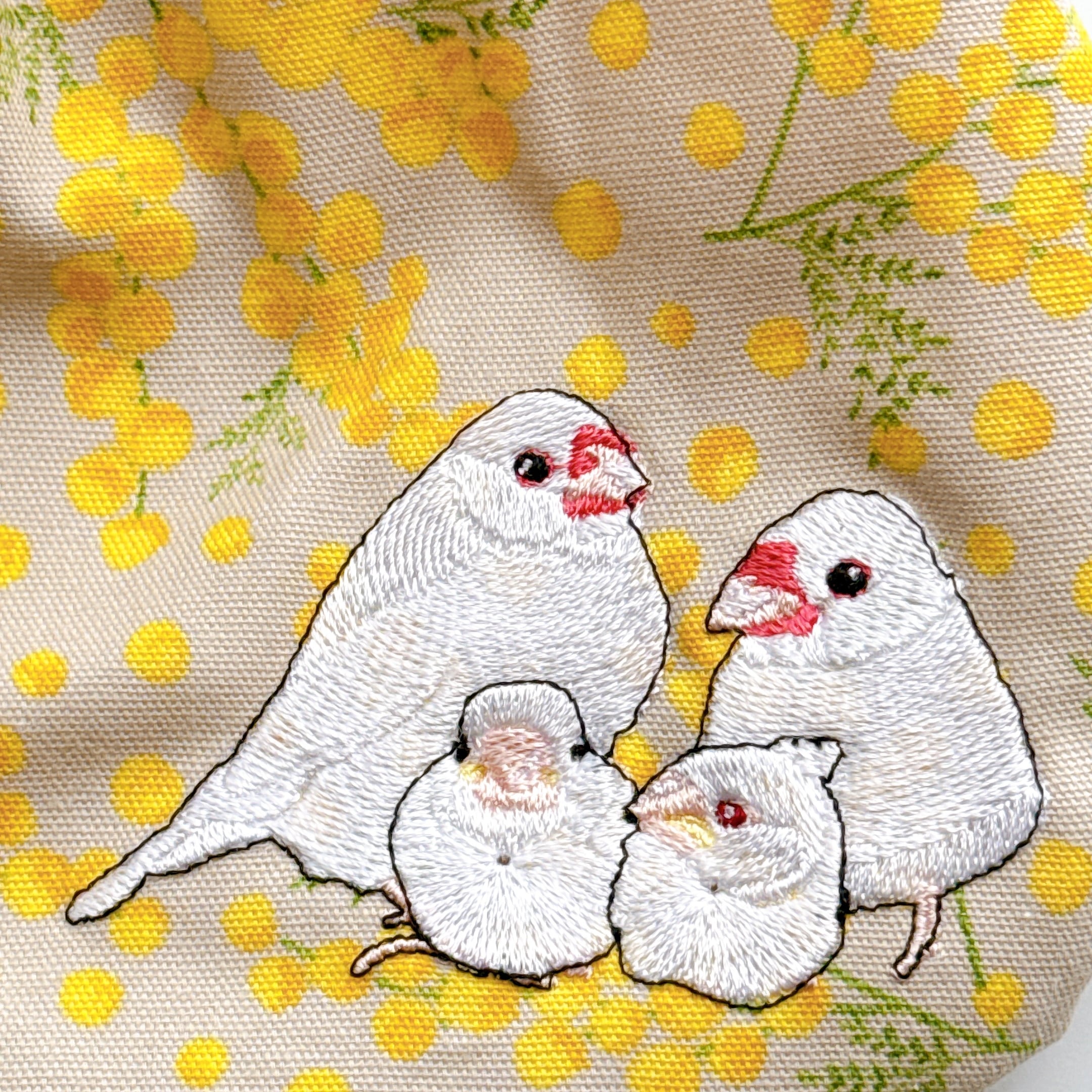 白文鳥親子のミニグラニーバックです。