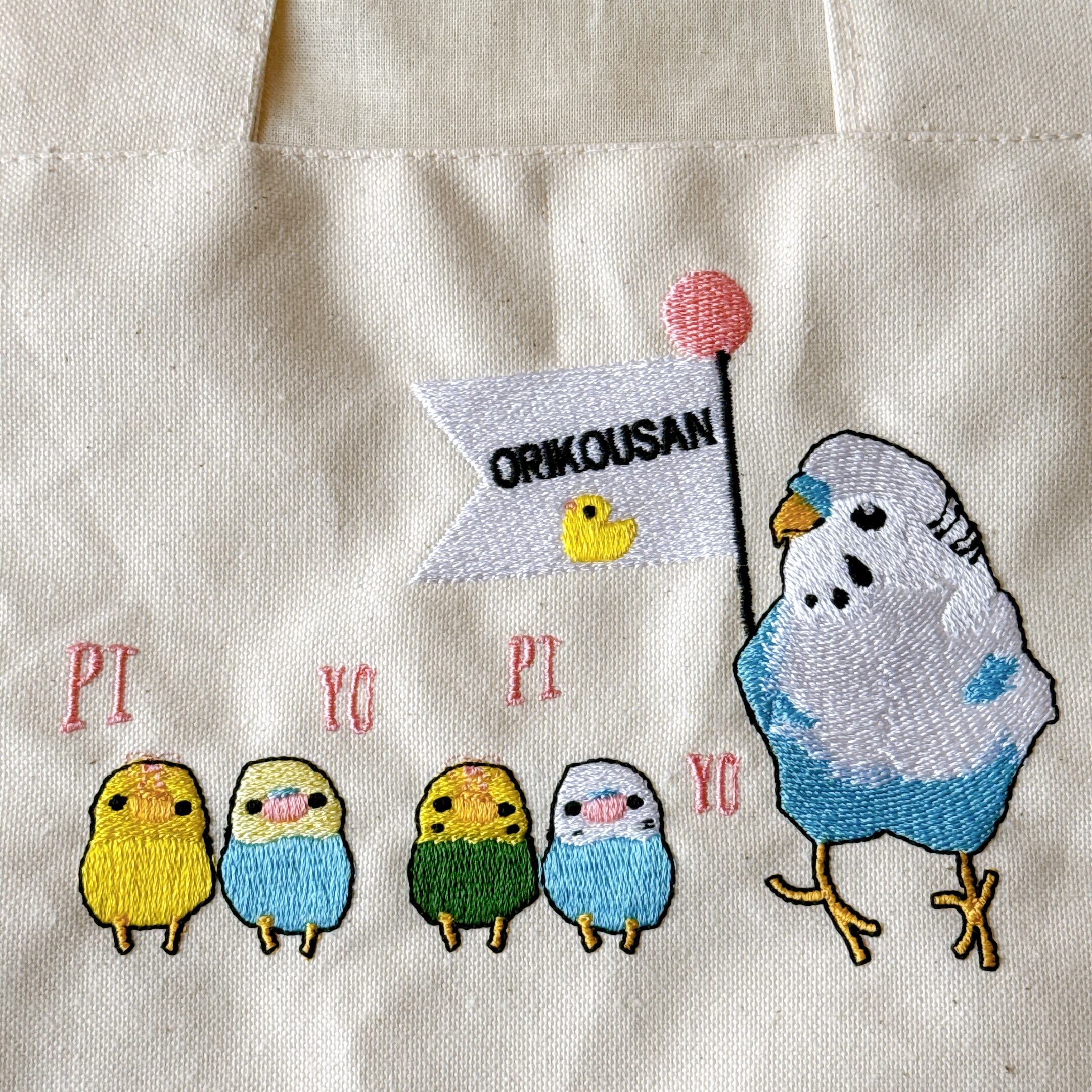 開口部の布は裏布と同じシーチングを使用しました。布が柔らかいので巾着が絞りやすく、小鳥さんの出し入れも安心で統一感も抜群です♪