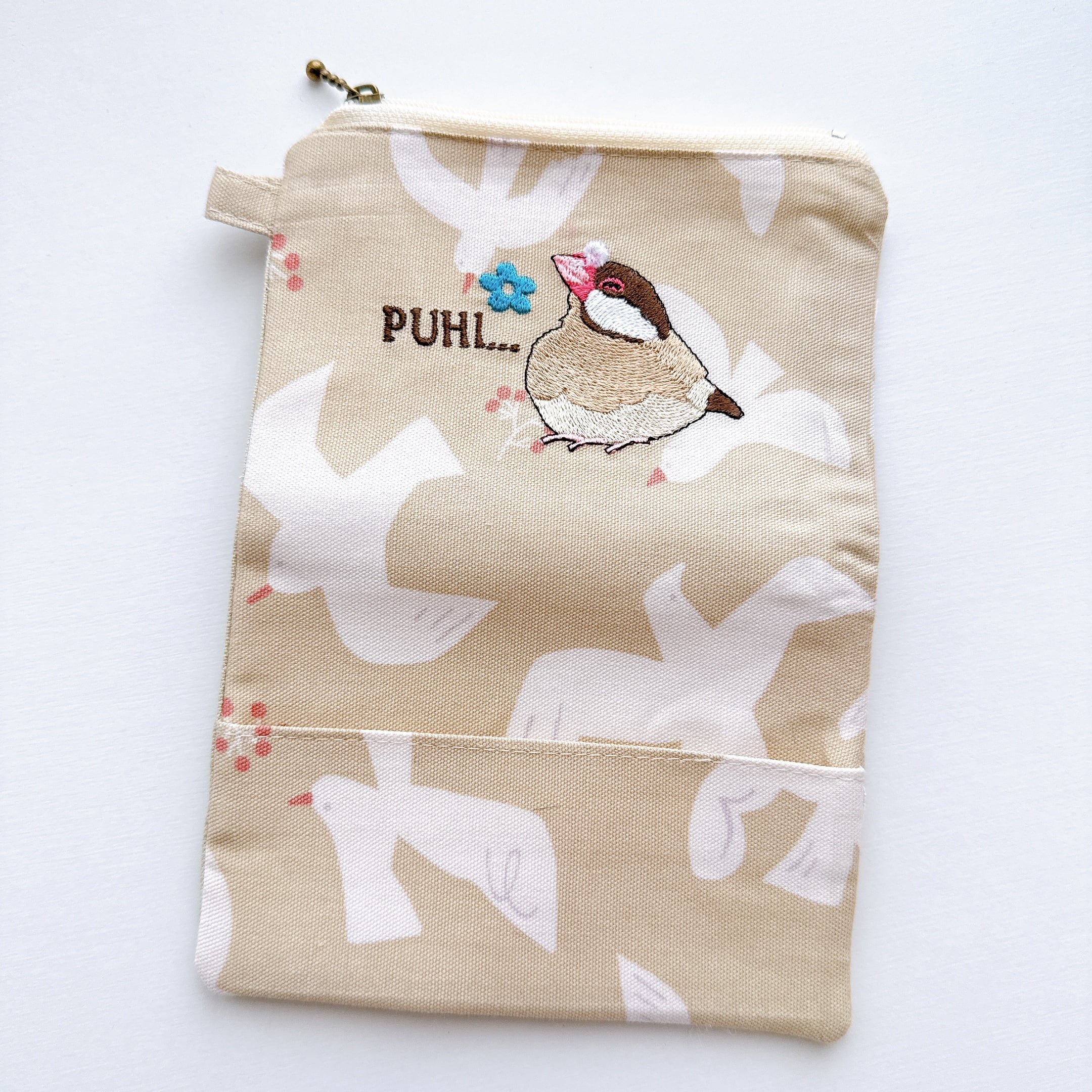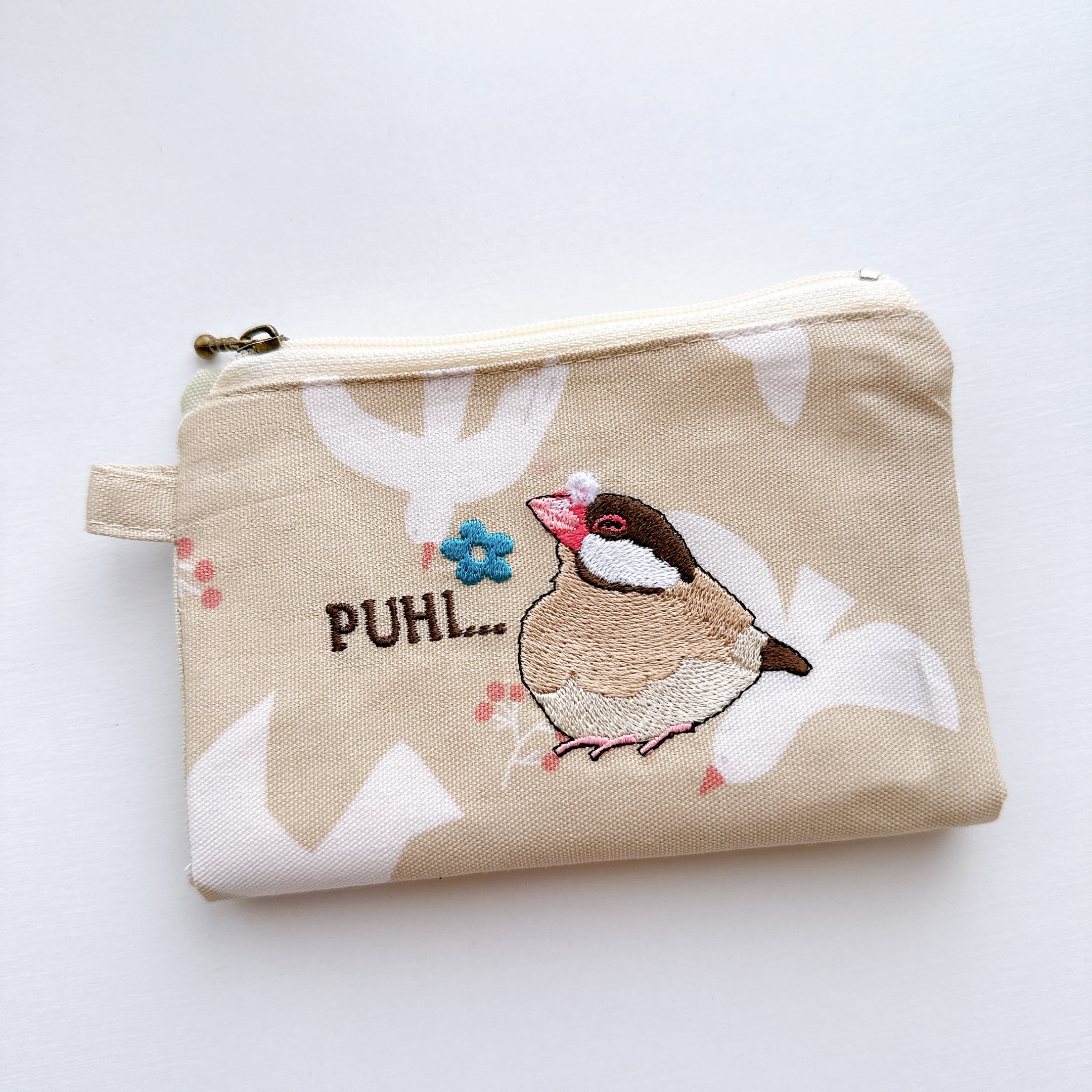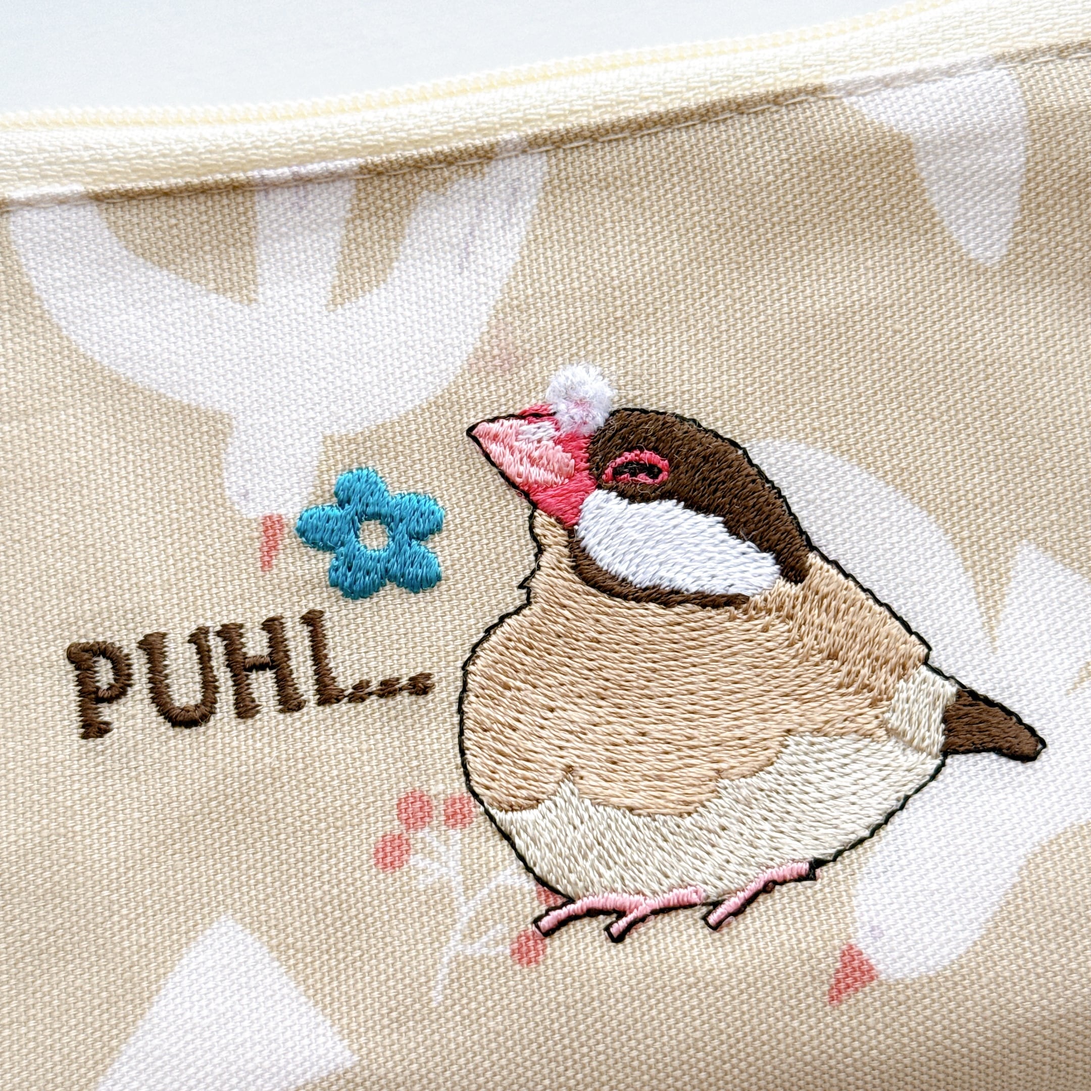 綿毛で鼻をぷひっと鳴らしている文鳥さんを刺繍しています⭐︎
