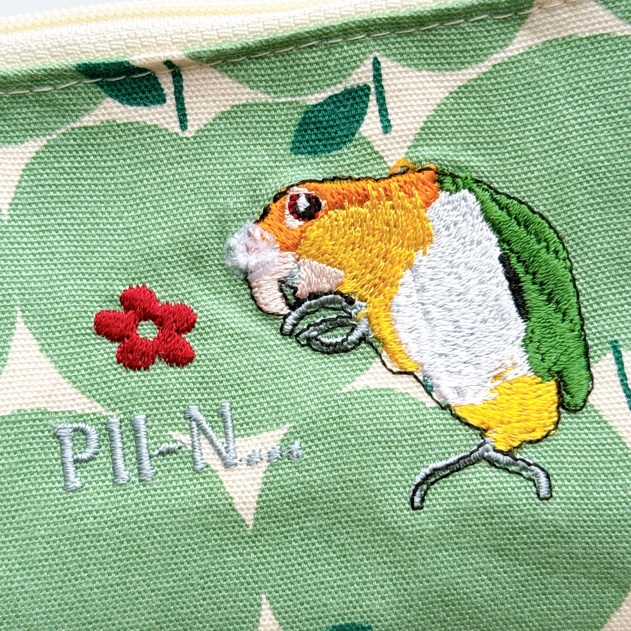綿毛が気になるシロハラインコさんを刺繍しています⭐︎