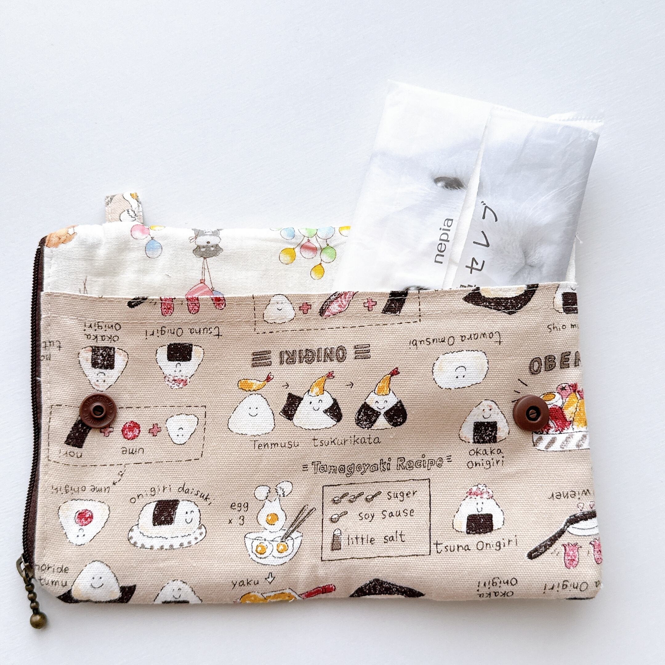 ティッシュケース部分の裏布は無地のシーチングです。