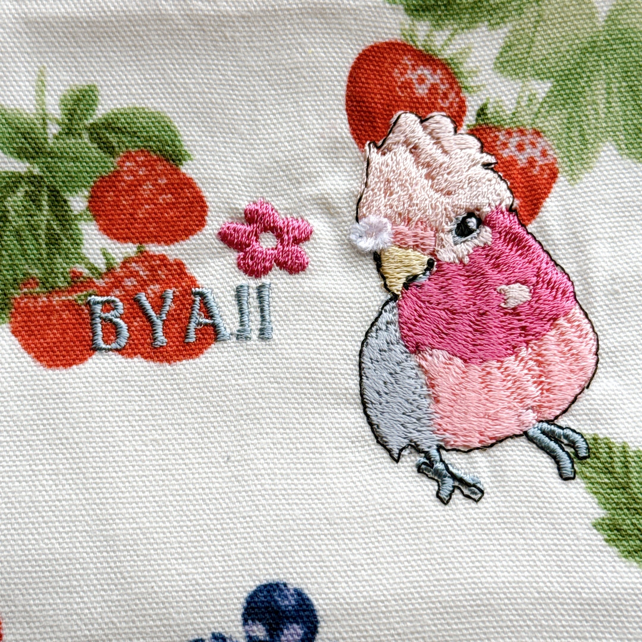 綿毛が気になるモモイロインコさんを刺繍しています⭐︎