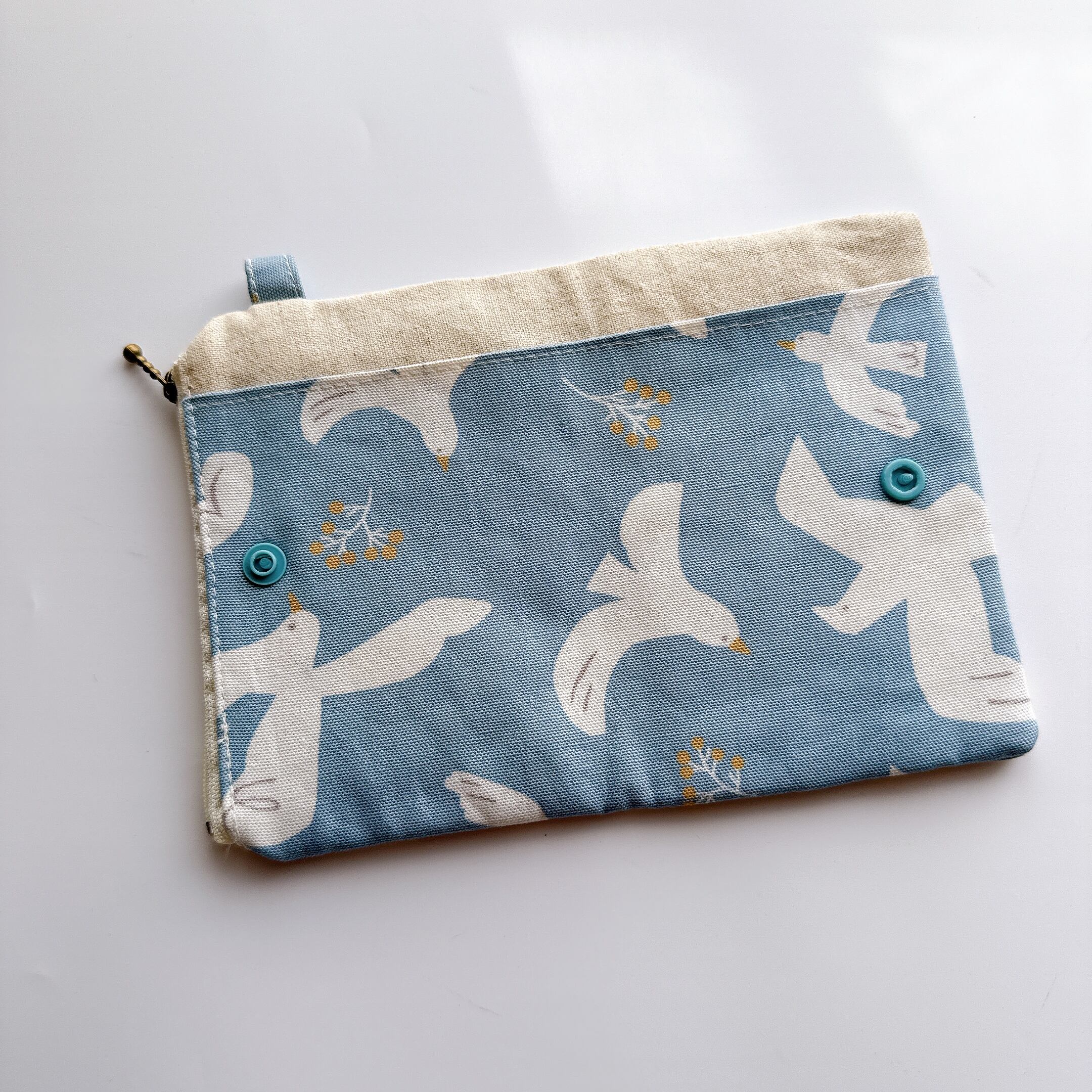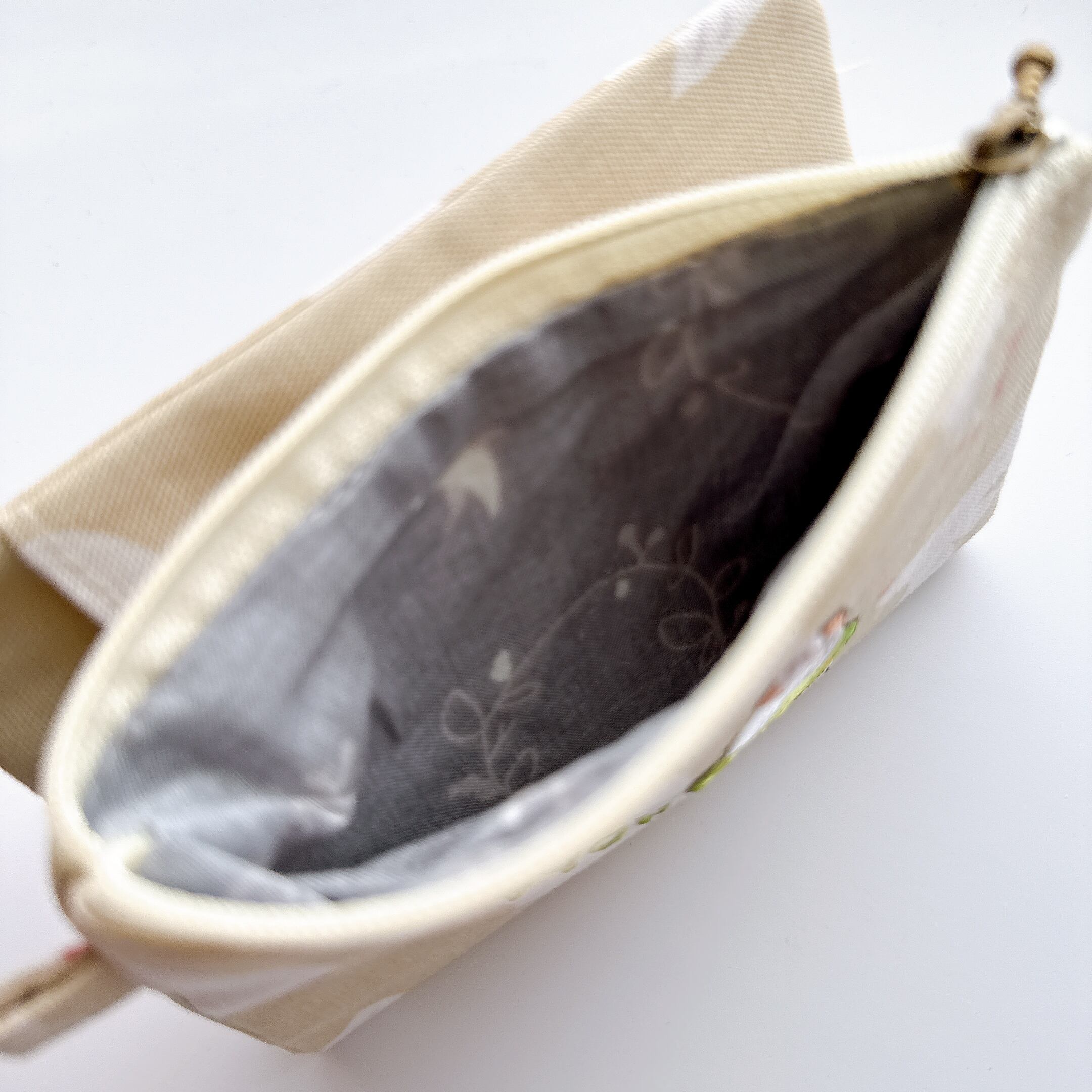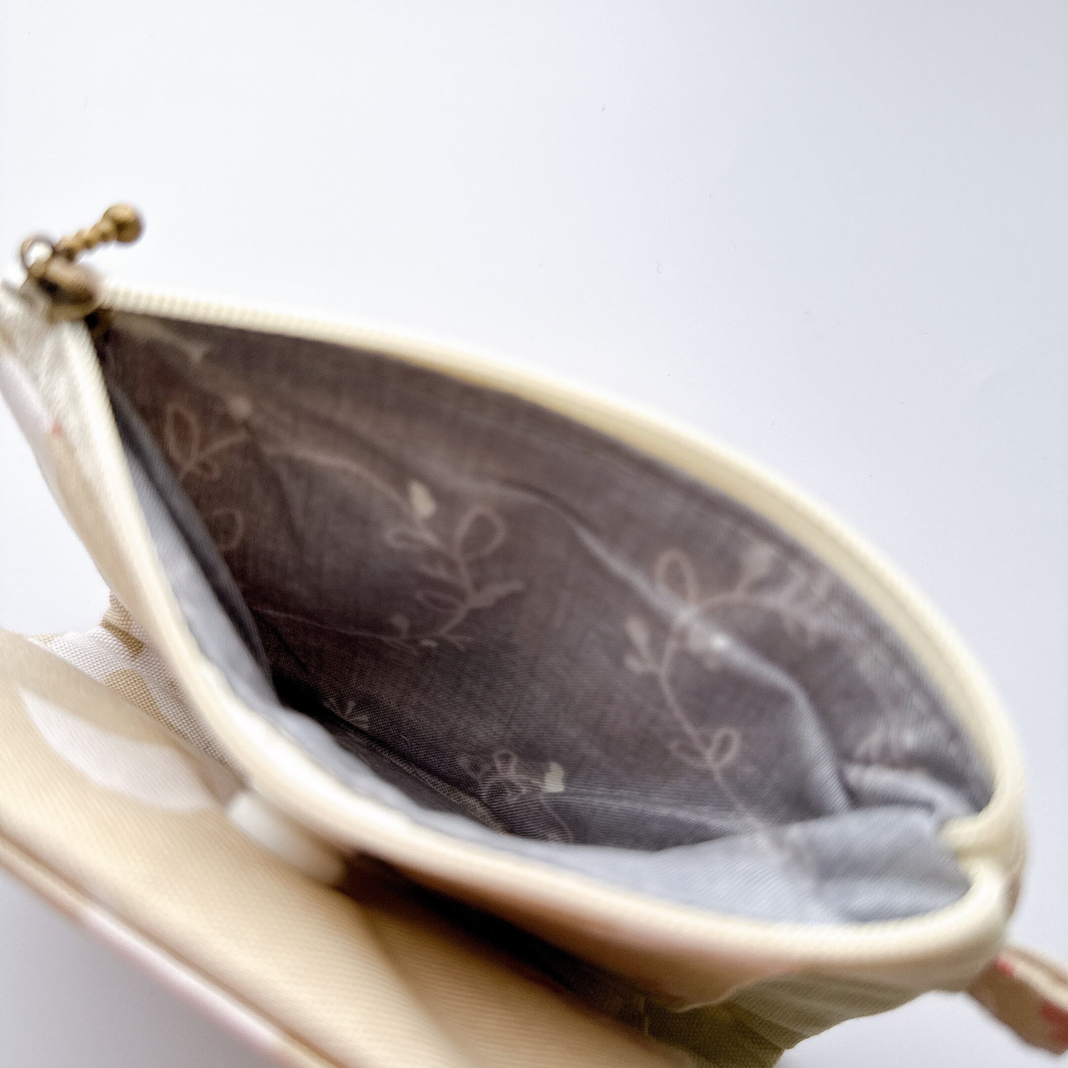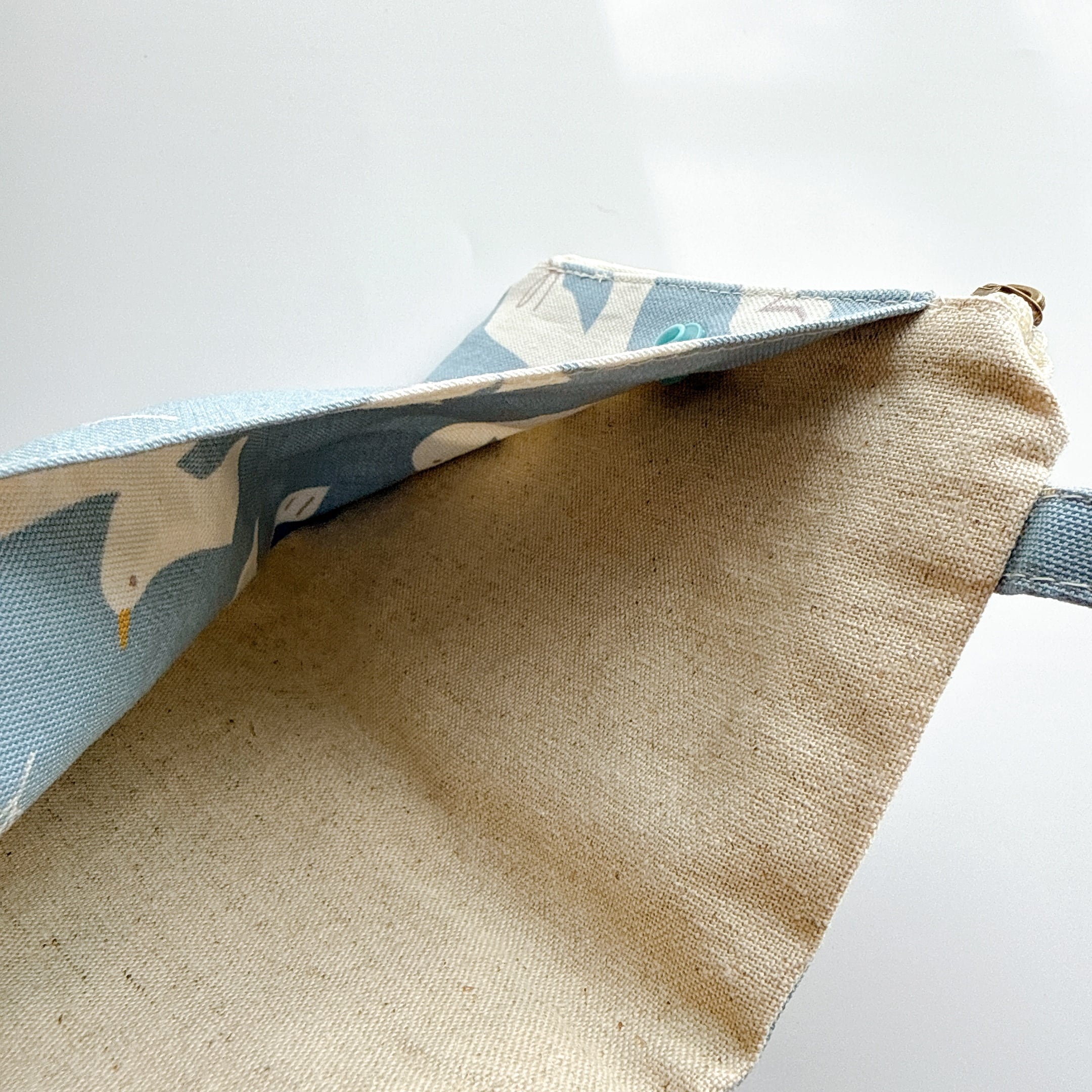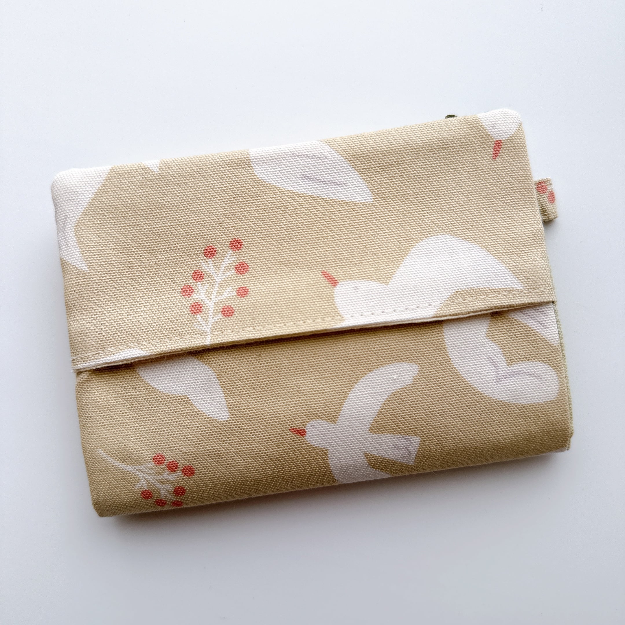 ティッシュケース部分の裏布は無地のシーチングです。