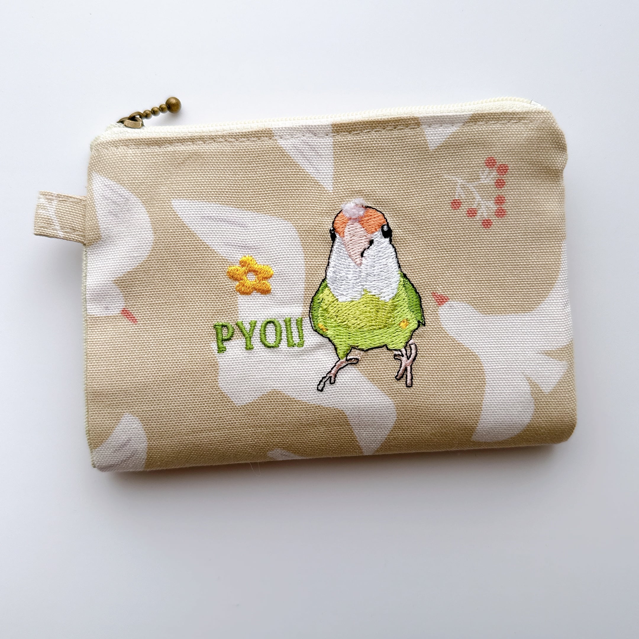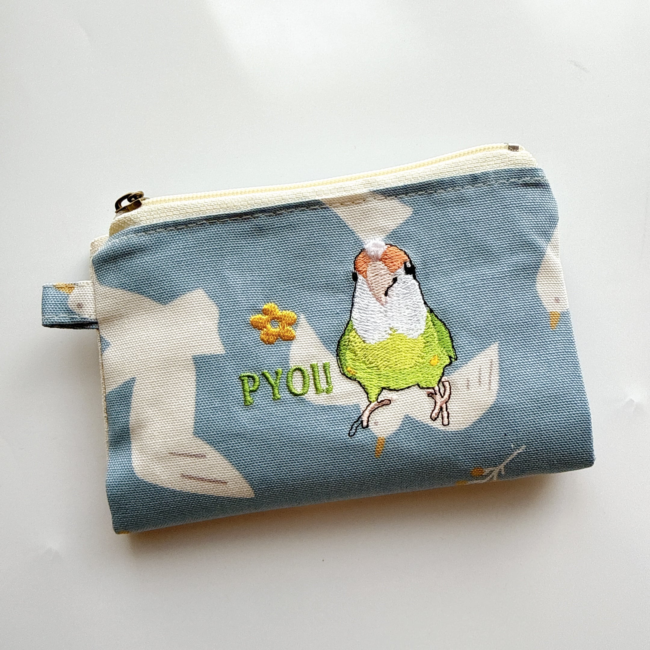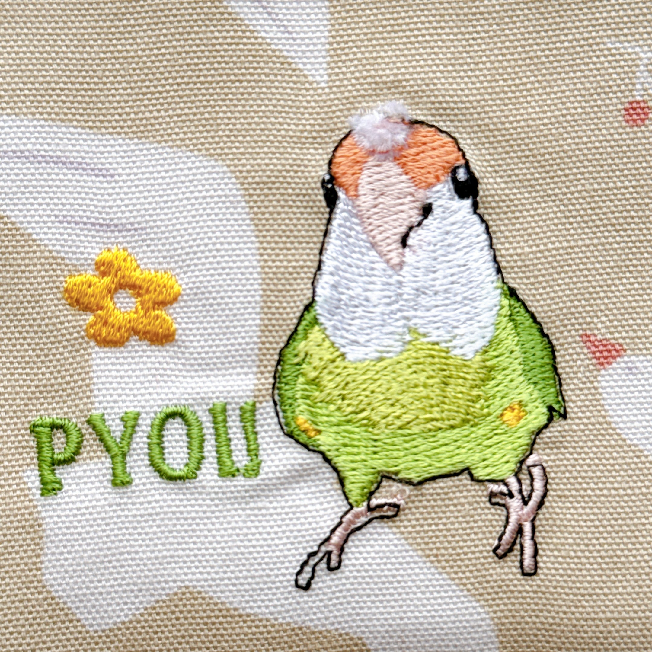 綿毛が気になるコザクラインコさんを刺繍しています⭐︎