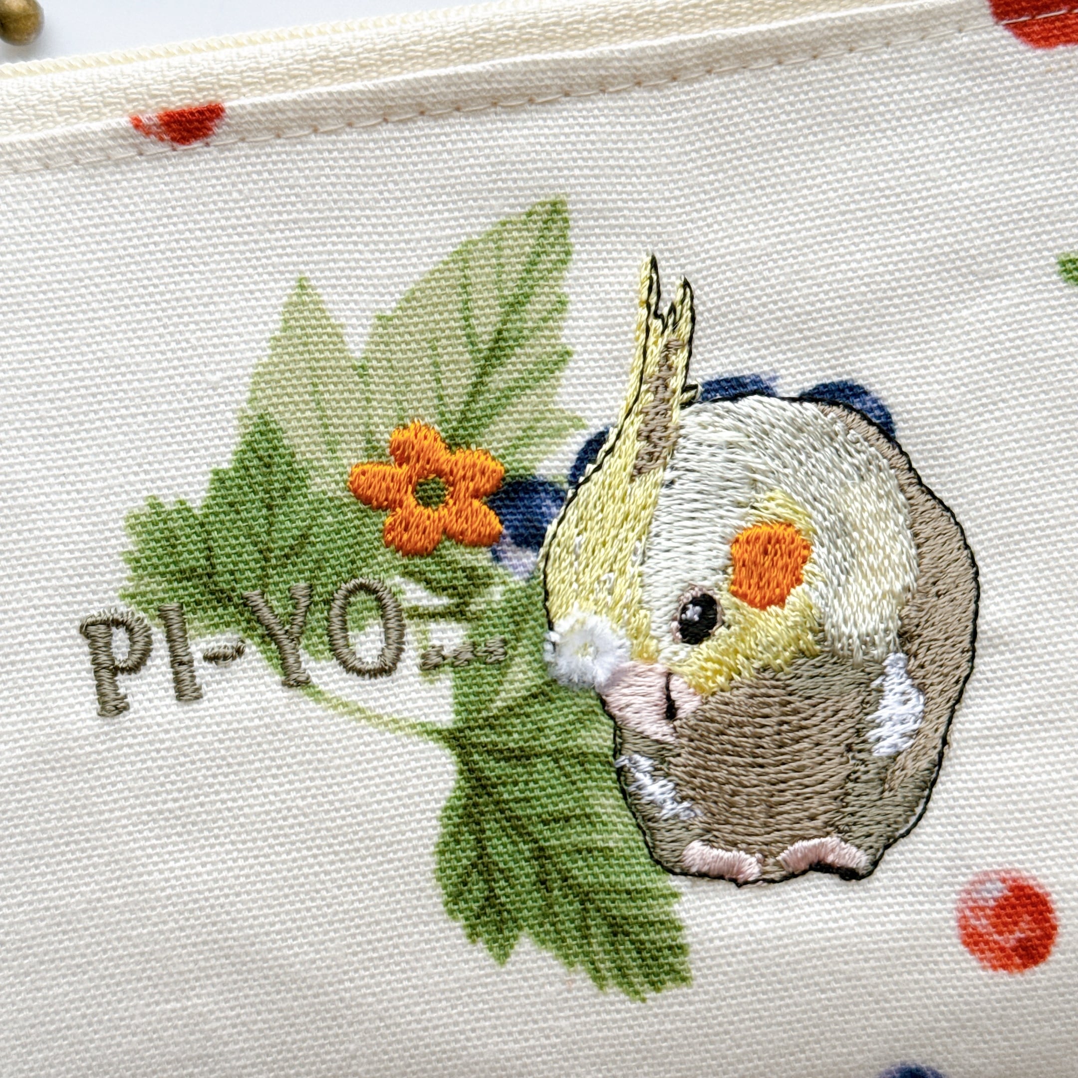 綿毛が気になるオカメインコさんを刺繍しています⭐︎