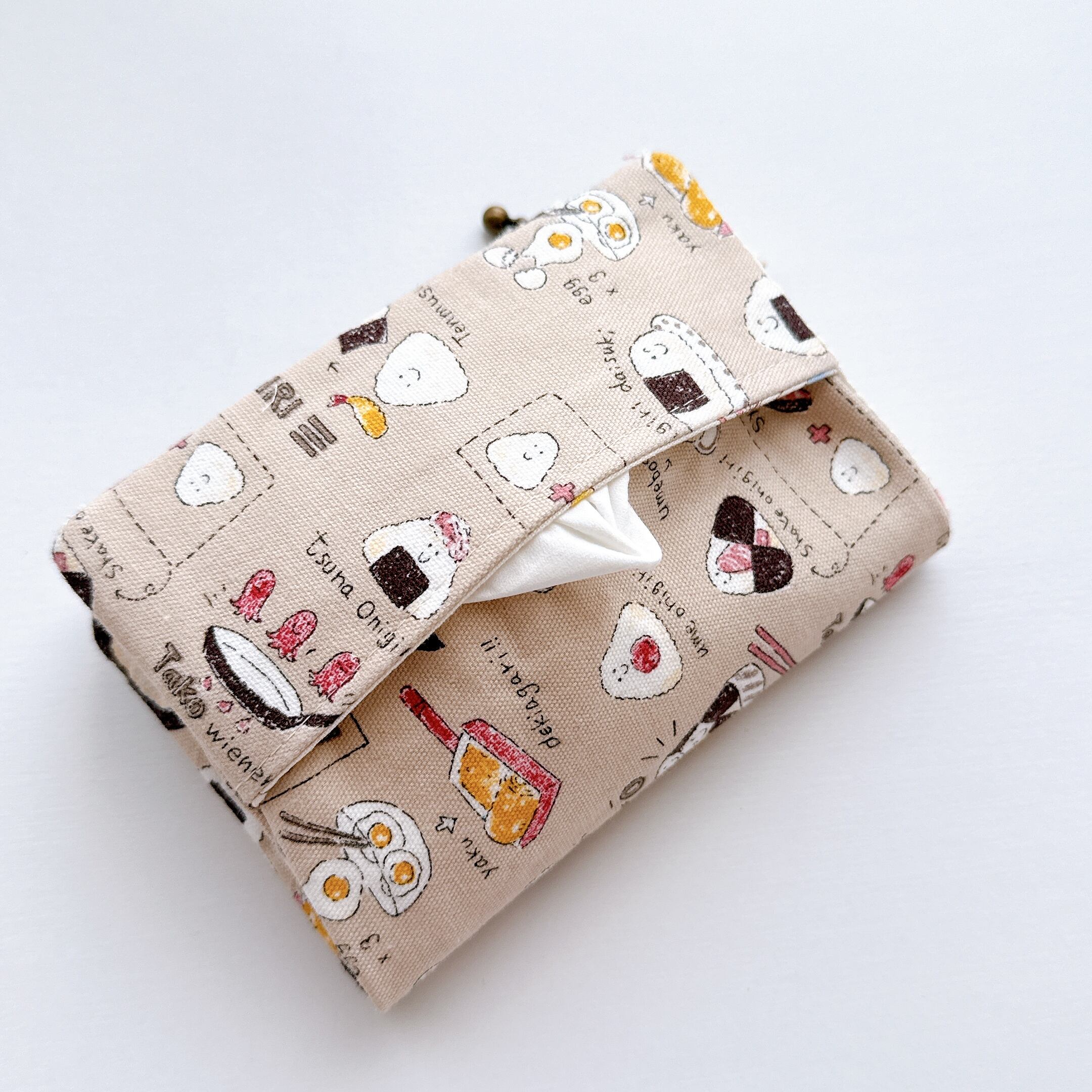 ティッシュケース部分の裏布は無地のシーチングです。