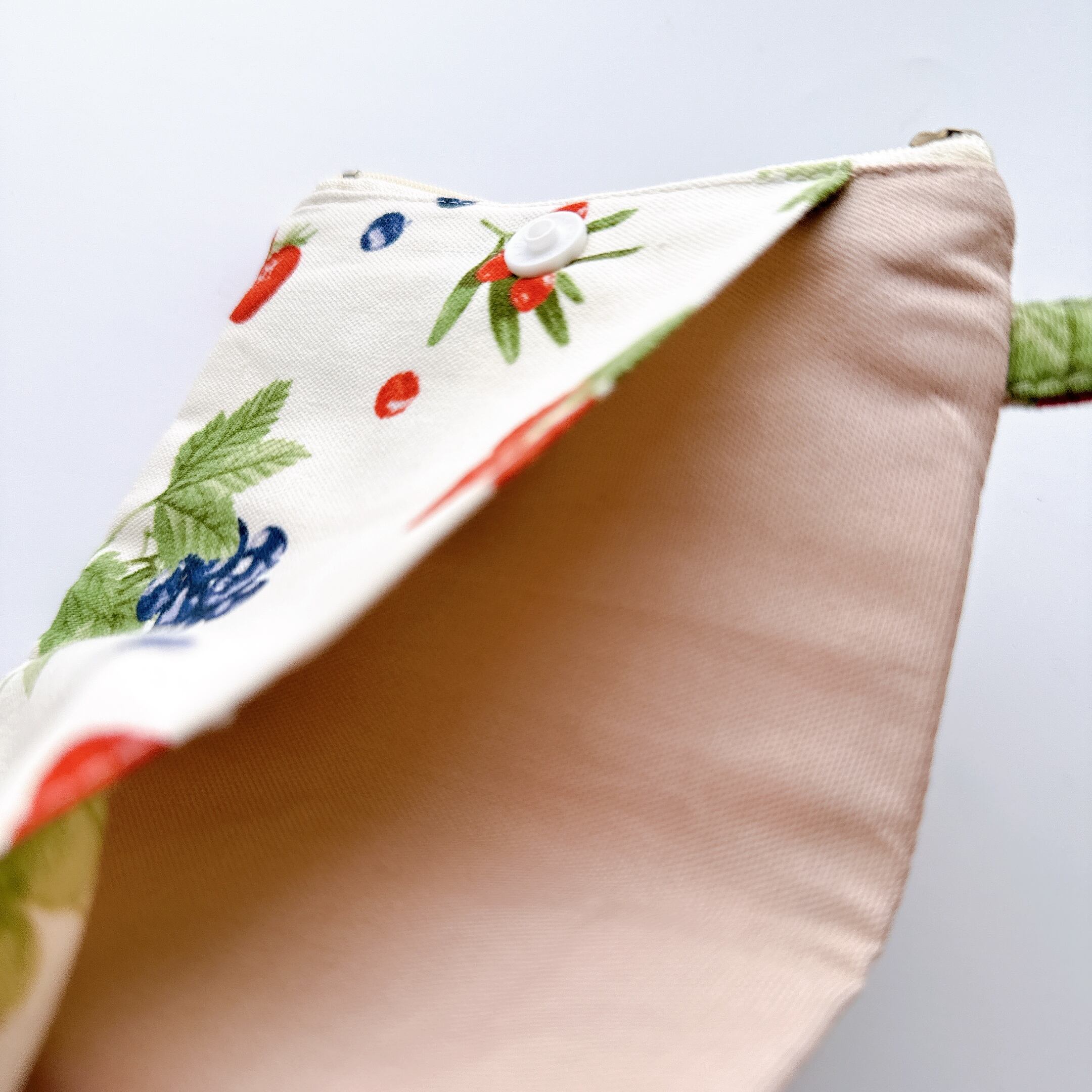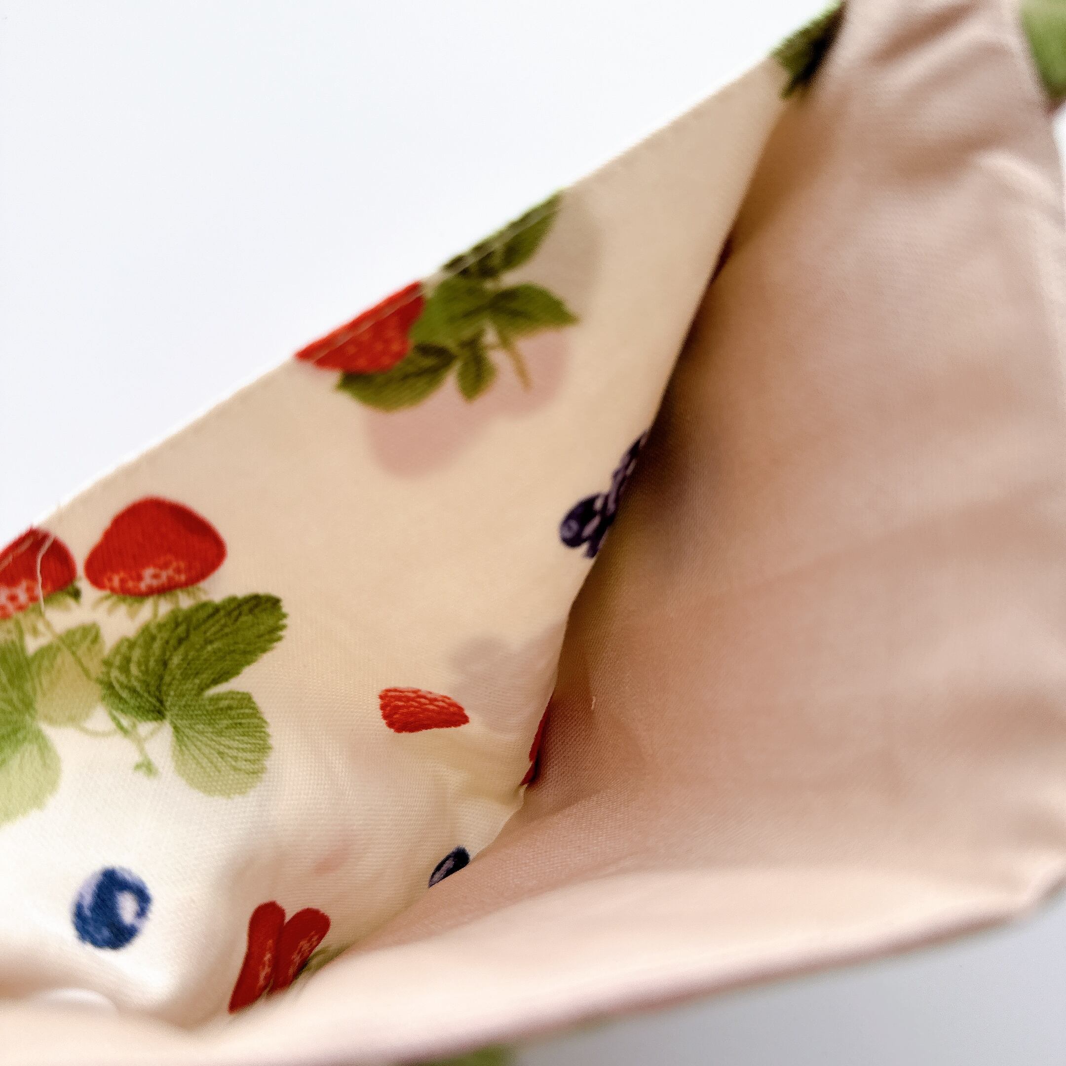 マスクポケット部分は裏布も表布と同じ布を使用していますので、中まで可愛く仕上がっています^ ^