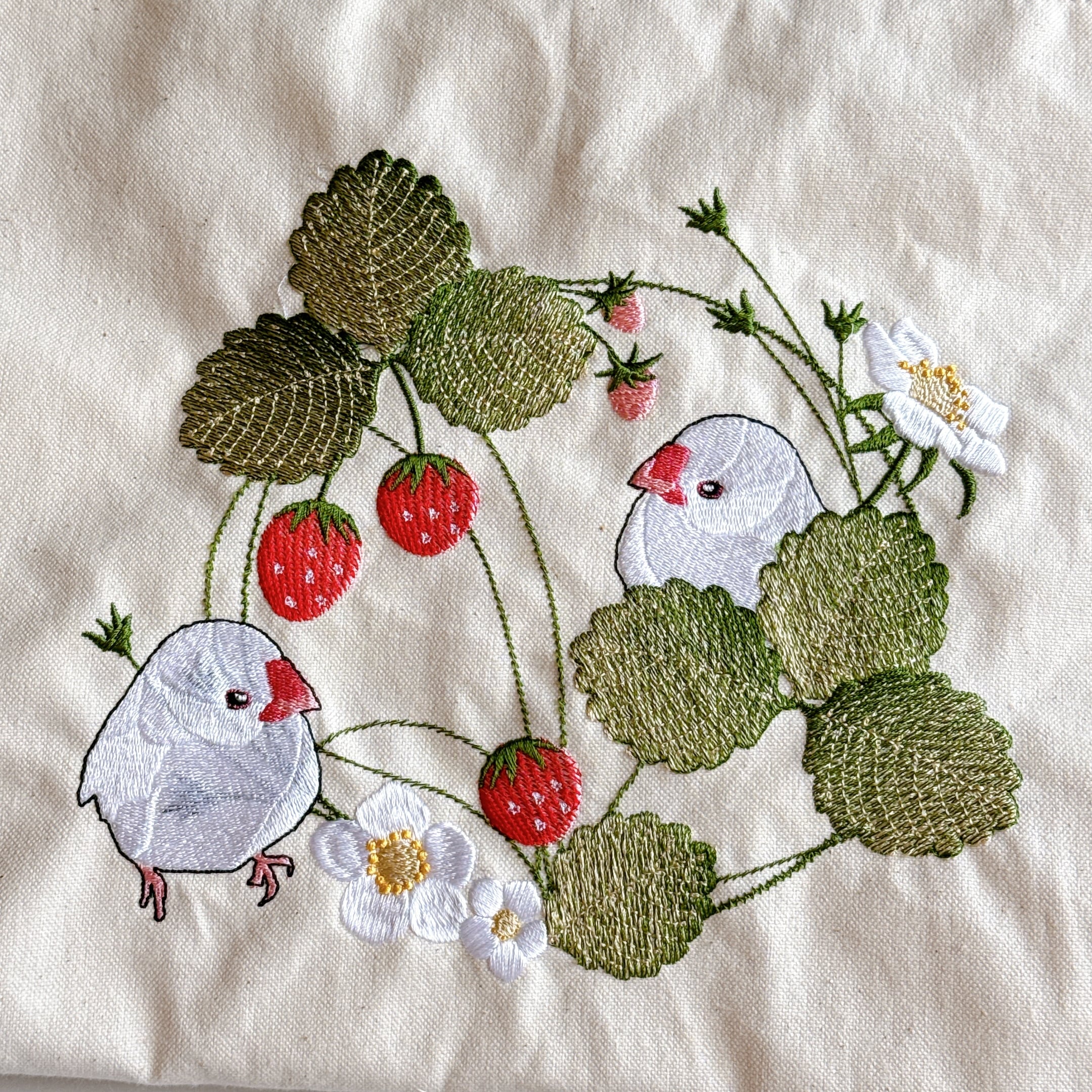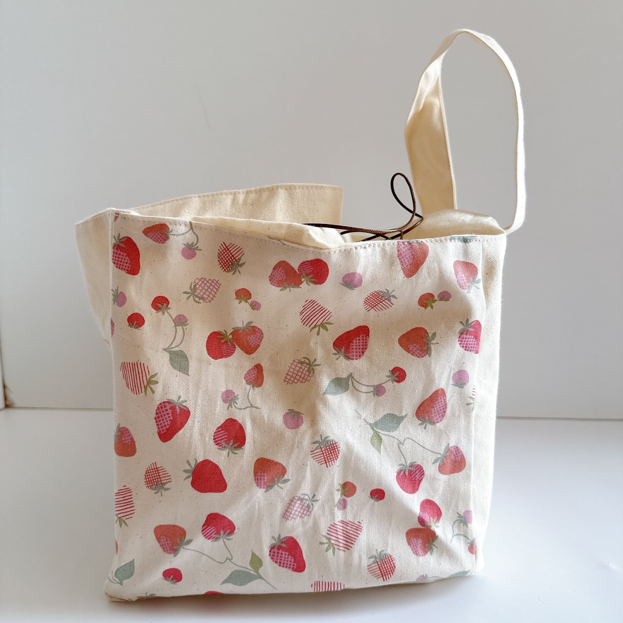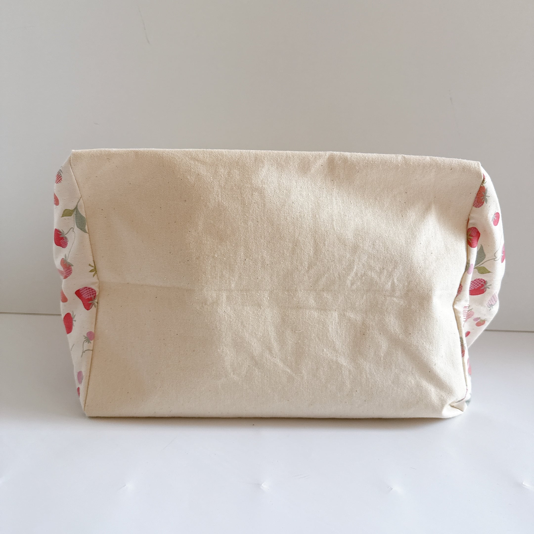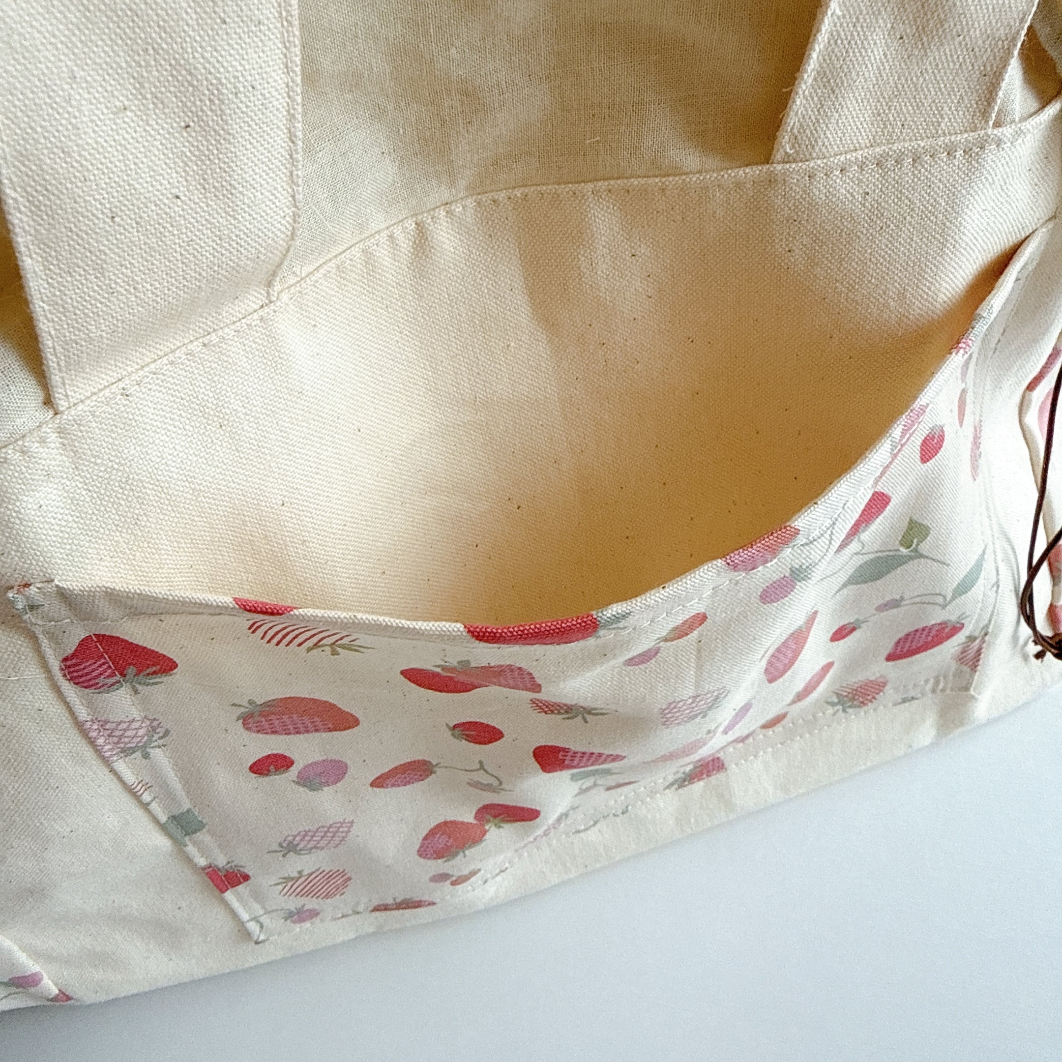 開口部の布は裏布と同じシーチングを使用しました。布が柔らかいので巾着が絞りやすく、小鳥さんの出し入れも安心で統一感も抜群です♪