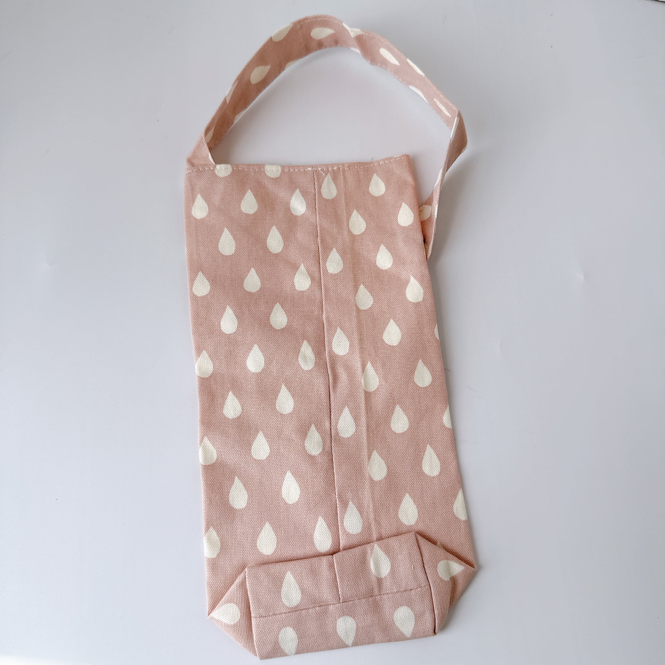 表布は綿麻、裏はシーチング。持ち手はアメリカンホックになっています。